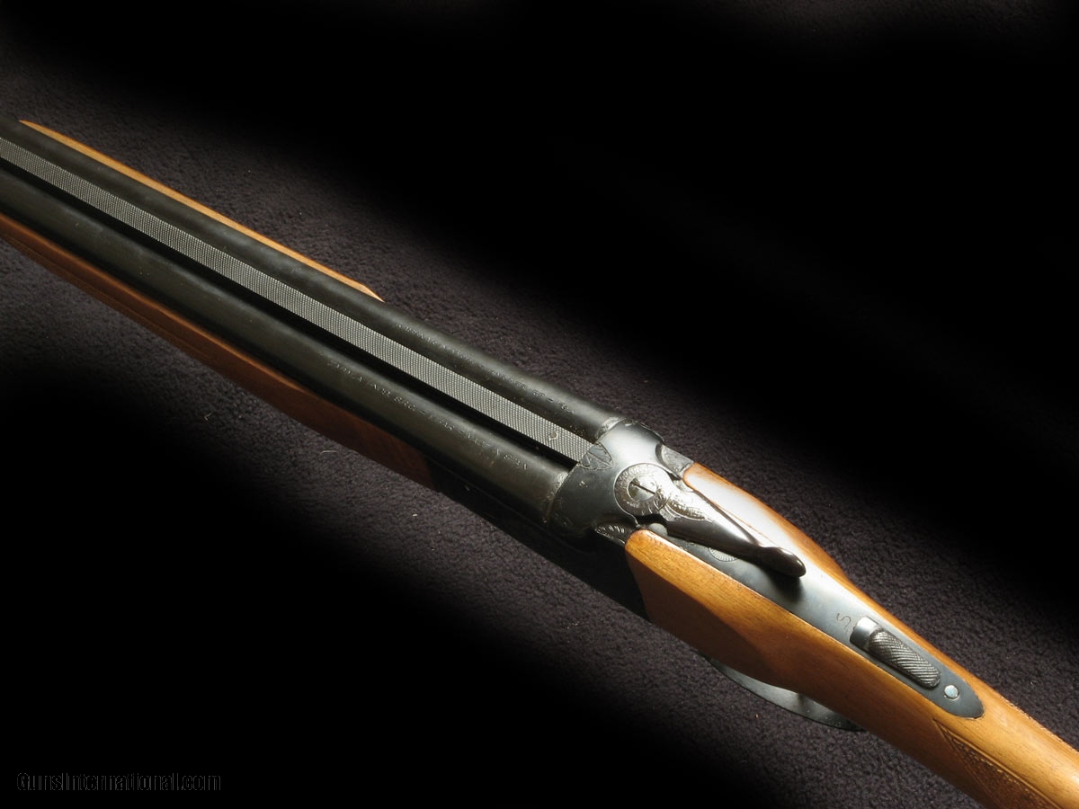 Description: One of the better inexpensive Spanish guns, this one with unusually nice wood and it's cosmetically clean. 5 1/2lb, 26" x 3" non ejector CHOPPER LUMP barrels with clean bores .390 .380 mod full, disc set strikers, automatic safety. LOP 14 3/8" drops 1 3/8" and 2 1/4" cast neutral. Extra set of barrels by same maker, fitted to this gun full/full. SOLD |