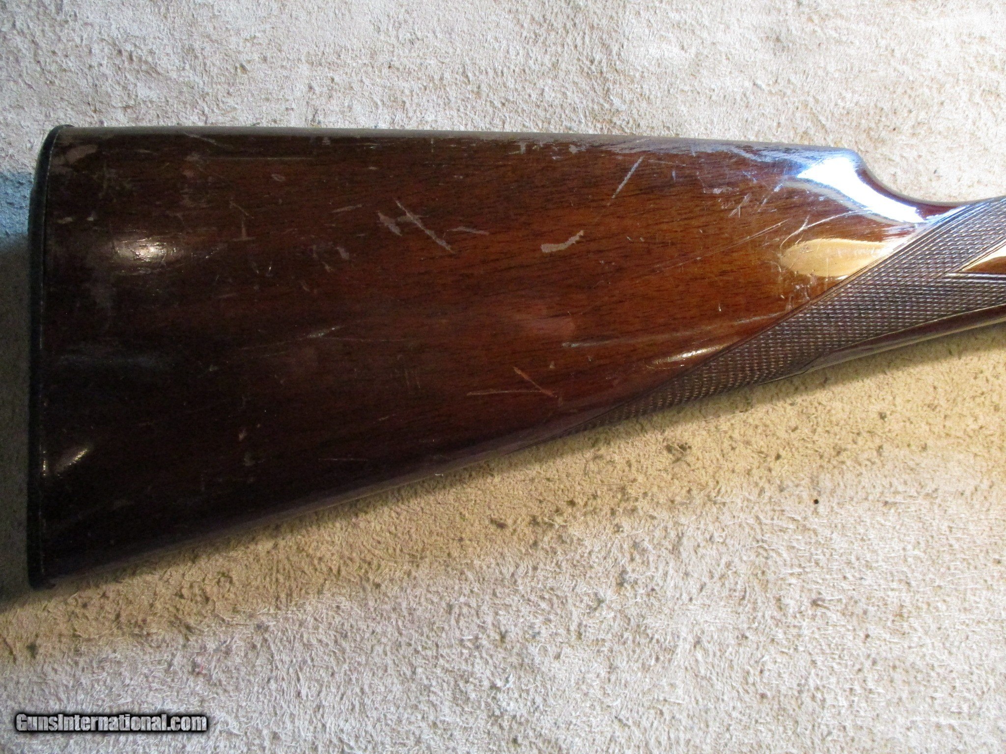 Description: Zabala Boxlock Deluxe, 12ga, 28" barrels, fixed chokes MOD and FULL. SN is 590xx, made in 1963. Factroy finish on both wood and metal, factory butt plate. LOP Is 14 1/4". Pefect bore, nice classic gun. Wood is solid, could use a coat of varnish added. We will trade for silver and gold. We accept personal check, any certified funds, Venmo or Zelle. We can also take your credit card, +3%. Email me if you would like these pictures sent to you, they will come through bigger and better than on the listing page here. We do offer Layaway. Our standard terms are 25% down, 90 days. Initial deposit is not refundable. Email me with any questions. Please check your local laws to confirm it is legal to own in your state! Buyer pays $60 shipping and insurance in a brand new PLANO hard case to your FFL in the lower 48. AK, HI or PR is extra. I will ship to California, as long as it is legal, NO PROBLEM! All my guns come with a non-firing, 3 day unconditional return privilege, from the day UPS delivers to your dealer. Buyer pays shipping both ways if the gun comes back. Please make sure to make it to your FFL to inspect within the 3 days. I am a licensed FFL, and will include a copy of my FFL with the gun for your dealer’s records. I will ship to a C&R if the gun is eligible. I will ship to California, but you need to confirm the gun is legal where you are, California or other. WE BUY AND CONSIGN GUNS AND GUN COLLECTIONS! We will travel to pick up collections! I am always looking for good clean, old original Winchesters to buy, consign, or trade, especially Pre '64's model 70's and model 54's. WE ALSO TRADE FOR CLASSIC CARS AND TRUCKS! We also trade for gold and silver. SOLD Shotgun Gauge: 12 Gauge Manufacturer: Zabala Model: Boxlock Barrel Length: 28 Condition: Used |