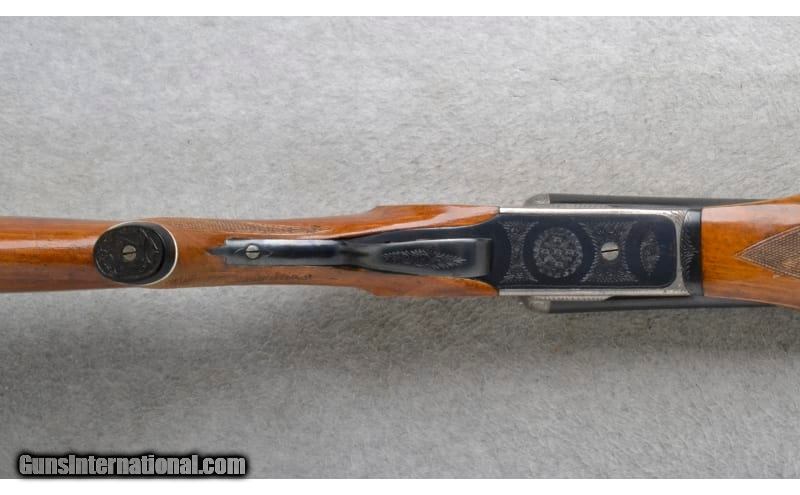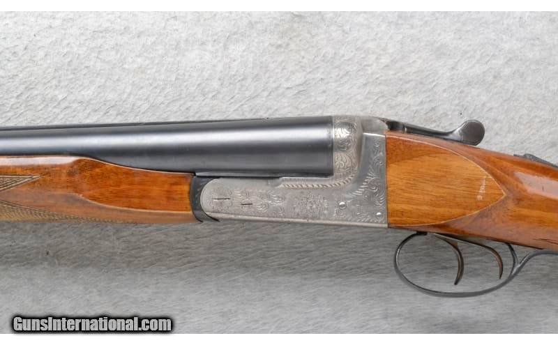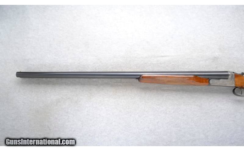 Description: This Zabala Hermanos Model Falcon is a side by side shotgun in 10 Ga. It has 32 inch barrels with extractors and a solid rib. A brass bead front sight and a white bead middle sight. With 3.5 inch chambers it has fixed Full choke both barrels. Double triggers. The butt stock is a checkered grip walnut pistol grip with a black cap. The forearm is a checkered grip walnut beavertail style. The coin finish receiver is very nicely engraved. 10 Gauge SOLD Chambers: 3.5 inch. Metal Condition: Good. Has some freckling spot areas. Wood Condition: Good. Has many light handling marks. Bore Condition: Bright and shiny. Barrels: 32 inch barrels with extractors and a solid rib. Triggers: Double. Stock Dimensions: LOP 14 1/4 inches. Fore End: Checkered grip walnut beavertail style. Butt Pad: Pachmayr White Line black rubber recoil pad. Weight: 10 lb. 1 oz. Sights: Brass bead front. White middle bead. Chokes: Fixed Full both barrels. Item Location: Richfield, WI |