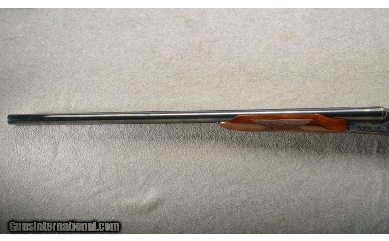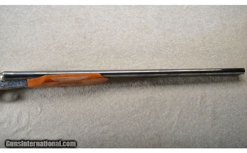 Description: This is a very nice Zabala Hermanos Waterfowl Special 10 gauge side X side shotgun. The 32" gloss blue barrel are excellent inside and out. The engraved case color frame could pass for new and the hardwood stock is sound and solid with just a few small dings. The shotgun has a long length of pull but also has a spacer in place so you could make it shorter. If you are the person that want a heavy hitting shotgun this is it. 10 Gauge SOLD Chambers: 3.5" 10 gauge Side X Side. Metal Condition: Excellent with very strong blue and case color. Wood Condition: Very good with a few small dings and dents. Bore Condition: Excellent. Barrels: 32" gloss blue with a solid rib. Triggers: Double triggers. Stock Dimensions: 14 1/2" LOP to the front trigger. Fore End: "Checkered hardwood, beavertail style. Butt Pad: Matching hardwood with a checkered pistol grip and black rubber butt pad. Weight: 10 Lbs. 12 Oz. Sights: Mid and front brass beads on the solid rib. Chokes: Fixed light full and light full. Item Location: Owatonna, MN |