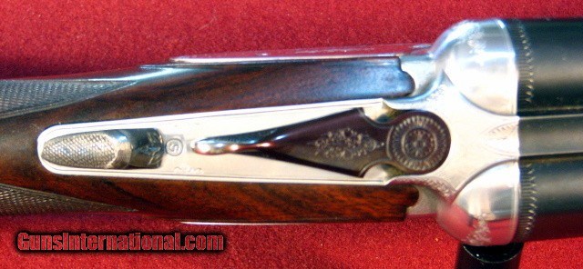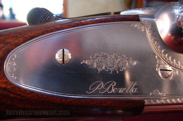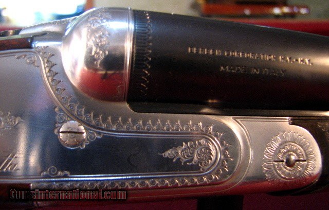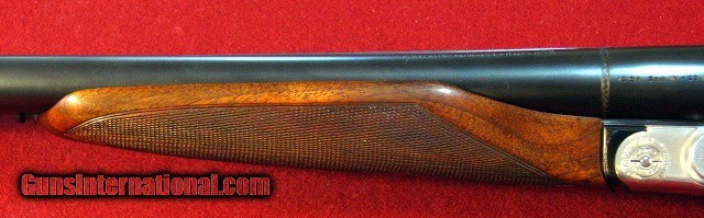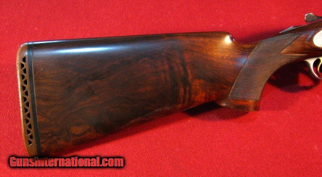 Description: Beretta 627EL Sport 12 gauge manufactured in 1985 with 28"Excelsior High Strength Steel ejector barrels with smooth concave rib with silver front bead. Bores are excellent. Removable chokes with Full/Mod provided. French Silver receiver with 10% scroll and border engraving. Gold plated single nonselective trigger. Stocked in a very nice piece of figured European Walnut with pistol grip and small beavertail forend. Tightn and on face. Barrels ring. LOP is 14 1/4" over a factory Beretta pad. DAC- 1 1/8" DAH-1 1/2" 7lb 6oz This gun remains in 99% condition with little signs of use. It is cased in a canvas covered trunk case with two clasps but a broken combination lock. It exudes class and elegance. Price: $2,750.00 Buy Now Contact Seller |