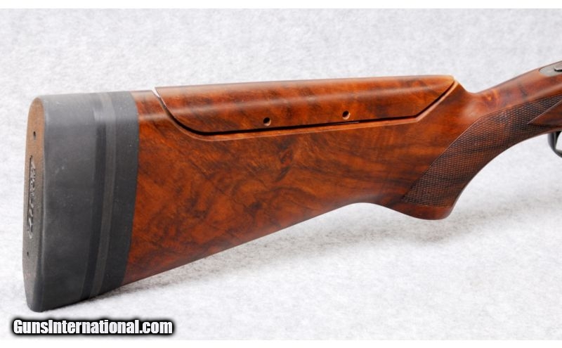 Description: SOLD Caliber Info: 12 gauge. Chambers: 3" chambers. Metal Condition: Blue-black receiver, no engraving, ejectors, and upper tang barrel selecting safety. Wood Condition: Dings and mars. Bore Condition: Excellent. Barrels: 30" barrels with a low profile vent rib. Triggers: Gold. Stock: Dark, satin finish, nicely grained walnut with a checkered pistol grip and adjustable comb. Stock Dimensions: LOP: 14 3/8" (12 3/8" to the end of the wood with a butt extension of 2"). Fore End: Checkered Schnabel with blued hardware. Butt Pad: Rubber pad. Sights: White front sight and metal center bead. Chokes: Extended screw-ins. Extras: Comes with a Beretta hard case and accessories. Item Location: Kansas City, KS |