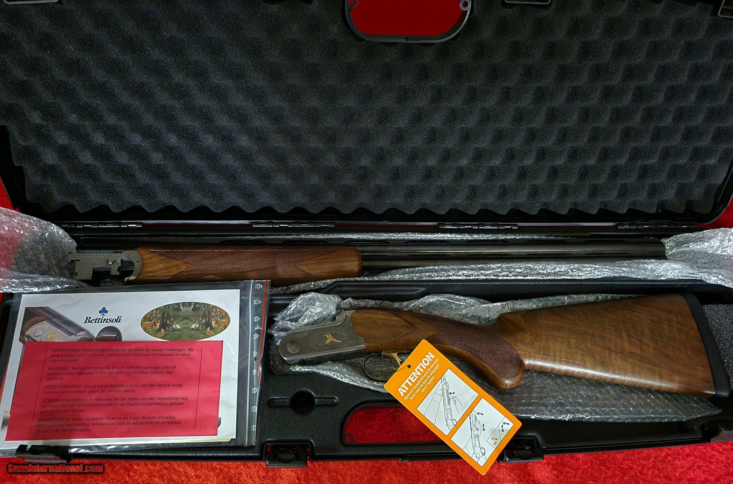 Description: BettinsoliUSA is proud to offer in the US Market fine shotguns manufactured in the Gardone Valley, Italy. Bettinsoli has many high grade shotguns from Field, Competition and High Grade with various levels of Engraving and Gold Inlays. Call today to order your Bettinsoli Over and Under with prices ranging from Field Gardes $2,300 to Diamond Grades $5,000. Our Competition Grade Omega Steel Sporting has an adjustable comb and Lengthened Forcing Cones with an amazing trigger group. We are the Regional Service Provider for various shotgun manufacturers and can fit you to your Clay Target gun with precision. we look forward to working with you and hear about your experiences and success in the field or on the range. ://bettinsoliusa/ SOLD |
