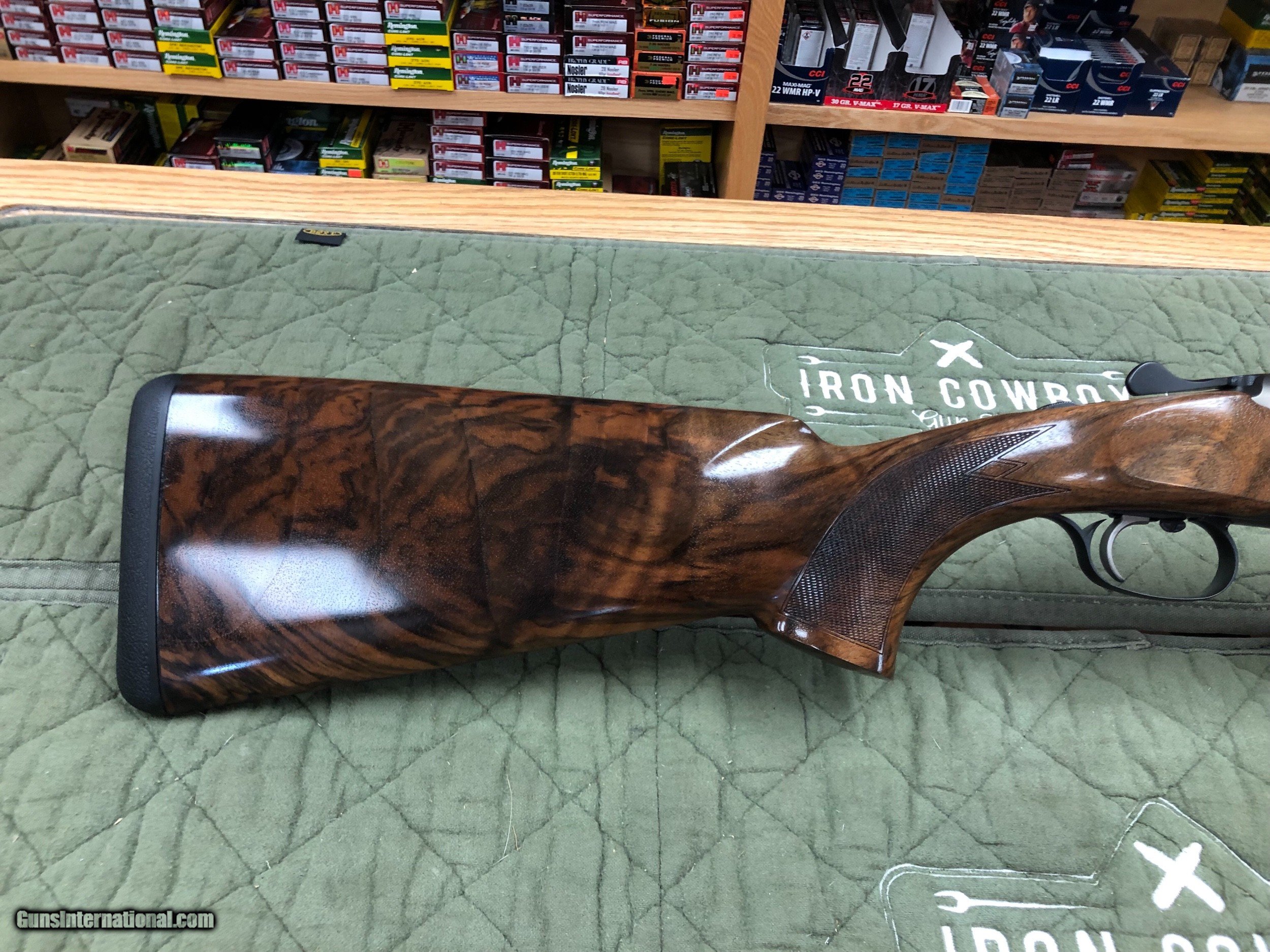 Description: Up for sale is a is a new Blaser F16 Sporting. This fine sporting gun is chambered in 12 Ga and sports 32-inch barrel. This model was special ordered with grade 7 wood. The normal up charge for wood of this caliber would be over 4K, Blaser made a deal with a wood supplier and offered a few F16’s to its dealers when the guns are gone, they’re gone. This is not a normal cataloged gun. When you buy from me you will receive the same professional courtesy I received. This is a true competition gun from the ground up. Blaser has strict MAP pricing polices so I must advertise at MAP pricing, ALL YOU HAVE TO DO IS CALL FOR THE BEST DELEVERD PRICE, I love to sell fine guns; I am not a curator of a museum. I stock a vast array of Ceasar Guerini, Fabarm, Syren, Blaser,Merkel, NightHawk Custom, Cabot Gun and many more. It is impossible for me to list everything I will special order you anything your heart desires. Below is a list of the technical specs. Thanks for looking 5 Extended Briley Chokes SK, IC, Mod, IM, Full LOP 14.5’’ Pitch 84* Cast 3/6/8mm (0.12”/0.24”/0.31”) Drop 38/50mm (1.5”/2.0) English style fore-end Gun Metal Gray Hi Viz front bead Weight 7.14 pounds with extended chokes Right hand stock THE NEW SHOTGUN CLASS Passionate about perfection – The next generation of game and competition shotguns has arrived with the introduction of the new Blaser F16. Only through the restless pursuit of perfection is it possible to create a perfectly balanced over and under shotgun with the lowest profile action on the market. Performance and reliability are of the utmost importance and can only be attributed to the quality of materials used, individual craftsmanship and state of the art manufacturing technologies all packaged with an affordable price. Better results The low-profile receiver provides an exceptionally low center of gravity for the shotgun, makes it extraordinary pointable and dynamic, resulting in better scores. Perfect balance The accentuated dynamic and semi-rounded receiver body design makes the new Blaser shotgun a companion that lies perfectly in your hands. Rapid implementation The thought impulse to ignition is rapidly implemented due to fast mechanics and a crisp trigger pull (1.650 grams / 3 lb. 10 oz.). Maximum concentration The Triplex® bore design, a tapered rib and the proven Blaser ejection system (EBS®), which cocks the ejectors when the gun is opened, allows the shooter the highest level of concentration for the next shot. Extremely durable The innovative monocoque construction, the superior surface finish, high-strength materials and technological perfection are the best prerequisites for a long-lasting shotgun. Uncompromisingly reliable The Inertial Block System (IBS®) prevents an involuntary second shot or the unintentional triggering of a second shot while maintaining a superb trigger pull. SOLD |