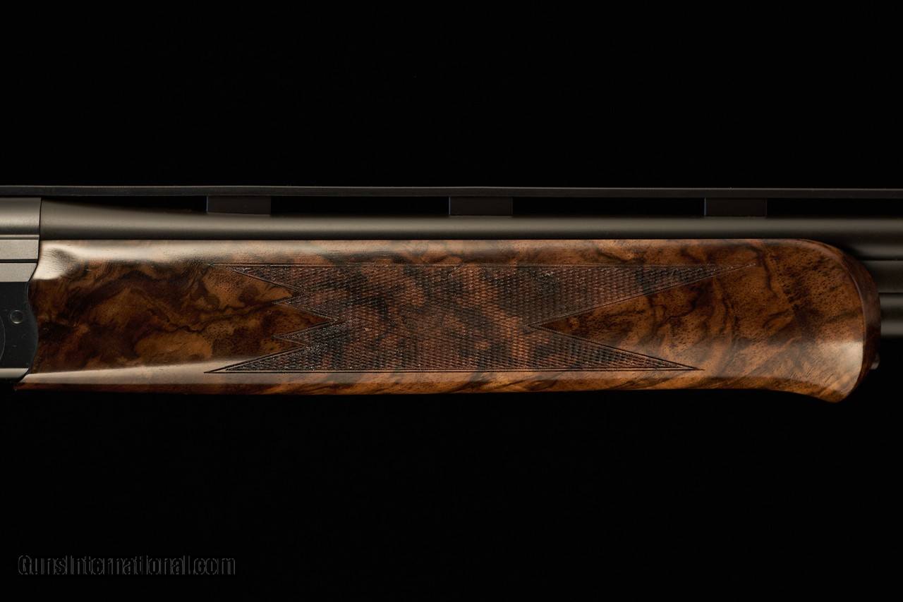 Gordy & Sons Outfitters is a full-line Blaser/Mauser/Sauer/Rigby Premium Dealer! . Blaser F3 Standard with 28ga/32" Competition Sporting (flat rib) barrels and a gorgeous Wood grade 7, right handed Competition Sporting stock set with factory adjustable comb. Comes complete in the premium Blaser factory 2-barrel case with full plush lining, leather trim, and accommodation for a second barrel set. . Stock dimensions include LOP of 370mm/14.6", a DAC of 40mm/1.57", and a DAH of 55mm/2.17". Palm swell is left handed with 3/16" of cast-off.