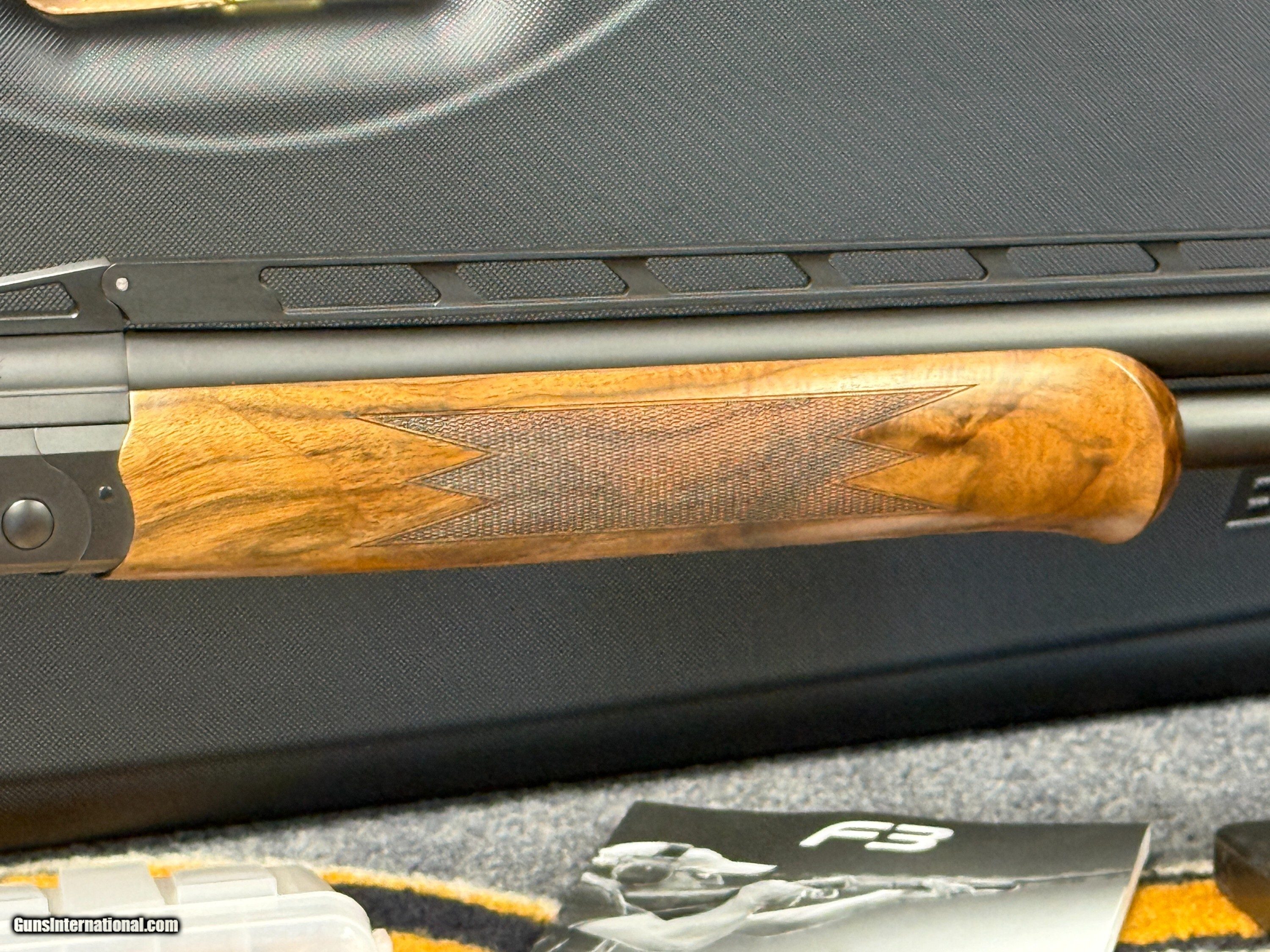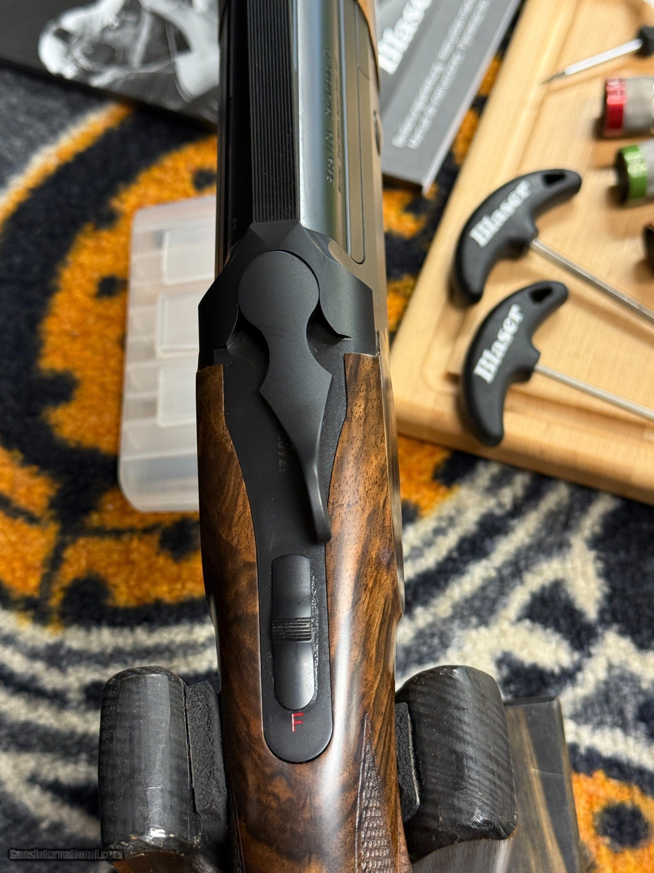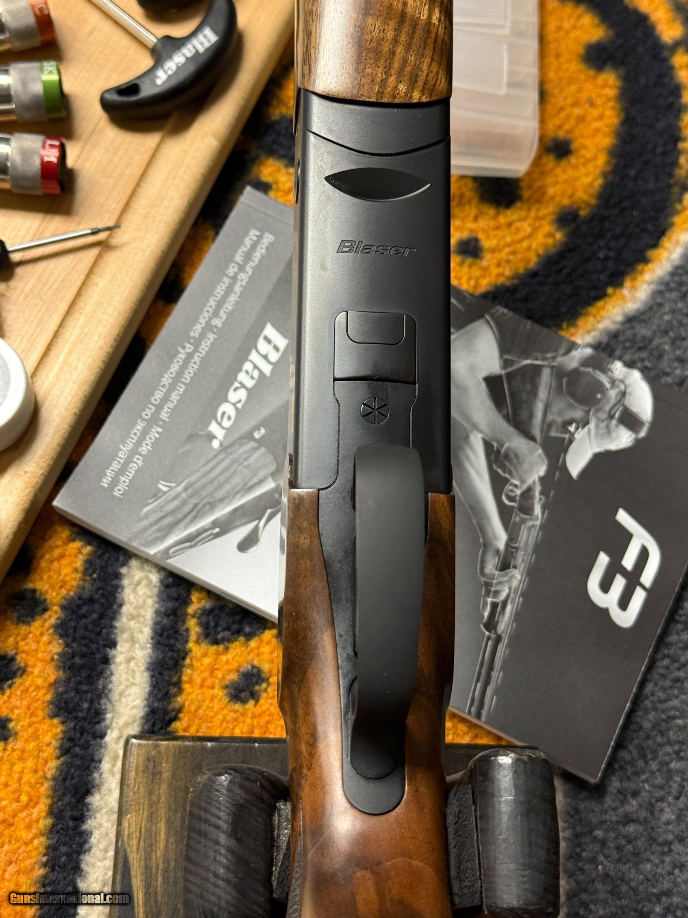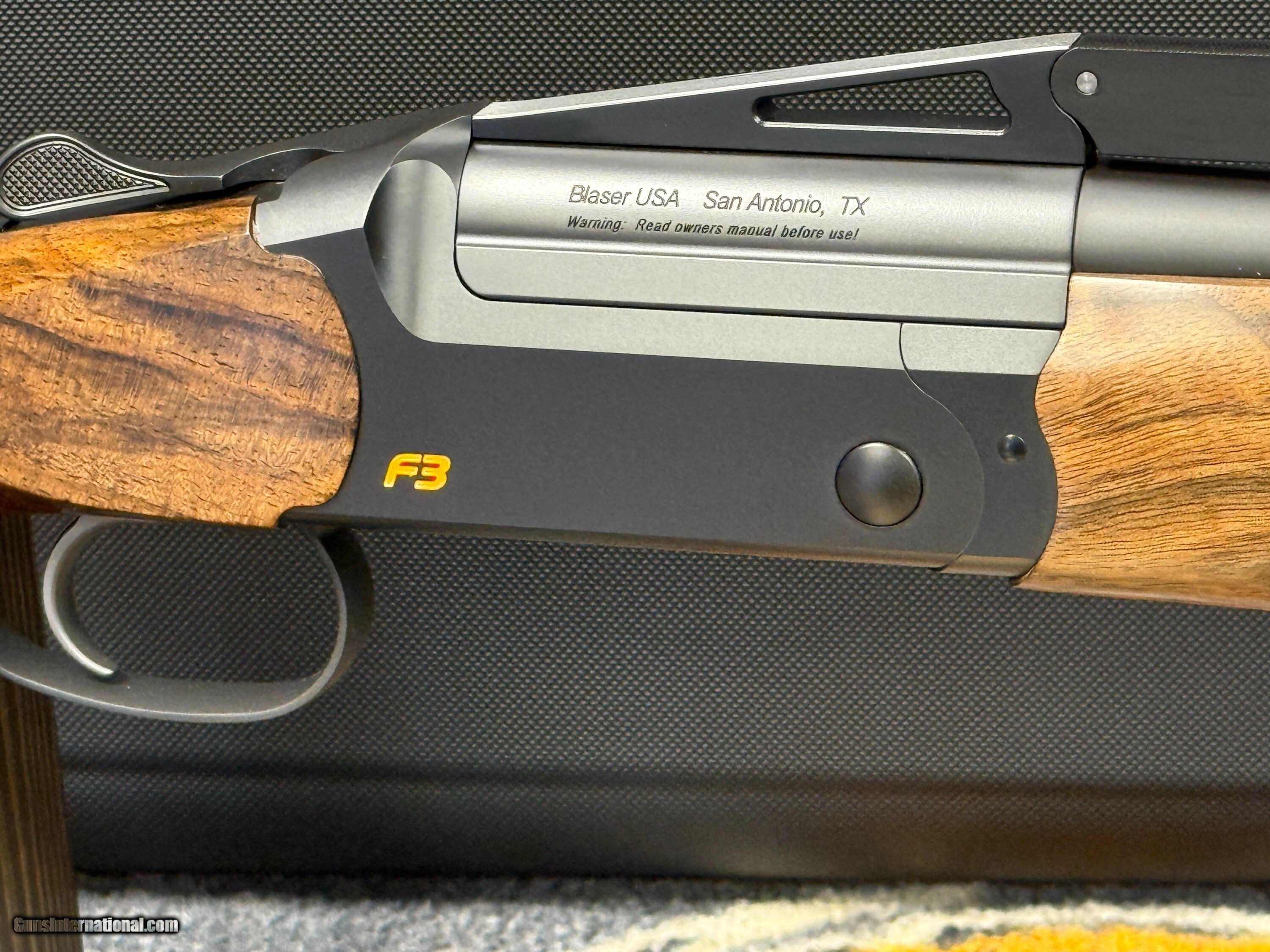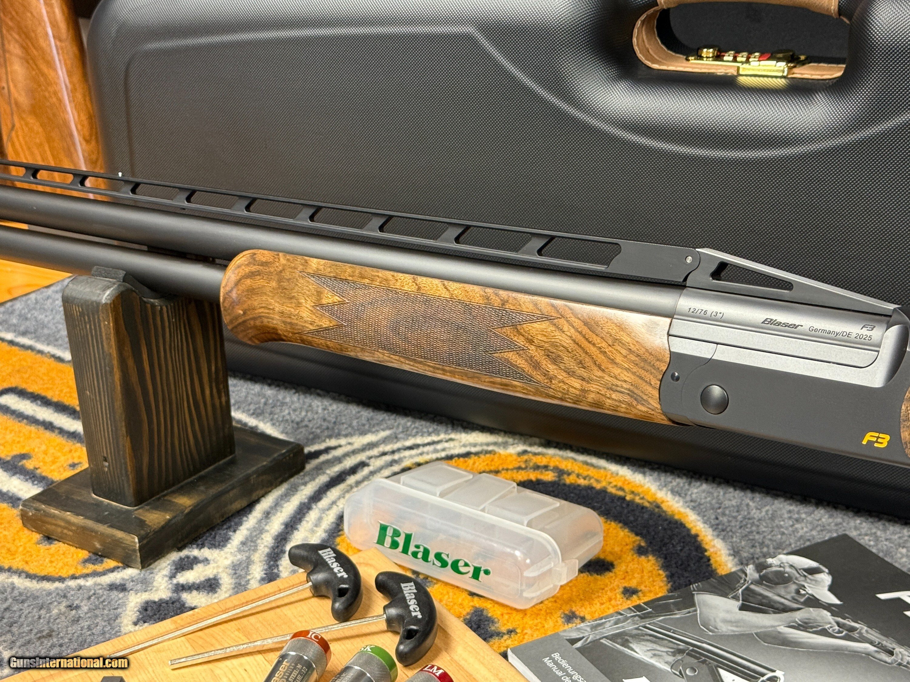 Description: Pre Tariff Pricing!!! Serial # FR020921 Amazing Wood!!! Blaser F3 Supersport 32" Grade 5 Wood. As expected coming from Blaser, this one is absolutely stunning The F3 Supersport is the specialist choice for F.I.T.A.S.C., English and American Sporting shooters and is also becoming an increasingly popular choice for successful Olympic Trap competitors. By raising or lowering the adjustable rib, it can be precisely adjusted to individual shooter's requirements. Adjustable rib, Competition front bead and middle bead Thanks to the large adjustment range of the rib, demanding trap shooters can use the F3 at its full potential and adapt the shot pattern by lowering or raising the rib to their individual needs. The mid bead serves as an additional reference point. Supersport Monte Carlo stock With adjustable comb. Length of pull 375 mm Drop: 44/45/63 mm; Lateral adjustment range: +/- 5 mm; Vertical adjustment range: + 10 mm; Pitch: 85° Barrel Barrel: High rib in 76 cm and 81cm: set in the factory to a pattern 70:30 Shotgun Gauge: 12 Gauge Manufacturer: Blaser Model: F3 Supersport Serial Number: FR020921 Barrel Length: 32 Chambers: 3 Ejectors: Auto Condition: NEW IN BOX Barrels: Over Under Barrel Type: Matte Finish Action: Break Triggers: Mechanical striker system Stock: Monte Carlo Comb Adj Gr 5 Fore End: Schnabel Butt Pad: Black Rubber Rib: Adjustable Rib Finish: Factory Finish Sights: White Bradley style + Silver mid-bead Manufacture Date: 2025 Chokes: Briley Choke Set Case: Negrini Fitted Hard Case Item Location: WI Price: $13,385.00 Shipping: $52.00 Contact Seller |