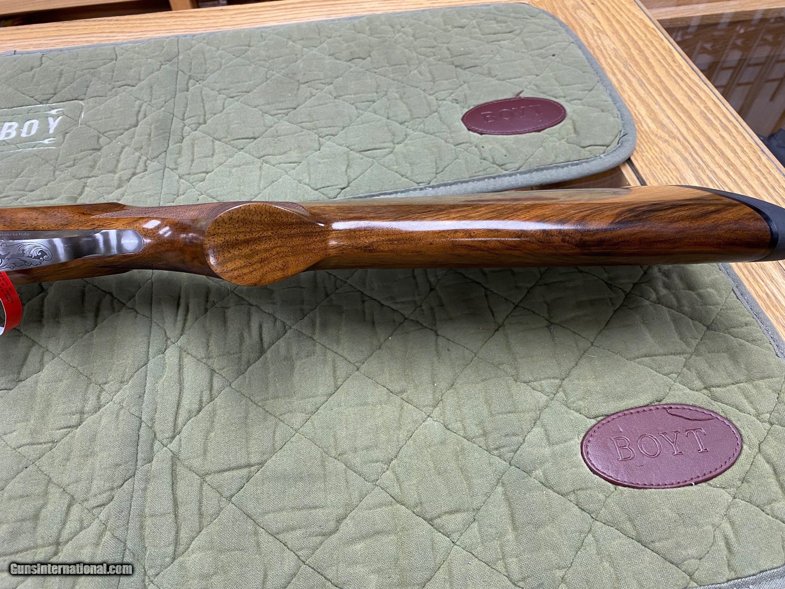 Description: Offered up for sale is a new Caesar Guerini Challenger Ascent. Chambered in 12Ga with 32’’ barrels. This is not an easy gun to fund in stock at the moment, this is available for immediate delivery. Below you will find a description from CG’ssite. WHY IRON COWBOY? Buying a fine gun is not shopping cart transaction. Buying from Iron Cowboy means buying a gun from me. It means buying from someone as passionate as you about fine guns. I want you to get the right gun both for you and your application, and my advice reflects what I feel is in your best interests. No clerks, no ‘other’ salesman – just me. Odds are we will have a discussion on my shooting experience with the gun you are after, and every transaction gets my personal best. Credit cards are welcome; however, a 3% fee will apply Thank you, as always, for looking. GROWTH THROUGH SERVICE Everyone is a customer at some point. I’ve taken the good from my experiences and apply it to my transactions. I’ve taken the bad and sworn to never pass that same experience on to my customers. I strive to act the way I would respect someone else for acting. In this way, Iron Cowboy differentiates itself with growth through service and repeat business. It’s my commitment to you, my customer. Iron Cowboy Gun Shop, LLC Edward Kondraski III (570) 733-2042 The Challenger Ascent is the natural progression of the extremely popular Ascent line of target shotguns. We have upgraded the Ascent with a bold Acanthus leaf engraving motif on a fine Inglesina scroll background. The stock dimensions are unchanged, but the wood has been upgraded to a deluxe grade of Turkish Walnut. All Ascent models feature a10mm high fixed rib and Monte Carlo stock that allows the shooter to utilize a more upright shooting posture while still retaining the instinctive pointing qualities of a flat-rib sporting clays gun. The result is an modern sporting gun that accommodates both pre-mounted and gun-down shooting styles while remaining very comfortable to shoot. Model Challenger Ascent Gauge 12 Barrel length 32" (81cm) Avg. Weight** 8 lbs. 6oz. Receiver finish Hand polished coin finish with Invisalloy™ protective finish Stock Finish Hand rubbed oil Checkering 26 lines per inch Recoil Pad Black rubber Chamber 2 3/4" Top Rib Width 10mm - 8mm Tapered Rib Height* 10mm Fixed Center Rib Ventilated Forcing Cones 5" DuoCon Avg. Barrel Weight 32"-1.52kg (3.35lbs.) Avg. Bore .735, Chrome lined Chokes 6 MAXIS competition chokes Sight(s) White Bradley style front Silver center bead Fore-end Rounded Trigger New DTS trigger system with two trigger pull weight options, take up, over travel and length of pull adjustments. Factory selective release triggers available in single and double release for 12g. Safety Manual (Automatic as an option) Accessories Stock and trigger wrench, choke case, friction choke wrench Case Plastic hard case with fit interior and velvet stock sleeve and barrel sleeve Overall length of gun w/ chokes 50.25” (32” barrels) Model Challenger Ascent 12 Drop at comb 1.75" Drop at Monte Carlo 2" Drop at heel 2.5" Length of pull 14.75" Cast at heel .125" Cast at toe .25" Pitch 5° Breech to comb 7.5" Reach* 4" (adjustable) A2I155 Challenger Ascent 12g 32" Barrels $7,485 SOLD Shotgun Gauge: 12 Gauge |