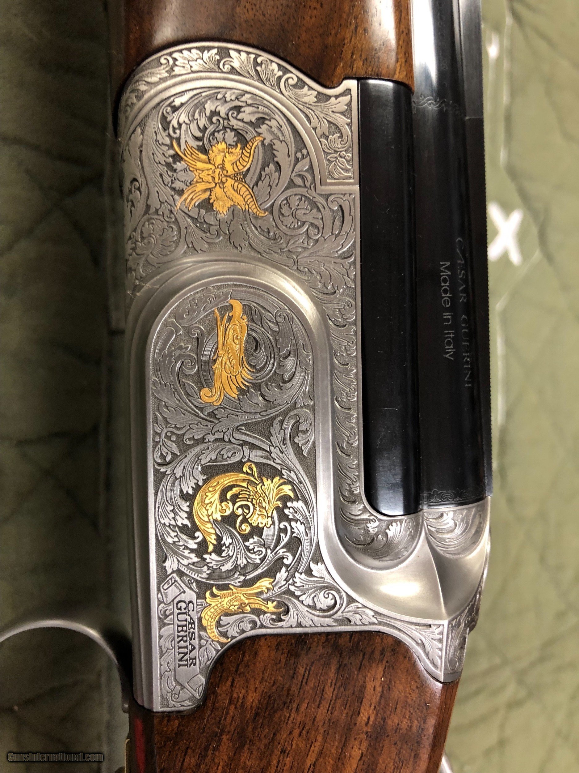 Description: Up for sale is a new Caesar Guerini Invictus III Sporting. This fine sporting gun is chambered in 12 ga and sports 32-inch barrels.This model has the coolest engraving pattern to date from Guerini, if your tired of the same old game scenes or scroll engraving feast your eyes on the Invictus III Sporting. This is in stock and ready to hit the sporting clays course. Caesar Guerini has strict MAP pricing polices so I must advertise at MAP pricing, all you have to do is call for the best delivered price. I love to sell fine guns, I am not a curator of a museum. The Invictus III Sporting is a beautifully crafted Italian masterpiece and will turn heads where ever it goes. I stock a vast array of Caesar Guerini ,Fabarm , Syren ,Blaser,Merkel and many more. It is impossible for me to list everything I will special order you anything your heart desires. Below is a description from Caesar Guerrini’ssite Thanks for looking. In our ongoing pursuit to make the best Target shotgun possible, Caesar Guerini has created the Invictus. Featuring the greatest advancement in over-under durability in many years – the Invictus System. This revolutionary new system completely changes the way the barrel and action lock together when the gun is closed, making the whole system stronger. Additionally, all locking surfaces are now modular, creating a gun that is many times more durable than a traditional over-and-under shotguns. For the first time you can measure the life span of your shotgun not by how long you can shoot it, but how long your children and grandchildren can. Unfortunately, we might have to consider updating that Lifetime guarantee. SPECIFICATIONS Model Invictus III Sporting *Measured from the lowest point of the barrel. **Weights may vary based on wood density. Gauge 12 Barrel length 30" (76cm), 32" (81cm) Avg. Weight** 8 lbs 1 oz, 8lbs 3oz. Receiver finish Hand polished coin finish with Invisalloy™ protective finish Stock Finish Hand rubbed oil Checkering 26 lines per inch Recoil Pad Black rubber Chamber 2 3/4" Top Rib Width 10mm to 8mm tapered Rib Height* 6mm Center Rib Ventilated Forcing Cones 5" DuoCon Avg. Barrel Weight 30"-1.56kg (3.43lbs.) 32"-1.59kg (3.50lbs.) Avg. Bore .735, Chrome lined Chokes 6 MAXIS competition chokes Sight(s) White Bradley style front Silver center bead Fore-end Rounded Trigger DPS ultra-crisp trigger system with take up, over travel and length of pull adjustments. Factory selective release triggers available in single and double release. Safety Manual (Automatic as an option) Accessories Stock and trigger wrench, choke case, friction choke wrench Case Plastic hard case with fit interior and velvet stock sleeve and barrel sleeve Model Invictus III Sporting 12g All Measurements are subject to change without notice and are based on average measurements. *Measured from the center of trigger adjustment. Drop at comb 1.5" Drop at heel 2.25" Length of pull 14.75" Cast at heel .125" Cast at toe .20" Pitch 5° Breech to comb 7.25" Reach 3.75" A2V154 Invictus III Sporting 12g 32" $8,445 Call for Best delivered Price!!! SOLD |
