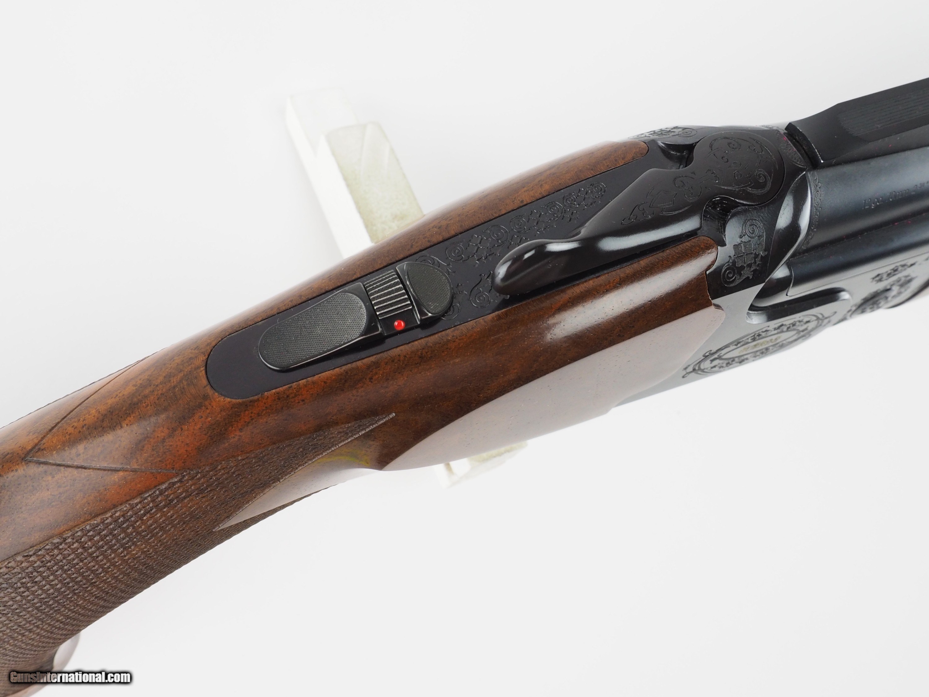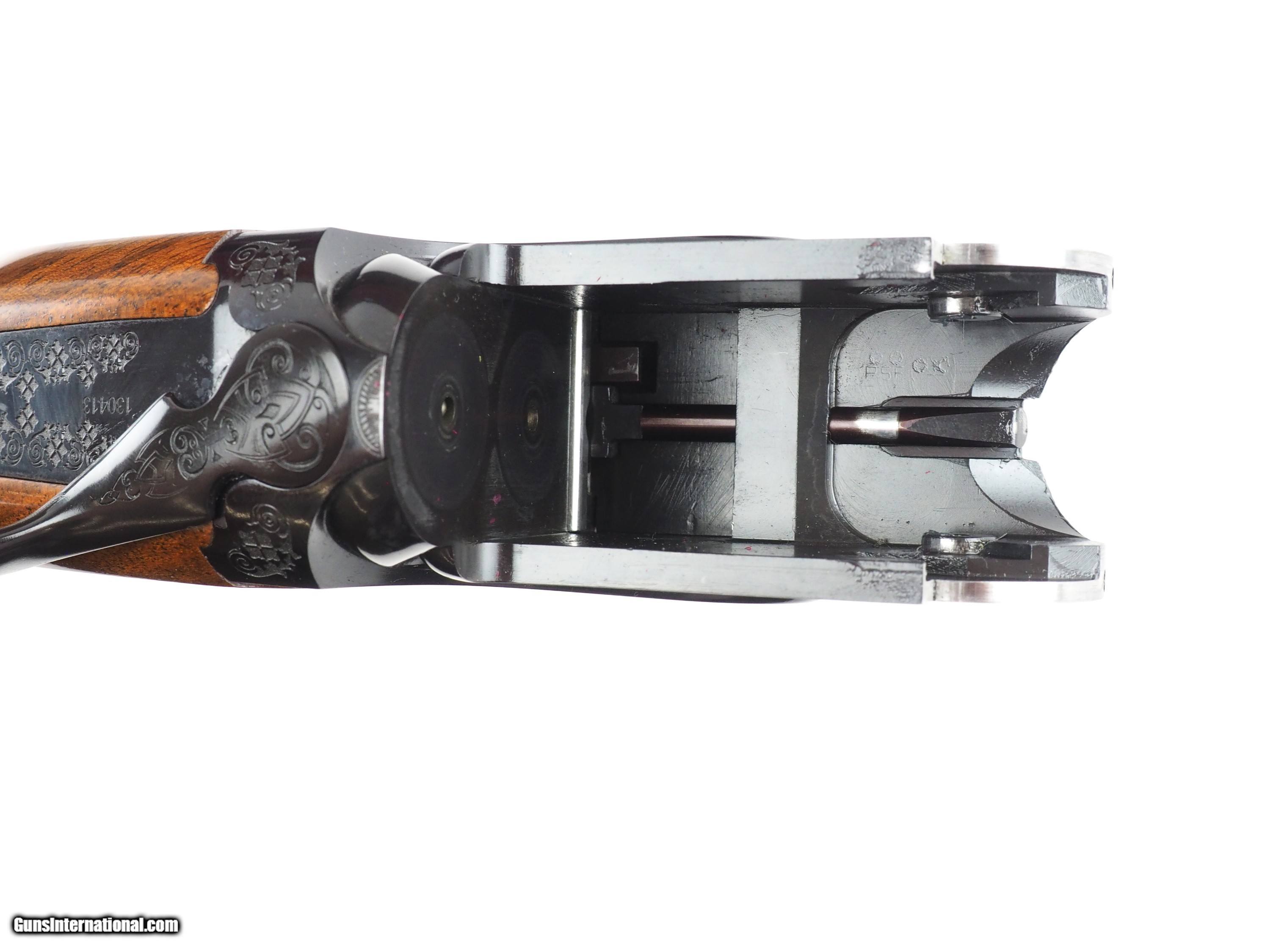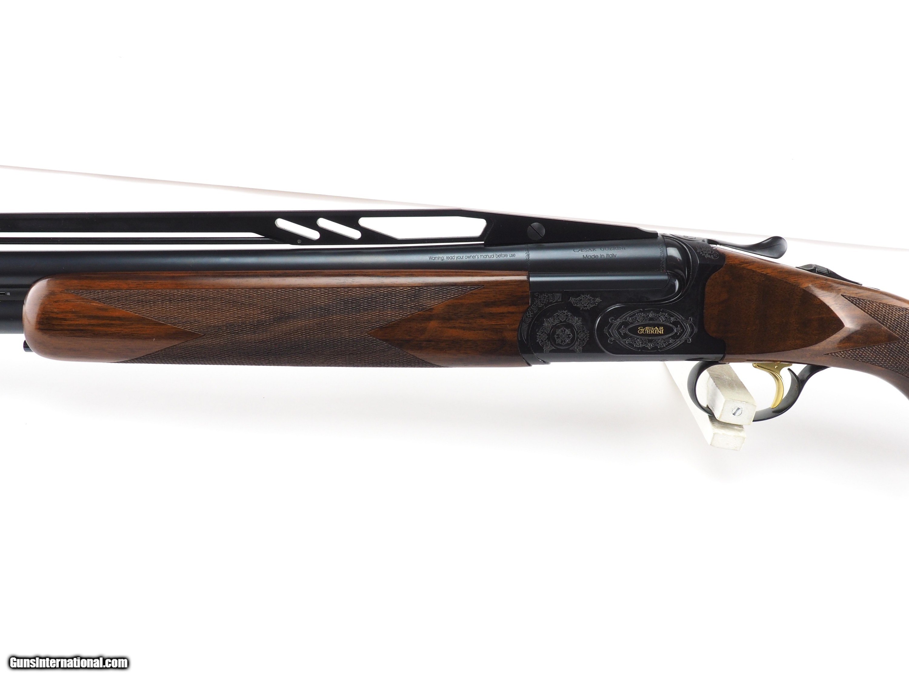 Description: 2013-production Guerini Summit Impact with 32” barrels, uncut Monte Carlo stock, factory original recoil pad, and a fresh full-service Pit Stop at Guerini USA prior to being listed for sale here. The metal finish is excellent, to include the easily-marred corners of the aluminum rib. The stock finish was enhanced by a well-meaning amateur, which frankly is still an upgrade over an 11-year-old factory oil finish! Top lever is well to the right, nearly to the edge of the wood. Barrels open smoothly with zero flop. Comes complete in factory case with chokes and accessories as listed below. Make: Caesar Guerini Model: Summit Impact Gauge: 12ga Hand: Right Barrel length: 32” LOP: 14.75” DAC: 1.57” (40mm) DAMC: 1.81” (46mm) DAH: 2.36” (60mm) Year of manufacture: 2013 [CI] Chokes: C, S, IC x2, M, LF, F Accessories: factory soft comb (shows moderate wear), stock wrench, trigger wrench, chokes, choke box, choke wrench Case: factory period-correct sporting SOLD |