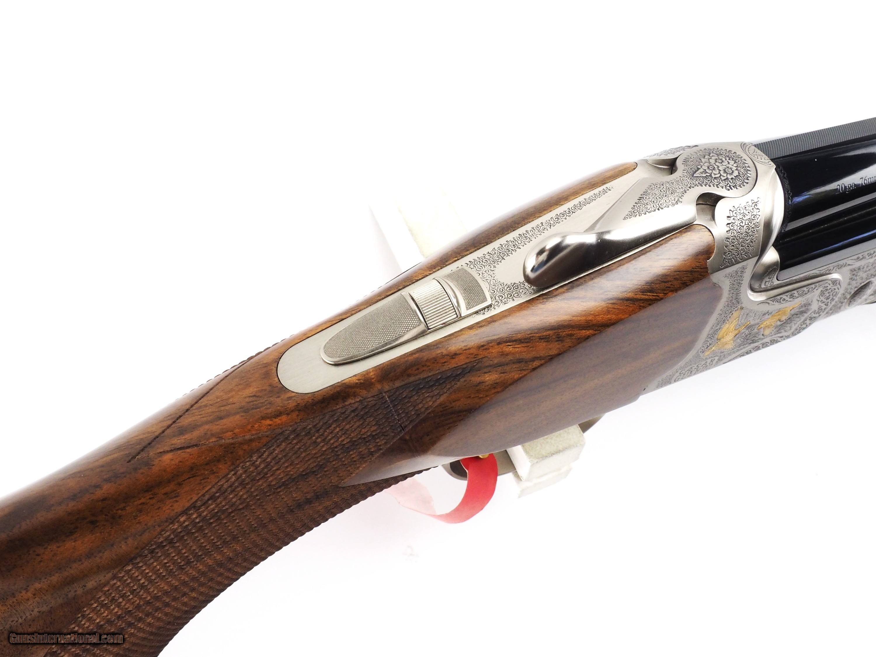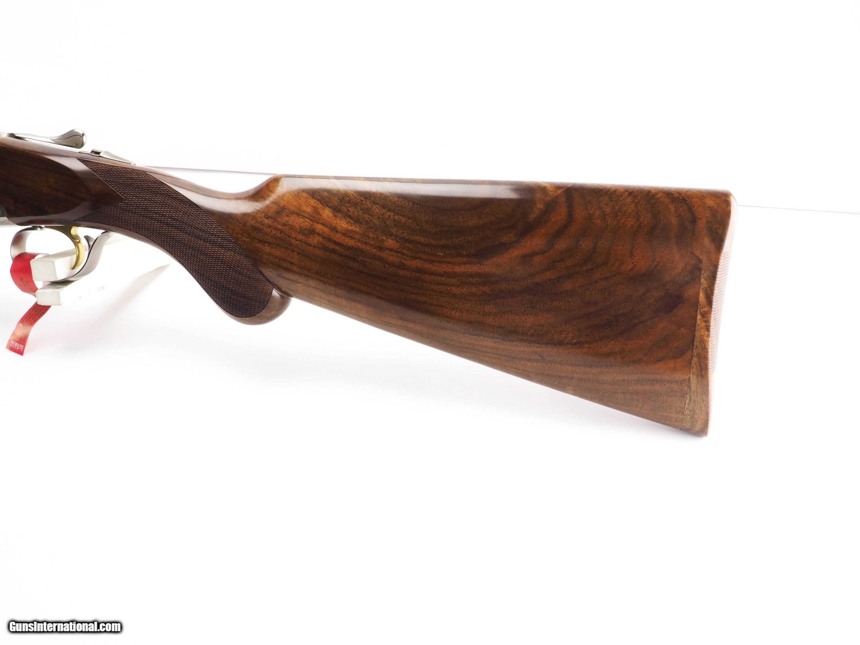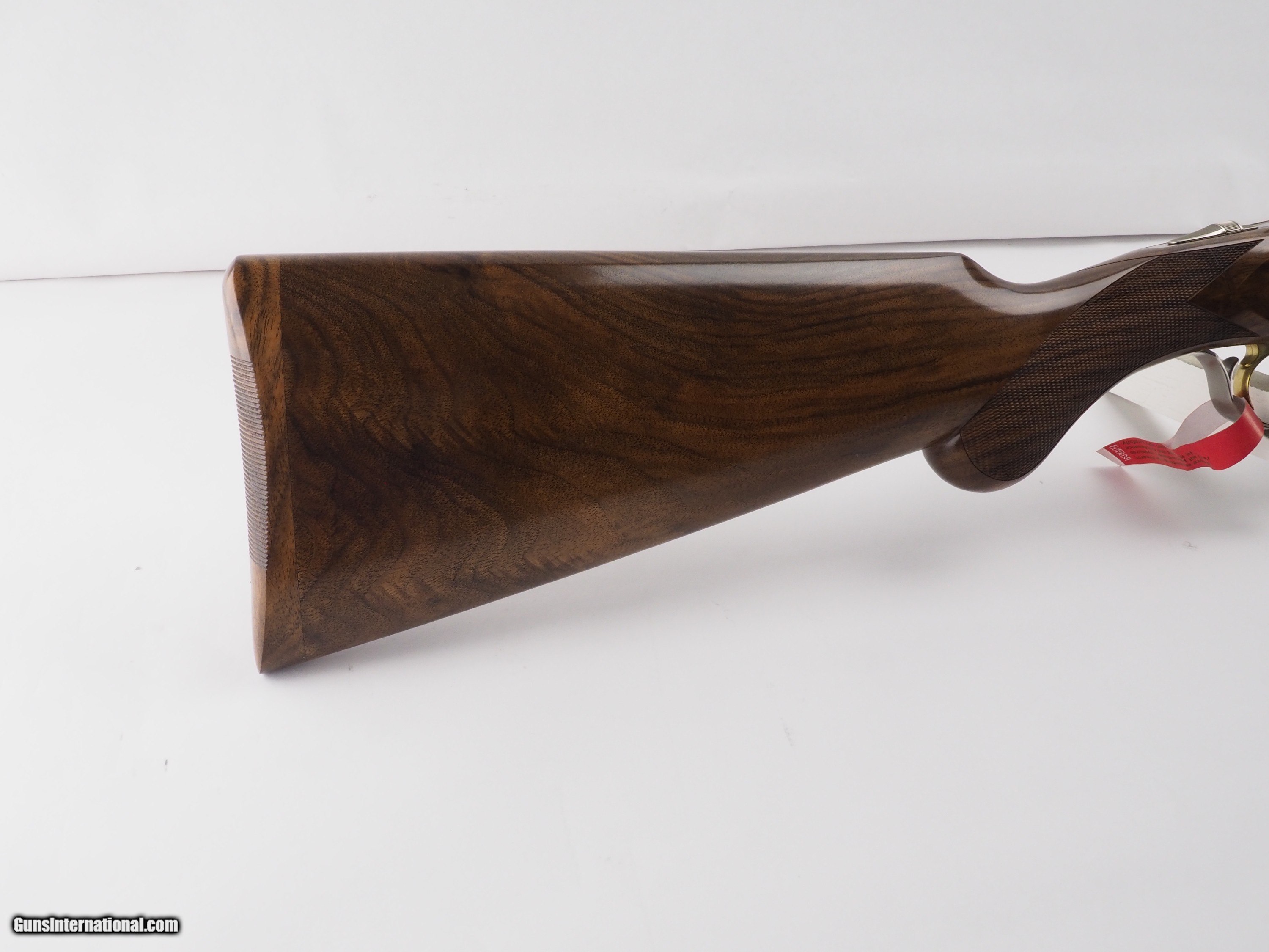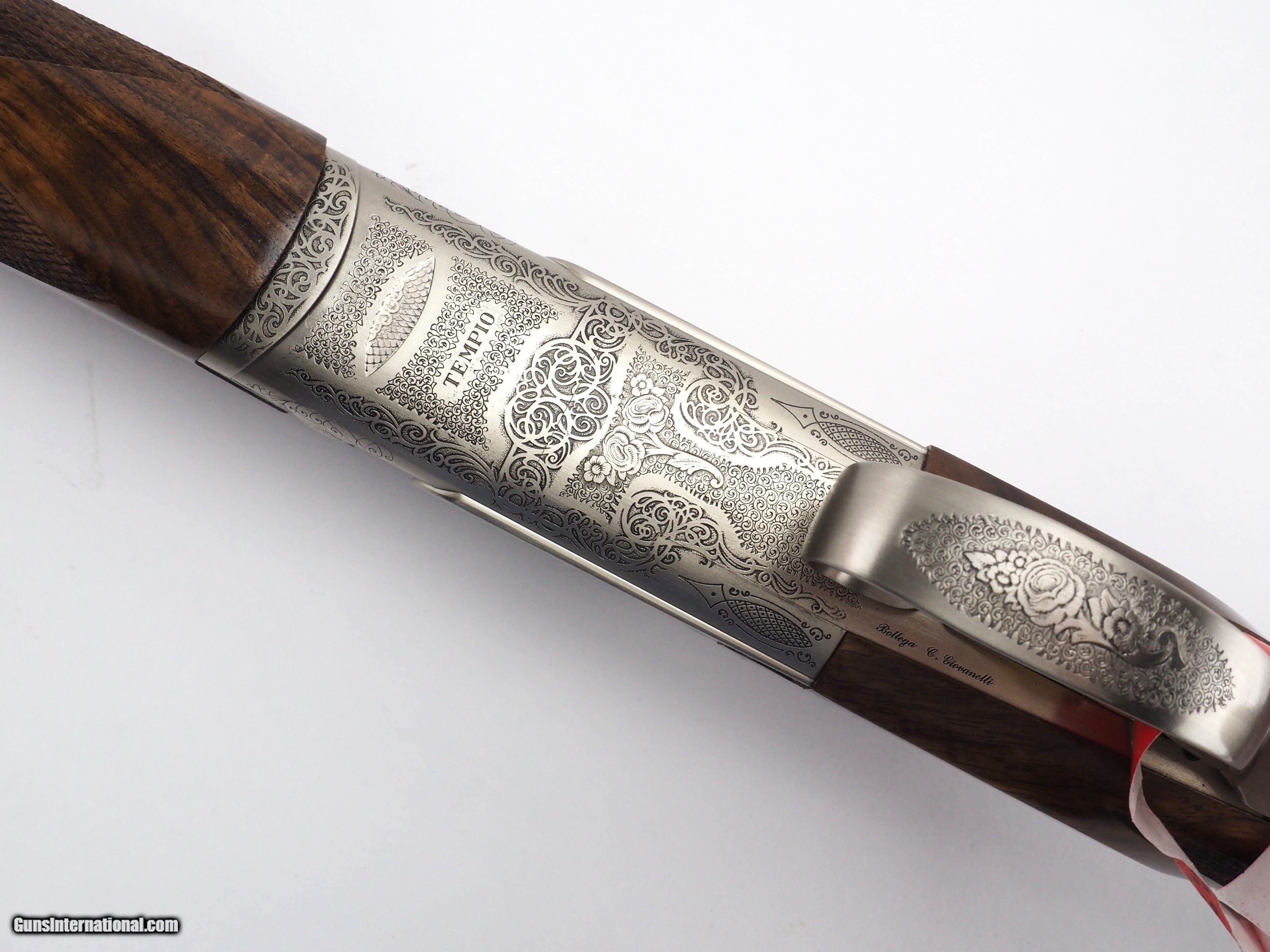 Description: The Tempio SE is a special limited production run version of the popular Tempio Field gun that features a unique game scene of doves in the left action and bobwhite quail on the right action with tasteful gold accents. The Tempio’s low-profile receiver matched with a trim stock, classic Prince-of-Wales grip and Schnabel fore-end make the gun a perfect match for fast game birds. The Tempio features a contemporary style of “ornato” scroll with tasteful gold accents. It’s a pretty gun and you should buy it. Make: Caesar Guerini Model: Tempio Field SE Hand: right Barrel length: 28” Gauge: 20ga LOP: 14.75” DAC: 1.5” DAH: 2.25” Cast at heel: .12” Cast at toe: .28” Chokes: C, IC, M, IM, F (flush fit) SOLD |