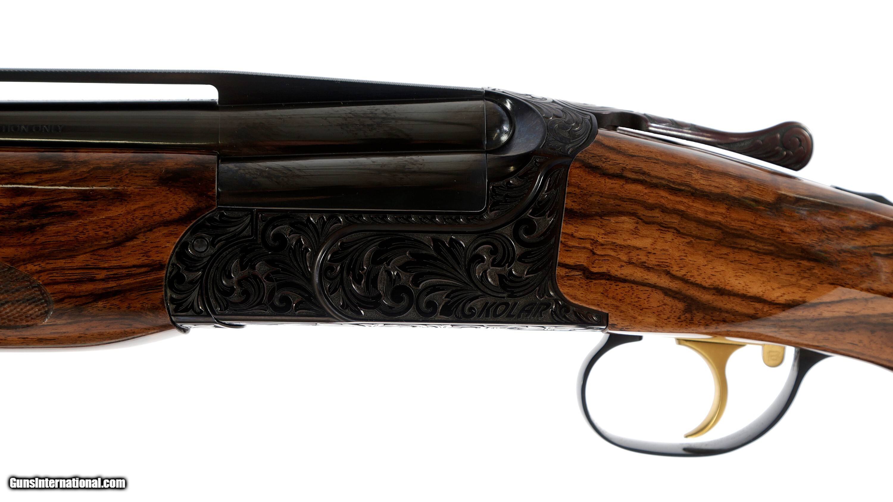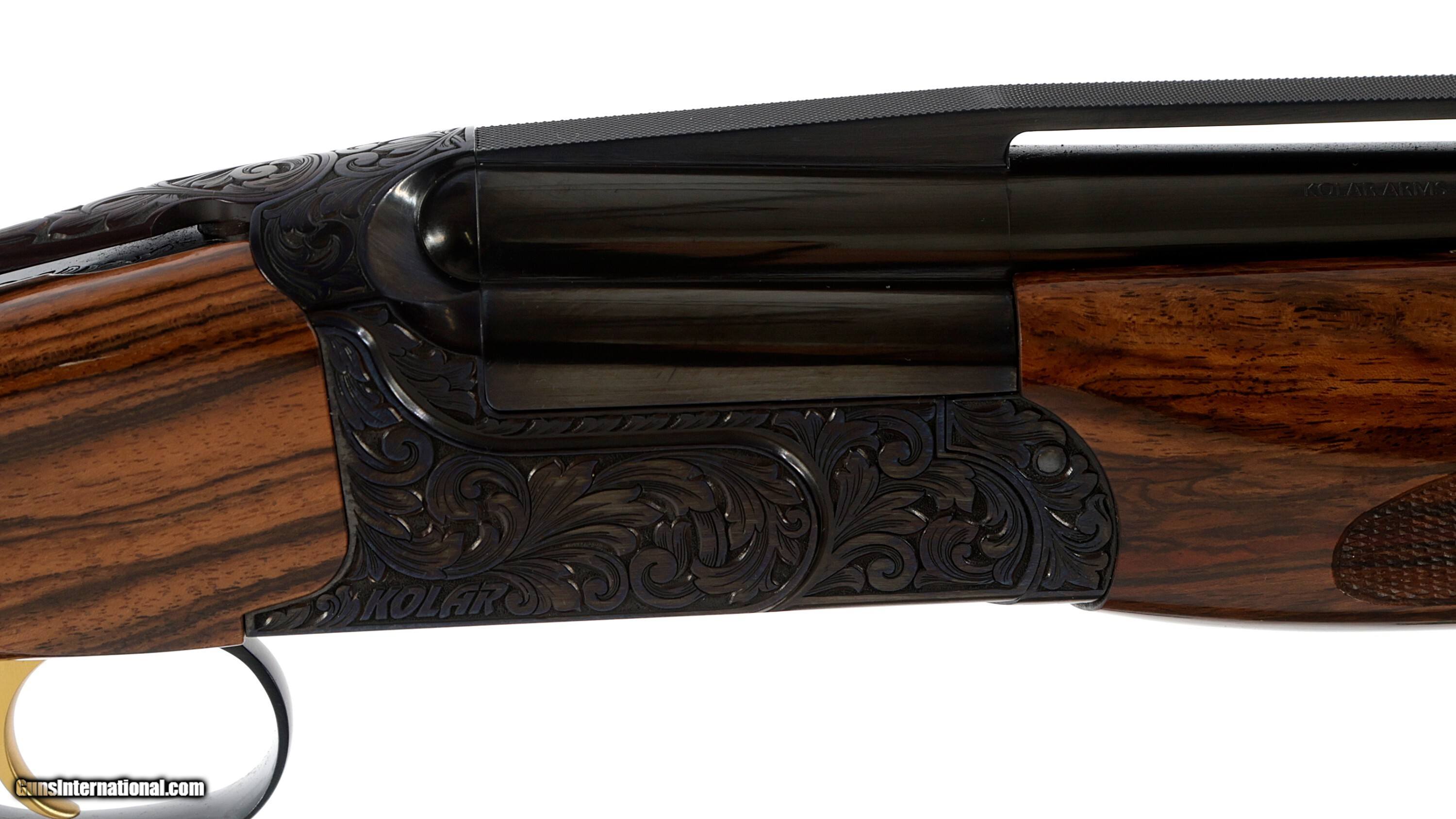 Description: Kolar Max Lite Premier Black Engraved Sporting Adj. 12ga 32" Pre-Owned Condition: Pre-Owned — Excellent Condition This Kolar Max Lite Premier is in excellent condition with very minor finish wear on the top right of the forend where it meets the barrel. The bore is clean and bright, and the action functions flawlessly. A premium American-made competition shotgun featuring deep relief cut engraving by Bottega Giovenelli, factory adjustable comb, and full case of chokes. This is a serious competition gun built to the highest standards. Model: Kolar Max Lite Premier Black Engraved Sporting Adj. Gauge: 12ga Barrel Configuration: 32" over/under barrels with ramp taper mid rib Chokes: (10) Kolar choke tubes – Modified, Light Modified, Improved Cylinder (x3), Skeet (x2), Full, Modified, Light Modified Stock: