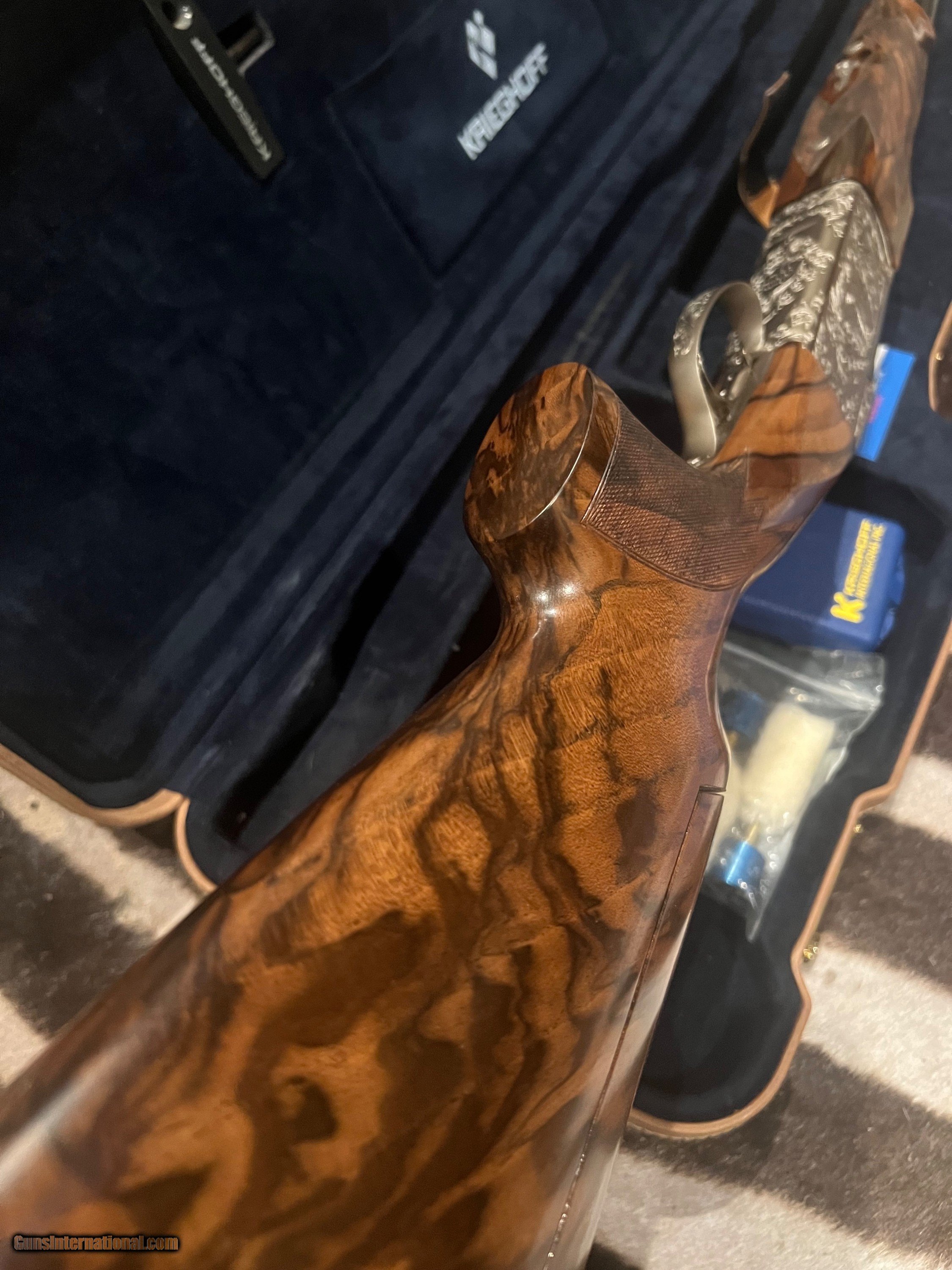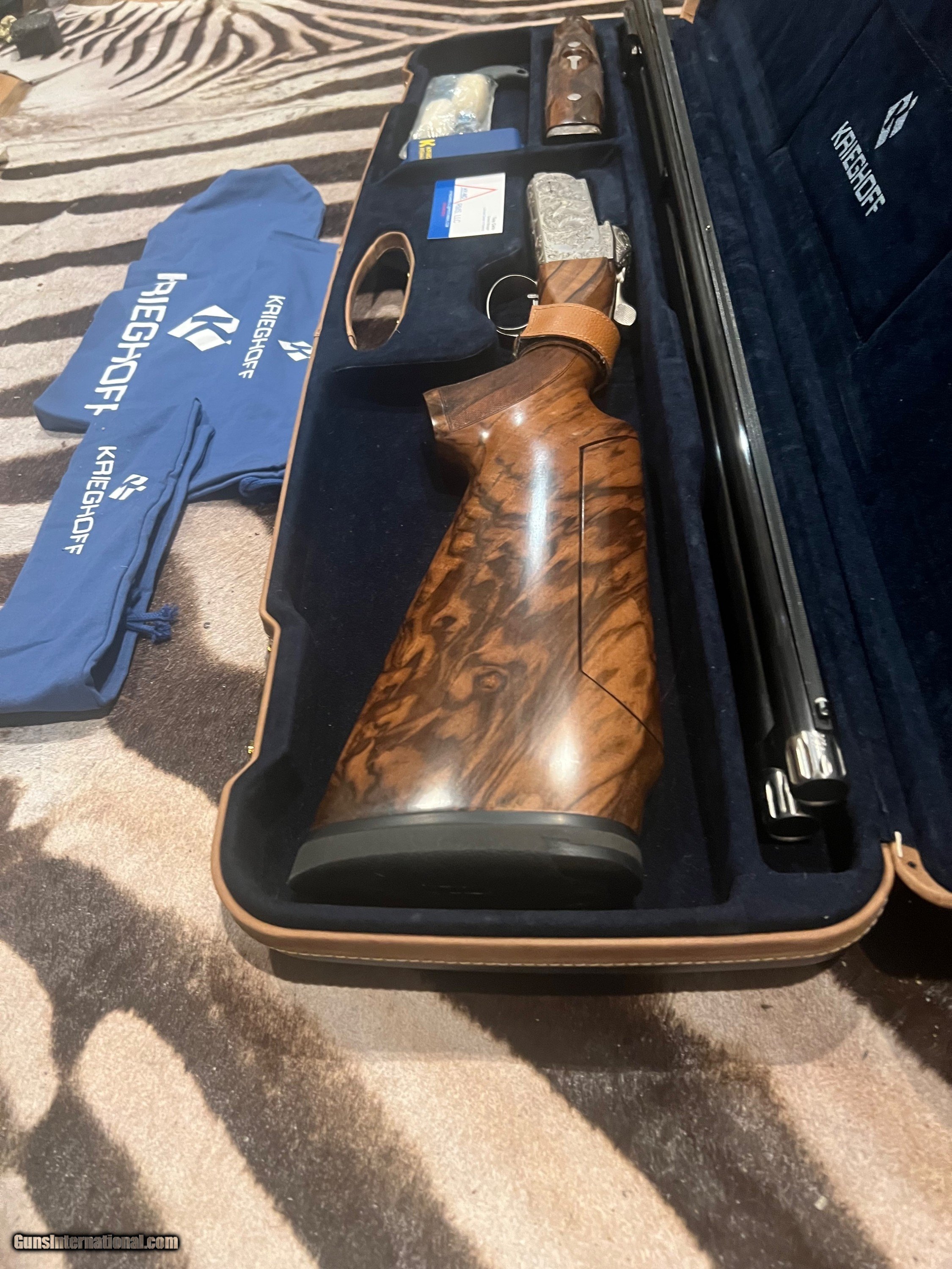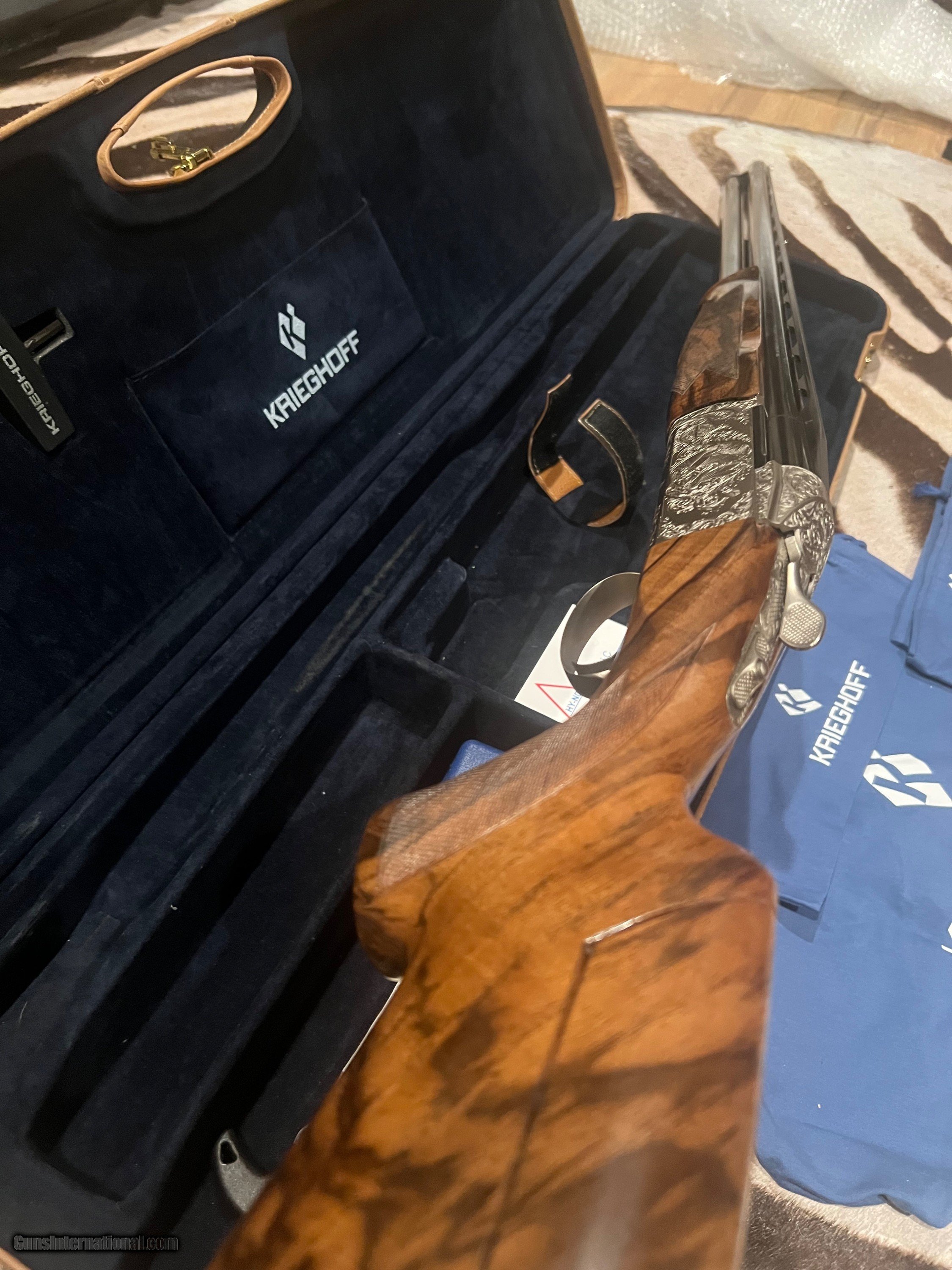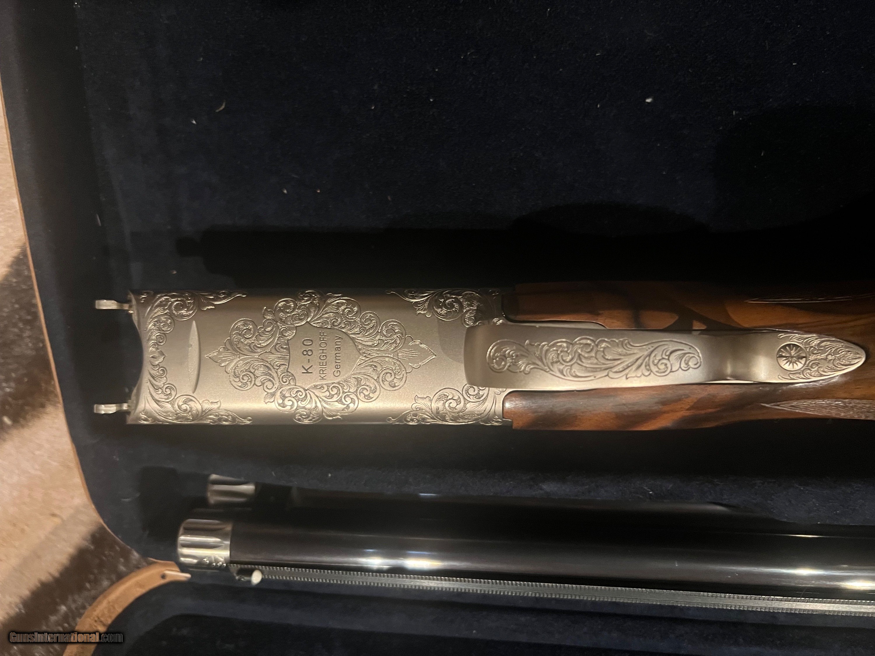 Description: Krieghoff K80 Bavarian Royal 32" barrel flat tapered sporting rib with factory titanium chokes (full set ) hand engraved and signed by master engraver Katherine Noon, Spectacular select Circassian Walnut exhibition level stock (custom number 3 clone $5500) pristine condition just serviced. Cased in Negrini leather trimmed factory case with all the accessories. For additional questions or to purchase call/text 512-595-1248 Overall a magnificent shotgun with today retail price of $28650 plus the stock upgrade in spectacular condition at an attractive price. Quality trades like Krieghoff Perazzi and English sporting rifles considered. Shotgun Gauge: 12 Gauge Manufacturer: Krieghoff Model: K80 Bavarian Royal Barrel Length: 32” Condition: 100% Wood Condition: 100% Barrel Type: Sporting Stock Dimensions: Factory number 3 Stock Cast: Right Butt Pad: Factory LOP: 14-3/4 or 15” with trigger all the way forward Rib: Flat tapered Engraving: Hand engraved by Katherine Noon Extras: Accessories Case: Yes Factory Negrini Item Location: North Carolina Price: $19,600.00 Contact Seller |