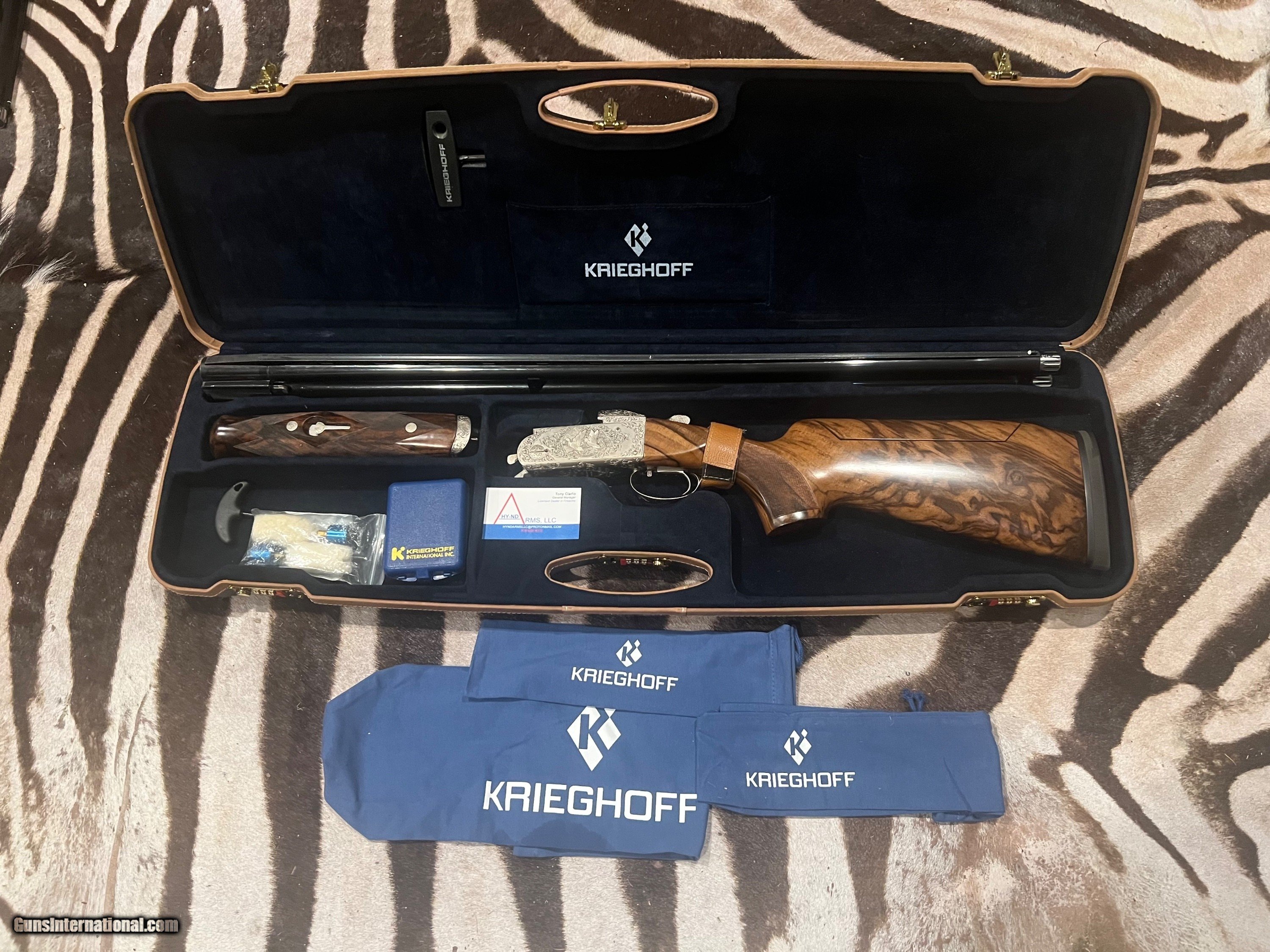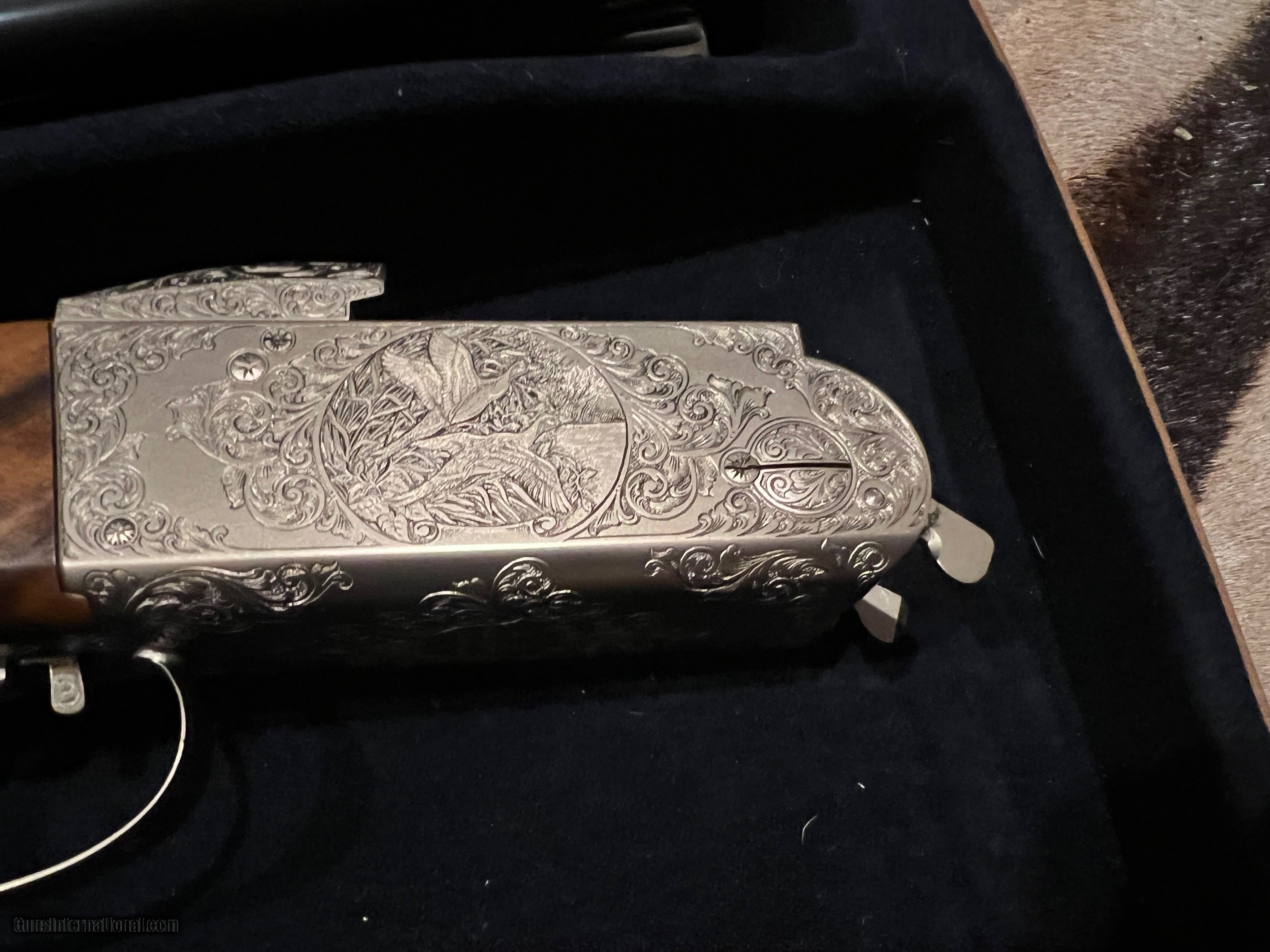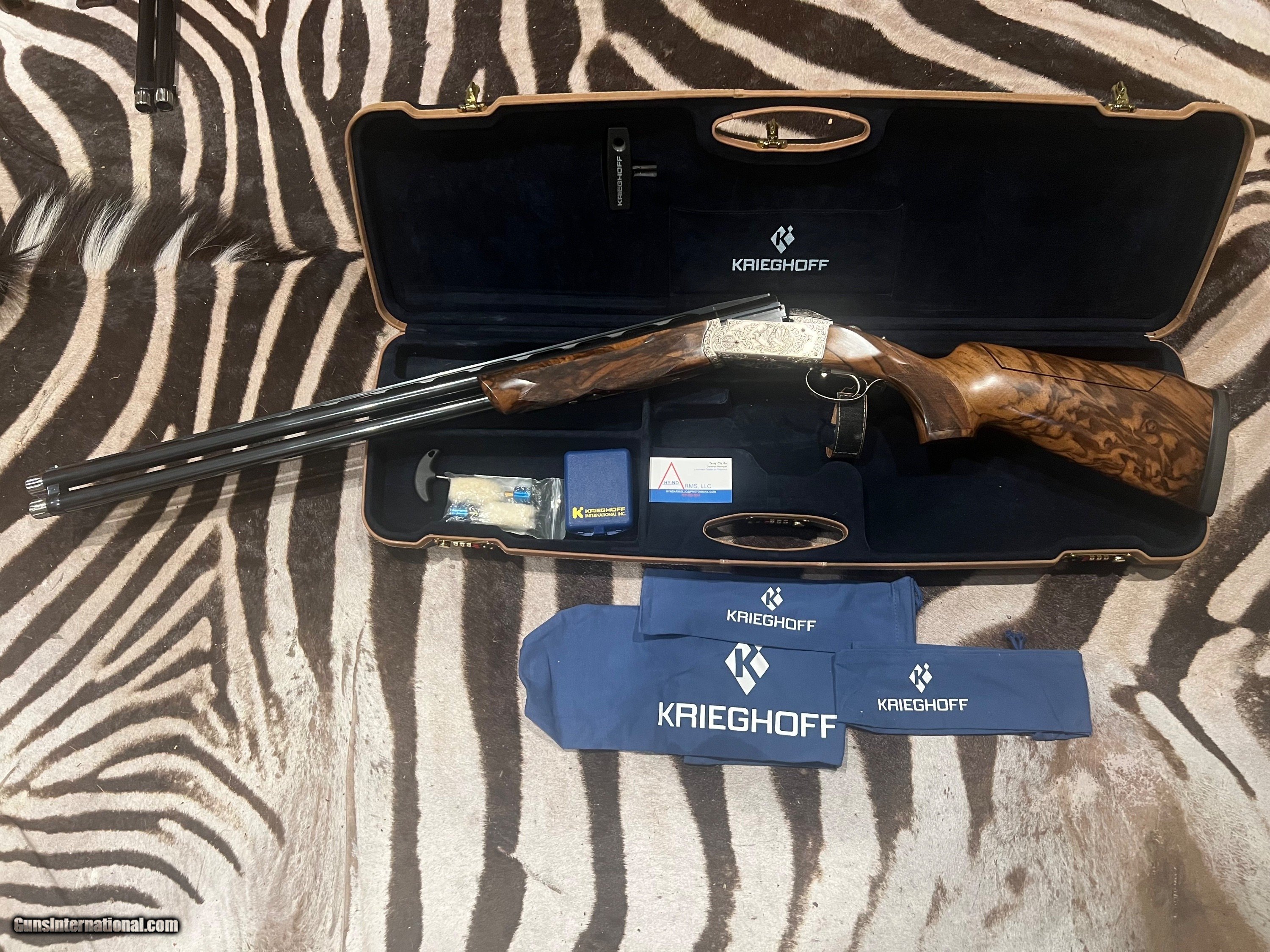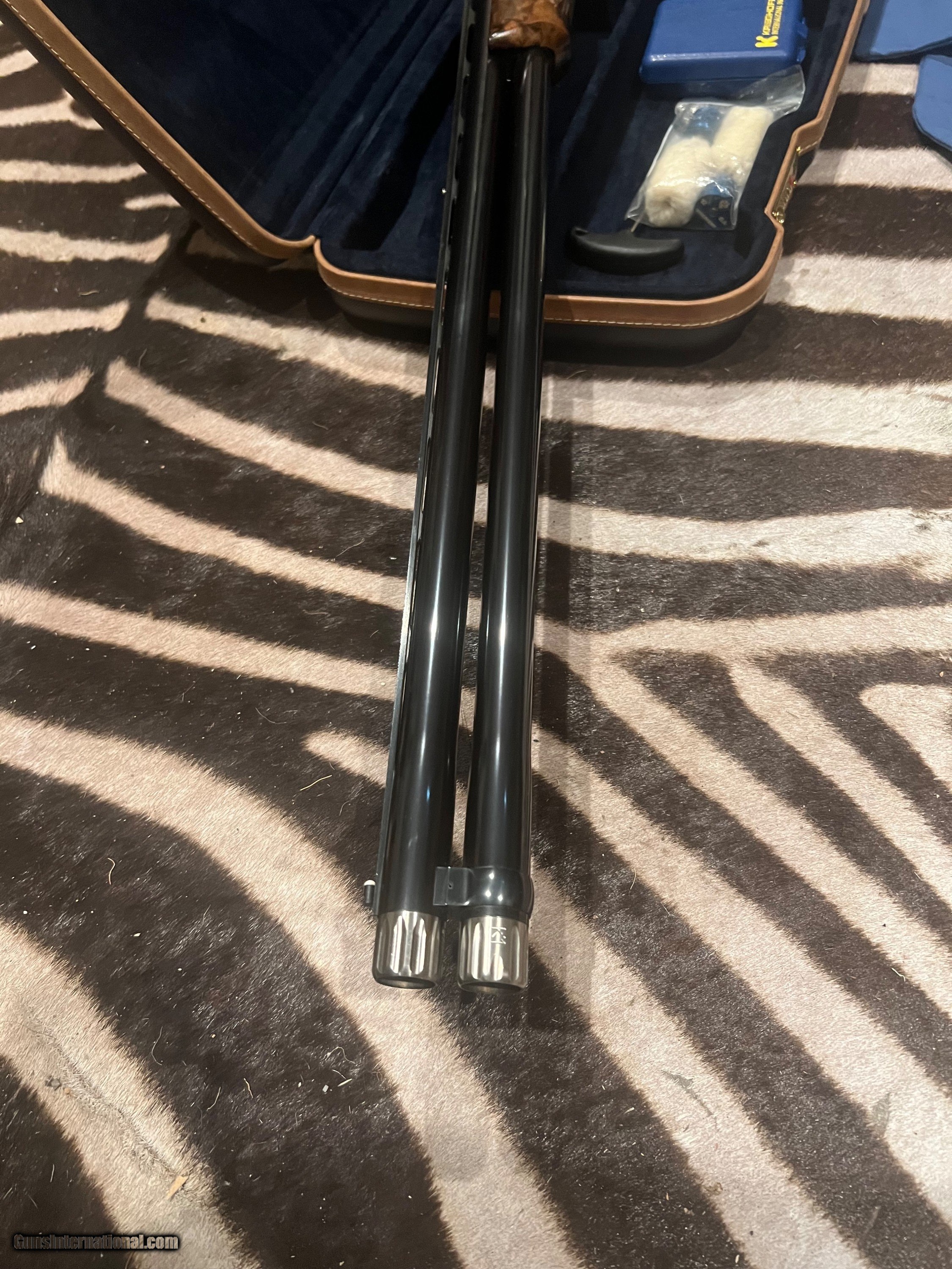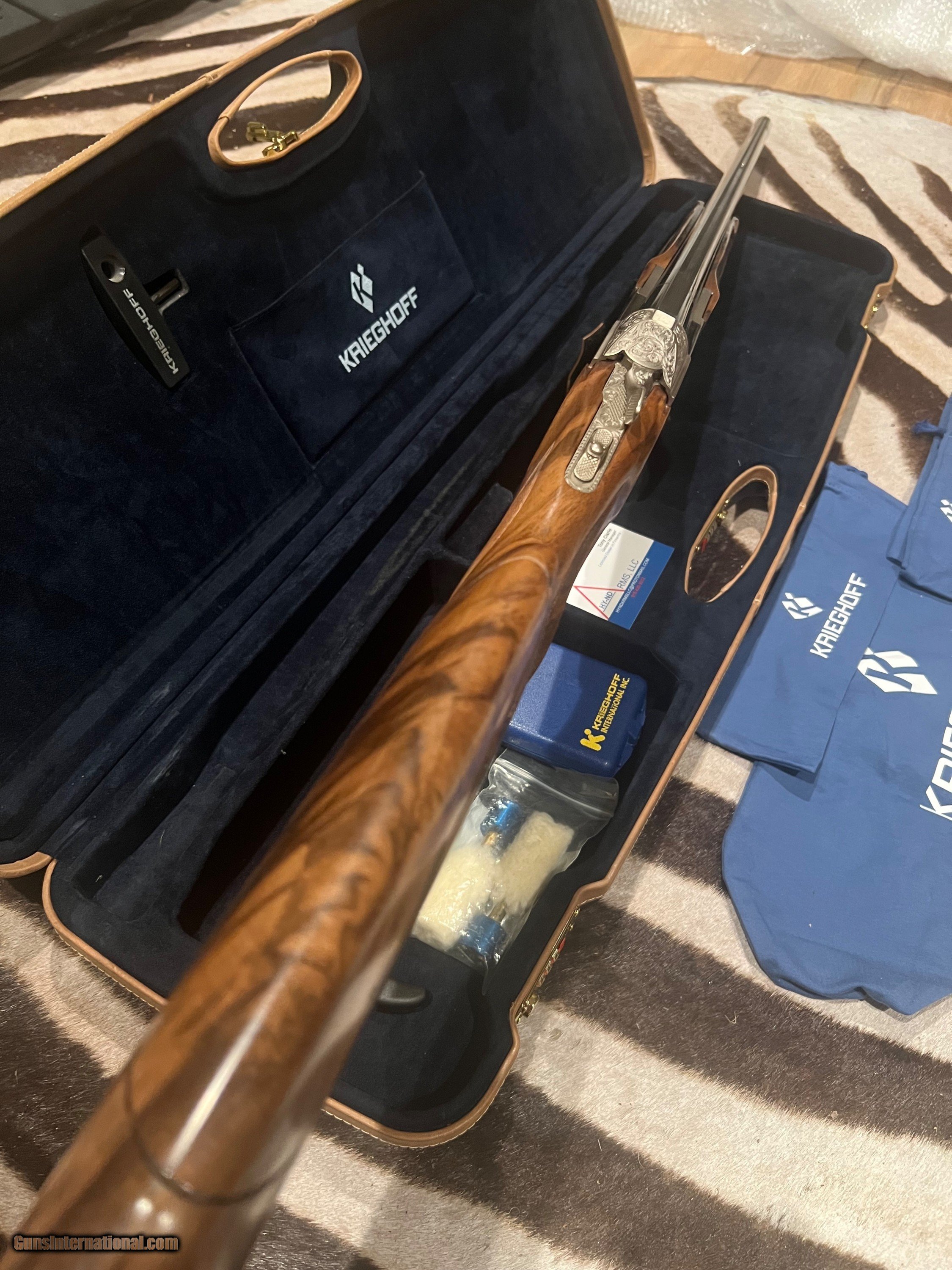 Description: Krieghoff K80 Bavarian Royal 32" barrel flat tapered sporting rib with factory titanium chokes (full set ) hand engraved and signed by master engraver Katherine Noon, Spectacular select Circassian Walnut exhibition level stock (custom number 3 clone $5500) pristine condition just serviced. Cased in Negrini leather trimmed factory case with all the accessories. For additional questions or to purchase call/text 512-595-1248 Overall a magnificent shotgun with today retail price of $28650 plus the stock upgrade in spectacular condition at an attractive price. Quality trades like Krieghoff Perazzi and English sporting rifles considered. Shotgun Gauge: 12 Gauge Manufacturer: Krieghoff Model: K80 Bavarian Royal Barrel Length: 32” Condition: 100% Wood Condition: 100% Barrel Type: Sporting Stock Dimensions: Factory number 3 Stock Cast: Right Butt Pad: Factory LOP: 14-3/4 or 15” with trigger all the way forward Rib: Flat tapered Engraving: Hand engraved by Katherine Noon Extras: Accessories Case: Yes Factory Negrini Item Location: North Carolina Price: $19,600.00 Contact Seller |
