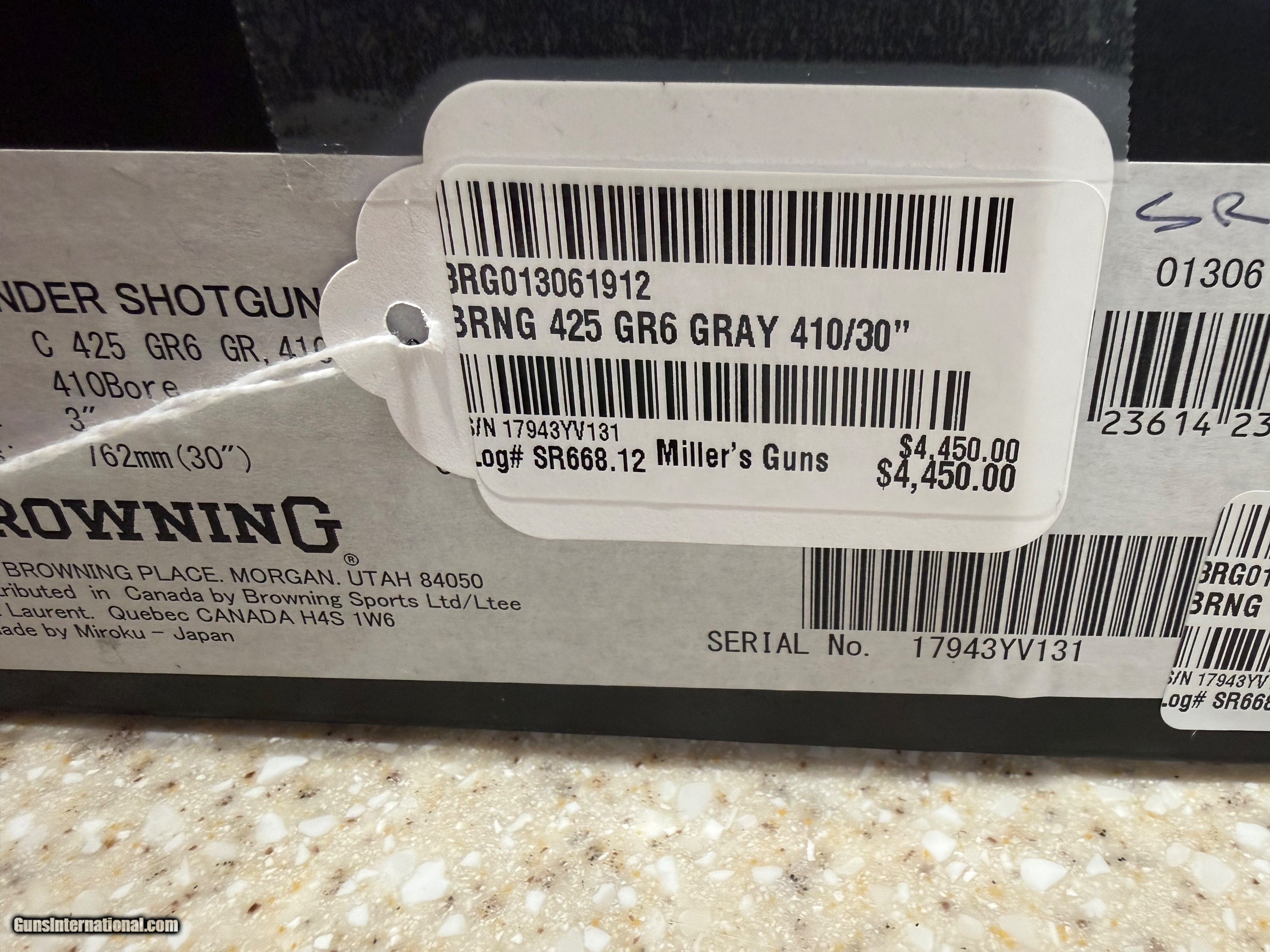 Millers Exclusive Browning 425 Grade 6 410ga/30 Gray