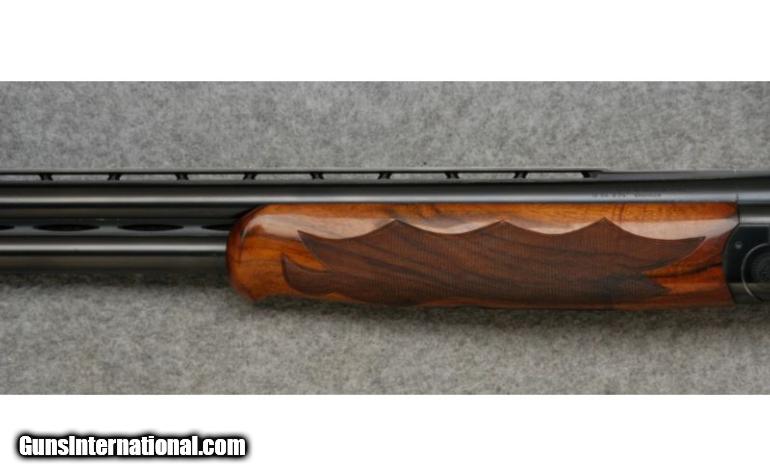 Description: Excellent condition overall with normal handling wear. Appears to be restocked with a carrying case. SOLD Manufacturer: Circa: 1985 Caliber Info: 12 Gauge Chambers: 2 3/4 Metal Condition: Excellent with handling wear Wood Condition: Excellent Bore Condition: Excellent Barrels: 29 1/2" Ported Barrels Triggers: Single Selective Trigger Stock: Straight Grip Checkered Deluxe Walnut Stock Dimensions: DAC: 1 1/2", DAH: 1 1/2", Cast off: 1/8", LOP: 14 Fore End: Checkered Walnut with Schnabel Tip Butt Pad: Pachmayr Decelerator Weight: 7 lbs. 15 ozs. Chokes: Fixed: Light Modified in top barrel and a Skeet Tube in bottom barrel Item Location: Hamburg, PA |
