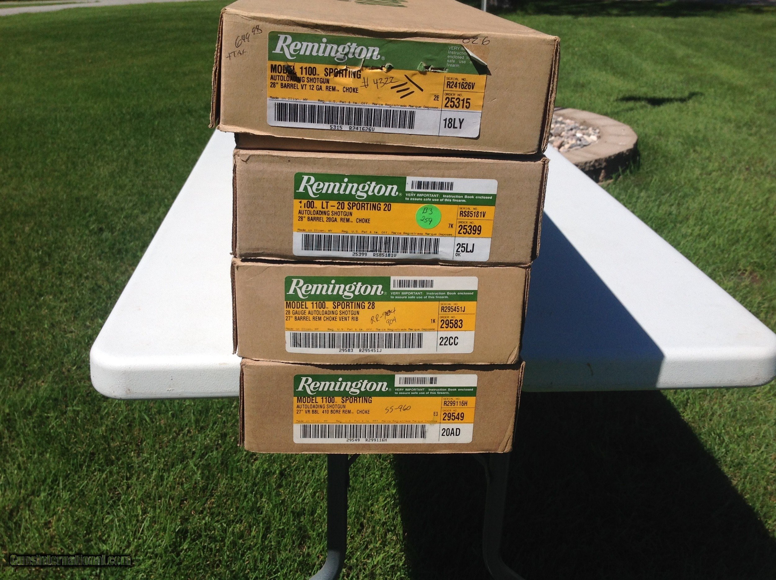 Description: Remington 1100 Sporting Four Gun Collector Set. Three guns are in excellent condition one has a small ding on the underside of the stock. The two baby bores were shot one time the 20ga and 12ga shot very little. All four guns come in the box with RemChoke tubes. $6800.00 + $120.00 Shipping and Insurance. Contact me for more pictures or information. SOLD SOLD |