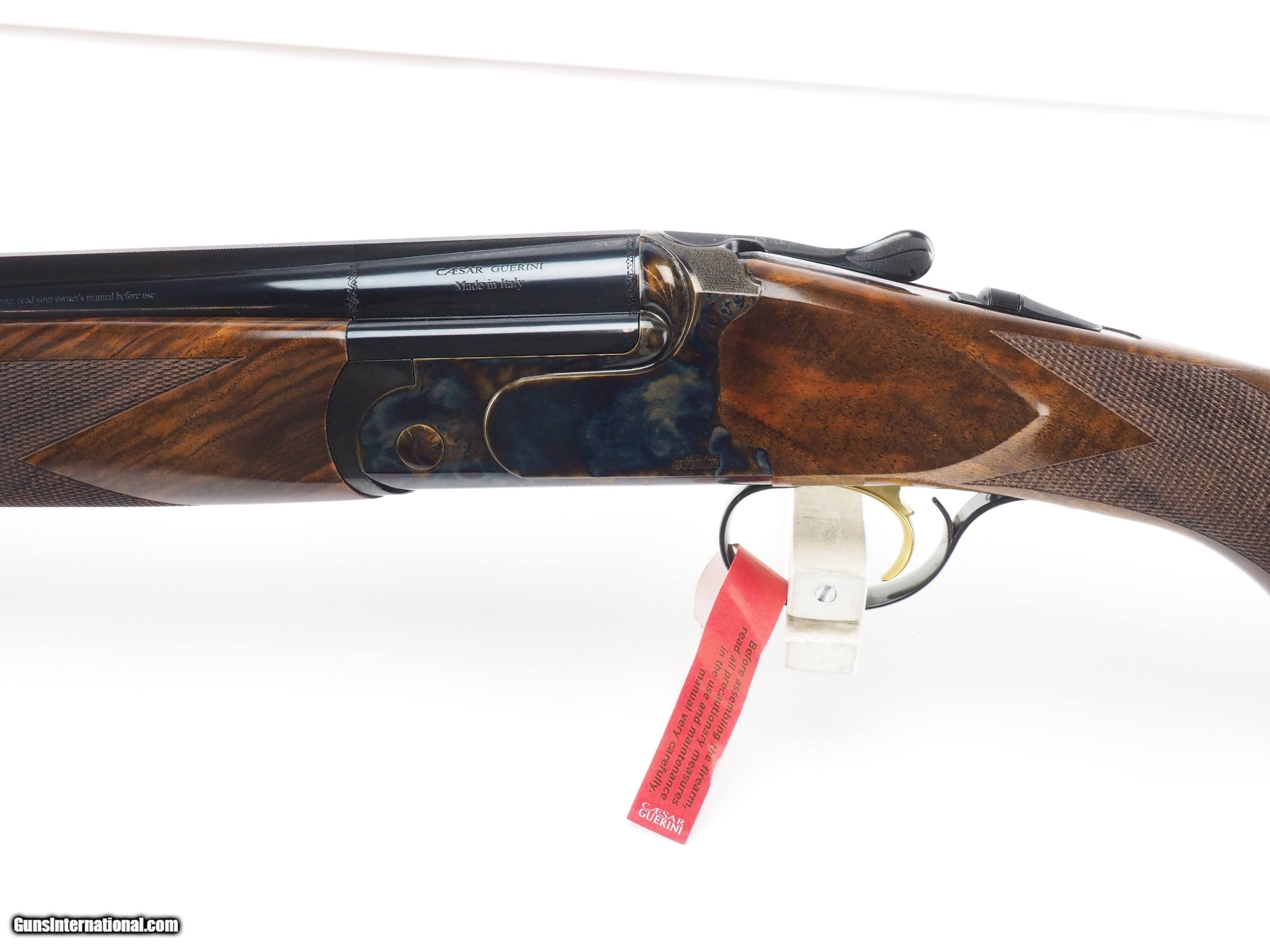 Description: Brand new Woodlander, the base model in the Caesar Guerini field gun range. Unlike many other manufacturers, Guerini field guns are built on sporting gun frames which are designed to take a beating far beyond the round count capacity of the typical Italian mid-tier sporting gun built on a field gun chassis. The new Dove Special Woodlander shares much of the same design architecture as the standard Woodlander model, but there are noticeable differences. For starters, the grouse on the bottom of the receiver has been replaced by a brace of mourning doves on the limited gun. The standard Woodlander comes with a wooden butt plate, Schnabel forend and a round Prince-of-Wales grip, whereas the Dove Special comes with an upgraded at-bottom grip, rounded forend and a rubber recoil pad. Both guns do come with tang mounted safety/barrel selector, auto ejectors, and Anson style release. This 20-gauge version of the Dove Special weighs around 6.75 pounds depending upon barrel length and wood density. GUERINI’S LATEST LIMITED PRODUCTION SHOTGUN IS PERFECTLY SUITED FOR DOVE HUNTING—AND JUST ABOUT EVERYTHING ELSE. As with all Guerini guns, this Woodlander has a limited lifetime warranty to its original purchaser. Make: Caesar Guerini Model: Woodlander Hand: Right Gauge: 28GA Barrel length: 30” LOP: 14.75” DAC: 1.5” DAH: 2.25” Cast at heel: .12” Cast at toe: .20” Chokes: C, IC, M, IM, F (flush) Accessories: stock sleeves, chokes, choke case, choke wrench SOLD |