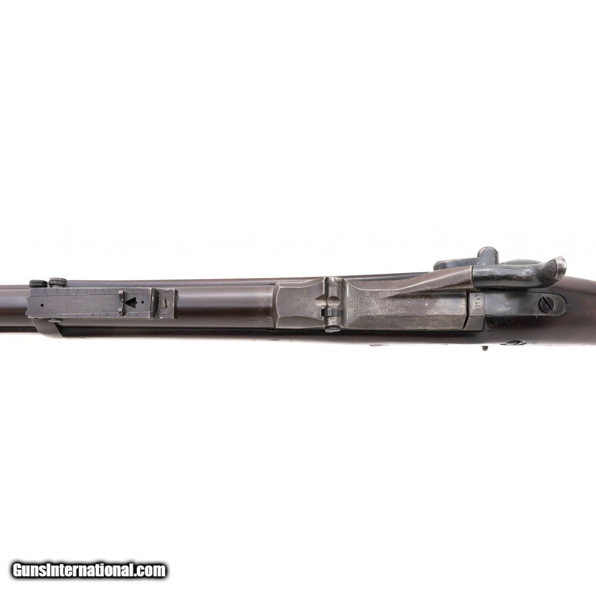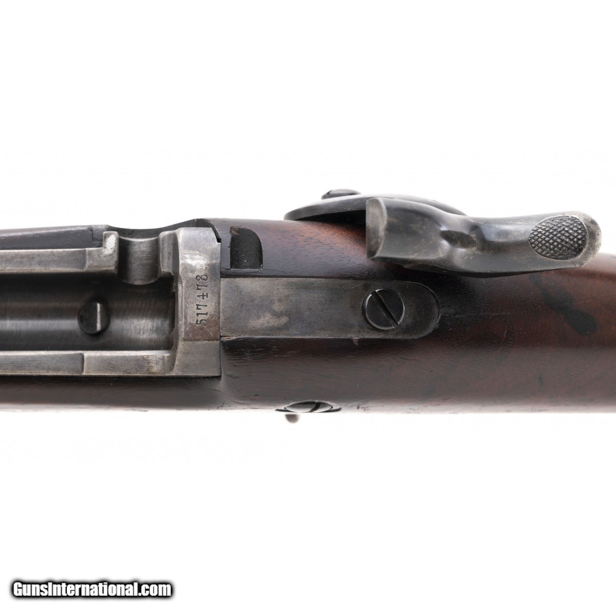 Description: " Serial No. 517473 circa 1891 chambered in .45-70 with a 32 5/8"" round barrel. Barrel has a smooth plum patina, breech has traces of case coloring visible. Wood is good with a handsome cartouche present, a unit rack number is painted on the right side. Barrel is bight and shiny with strong rifling. SOLD Antique: Yes |