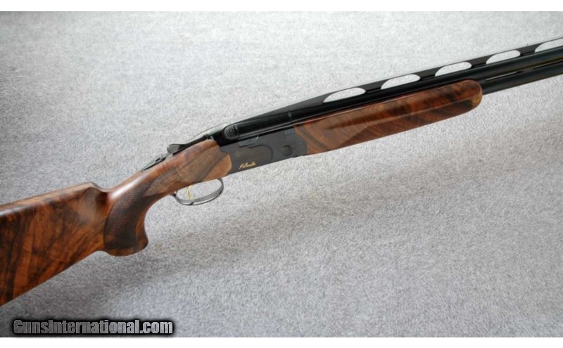 Description: Available only from Cabela's, the legendary Model 686 in an Onyx Pro Field version with an exclusive high-luster blued receiver and gold engraving. The high-grade, oil-finish walnut pistol-grip stock and Schnabel fore end complement the blued barrels and receiver SOLD Manufacturer: 2015 Caliber Info: 12 Gauge Chambers: 3 inch Metal Condition: New Wood Condition: New Bore Condition: New Barrels: 32 inch Triggers: Single selective Stock: Checkered grade 3 Turkish walnut Monte Carlo stock with right handed palm swell Stock Dimensions: 14 1/2 in. LOP Fore End: Checkered grade 3 Turkish walnut Butt Pad: Beretta rubber pad Weight: 8 lbs. 4 oz. Sights: Raised vent rib with double beads Chokes: Interchangeable choke tubes Extras: Box and accessories Item Location: Lehi, UT |