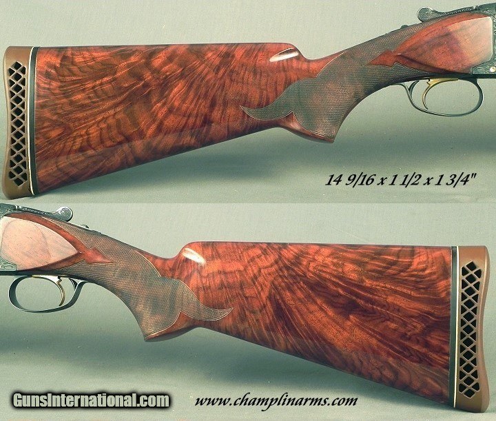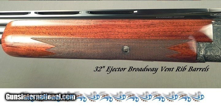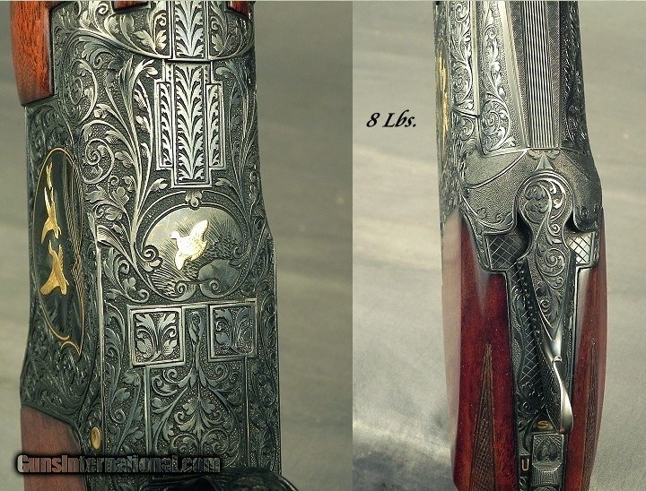 Description: #81930 S7, Browning Belgium Superposed 12 Bore Midas Grade Broadway Trap Made in 1967 with a Square Knob & Short Tang, 32" Broadway vent rib barrels at .723 .028 & .037" (Imp.Mod. & Full), Factory marked Imp. Mod. & Full, 2 3/4" chambers, Single selective trigger, 8 Lbs., 14 9/16 x 1 1/2 x 1 3/4" over the factory pad, Excellent wood with very nice feather and excellent color contrast, Standard forend size and not the beavertail style, Full coverage Midas engraving and signed by Master Engraver A. (Andre) Dierckx on both sides of the receiver, The original factory barrel blue is 98%, Original receiver blue at 94%, The wood is at 97%, The checkering at 96%, The bores are excellent plus. At 1 1/2" at the comb and 1 3/4" at the heel, this piece with those dimensions could be a Dove shooting machine. SOLD Curio/Relic: Yes Shotgun Gauge: 12 Gauge |