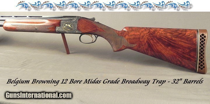 BROWNING BELGIUM MIDAS 12 BROADWAY TRAP- 1967- 32" VENT RIB Bbls.- MASTER ENGRAVER ANDRE DIERCKX- CHOKED I. M. & FULL- EXC PLUS WOOD- OVERALL 94%
