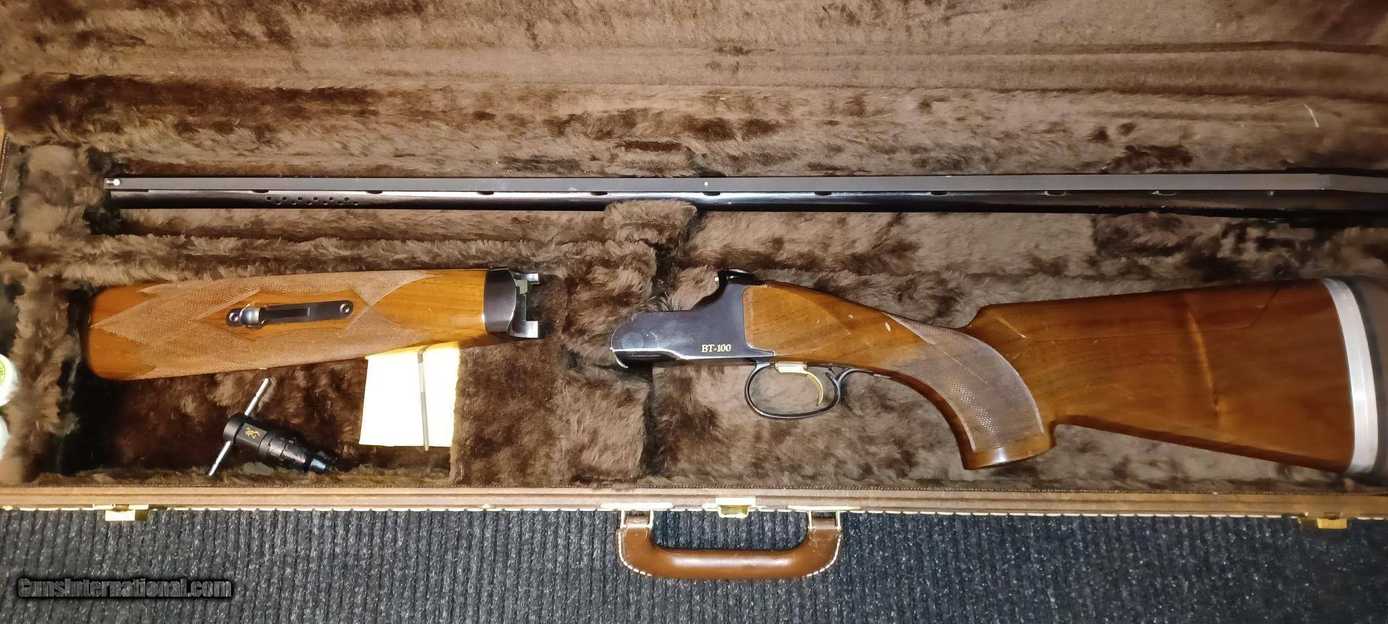 Description: Very nice Browning BT 100 with case. Shotgun has the adjustable butt plate and cheek rest. This gun was produced in 1997 and comes with chokes, choke tool and nice Browning case. It showes light wear on the forarm but overall very good condition. If you have any questions please contact Yeater Outdoors. Thanks SOLD Shotgun Gauge: 12 Gauge Manufacturer: Browning Model: BT-100 Barrel Length: 32 Condition: good Metal Condition: good Wood Condition: good Bore Condition: good Action: break Stock: Wood Butt Pad: adjustable Manufacture Date: 1997 Chokes: yes |