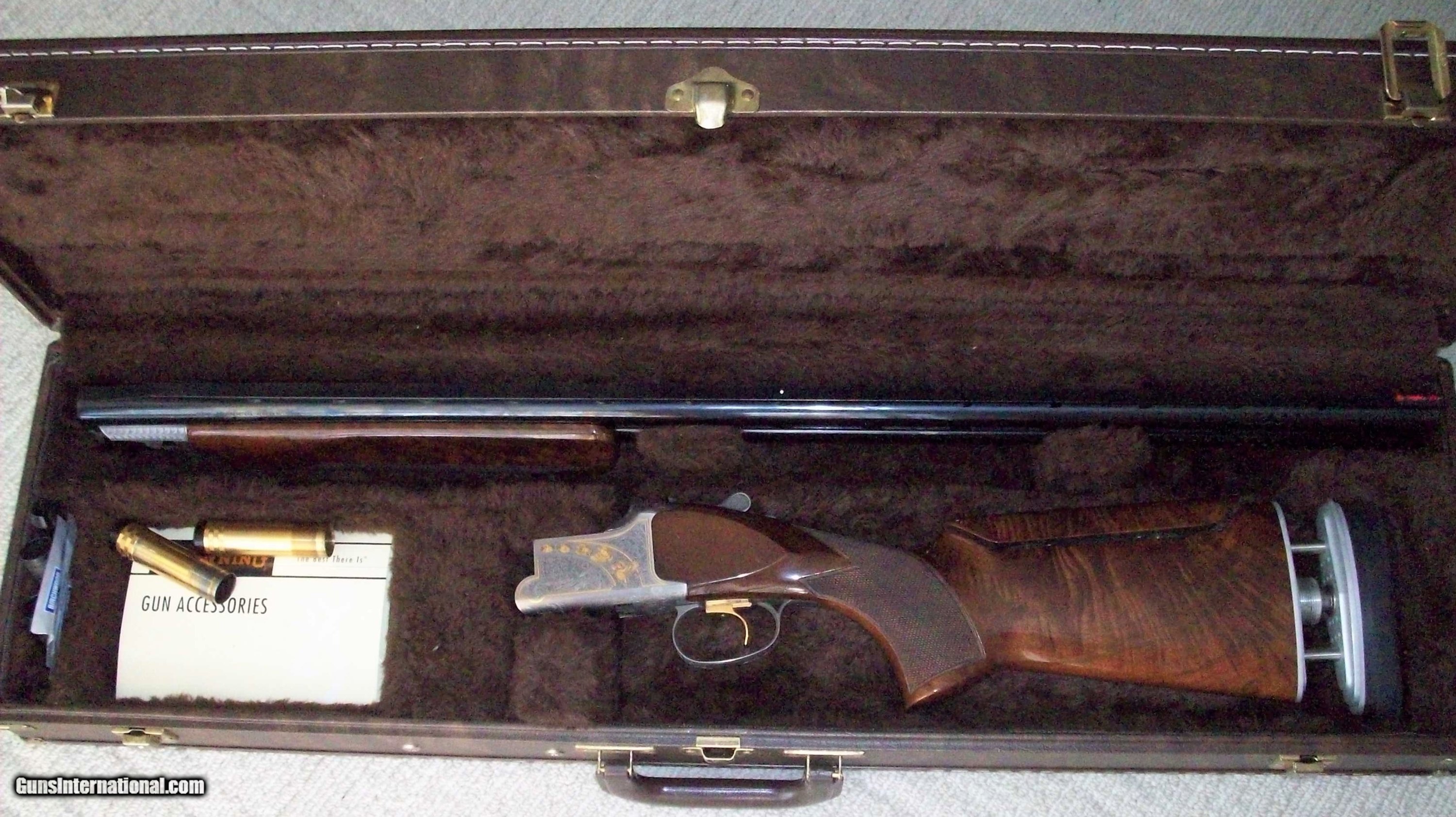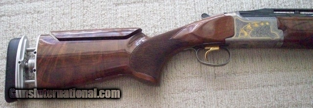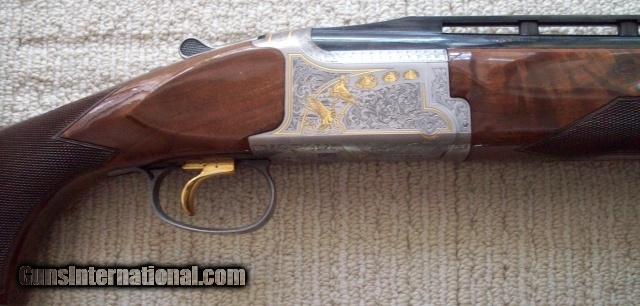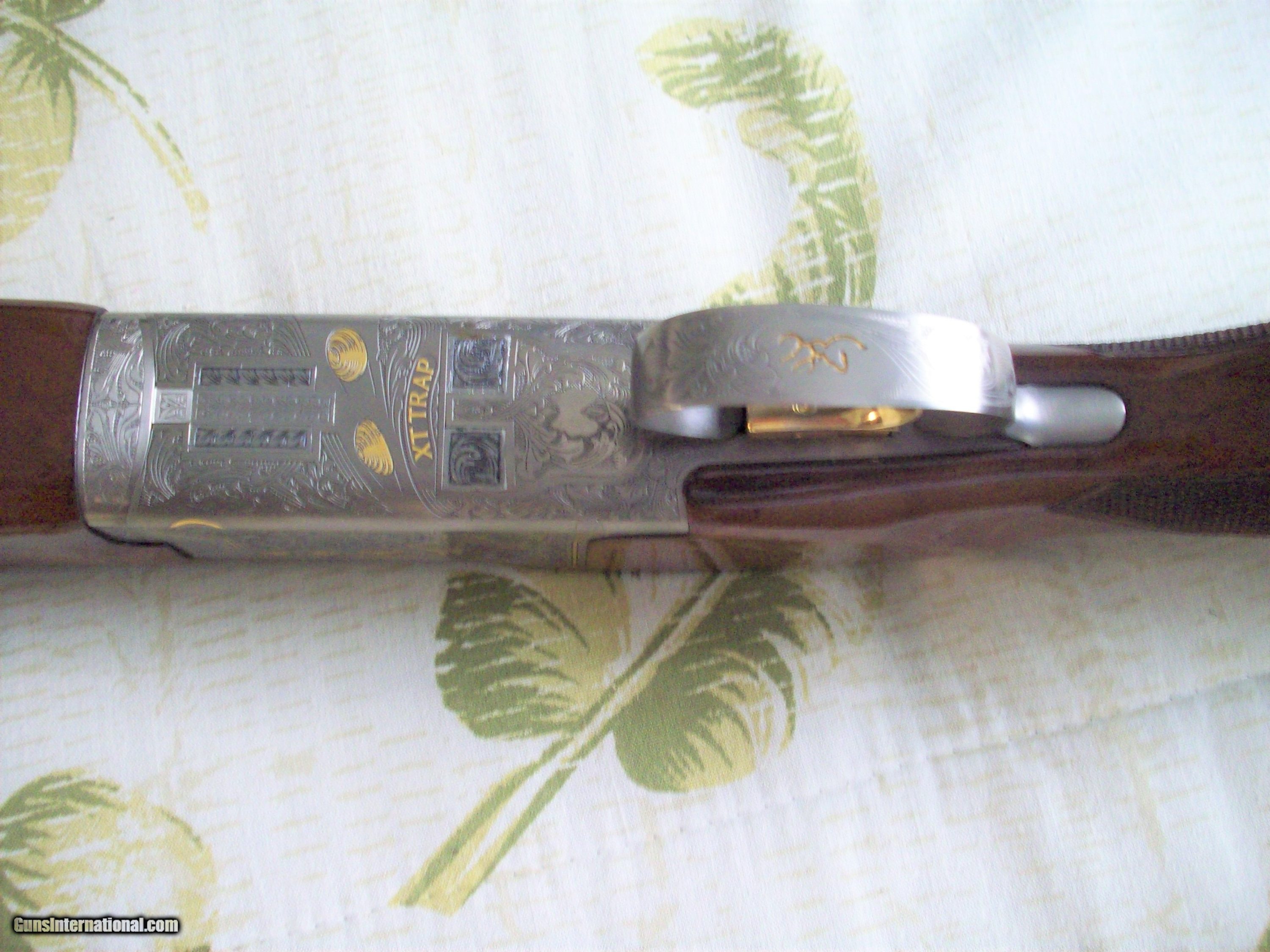 Description: This Browning XT TRAP features GOLDEN GLAYS engraving with game birds and clay birds. Grade V - Vl Walnut stock and forearm Hi post vent ribbed PORTED 32" barrels with INVECTOR PLUS MIDAS EXTENDED chokes. ADJUSTABLE Comb, AdJUSTABLE GraCoil recoil SOLD |