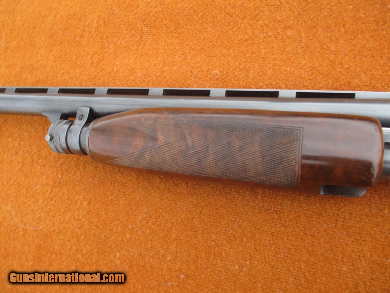 Description: A wonderful 12 GA Trap Grade with the wide Knick style rib and very fancy wood with hand carved checkering. For those of you who know Ithacas, you know this is a pretty rare gun. The splendid sun burst pad is in excellent shape and the gun overall is in very good condition, Shows some wear but absolutely no abuse. Price to sell SOLD |