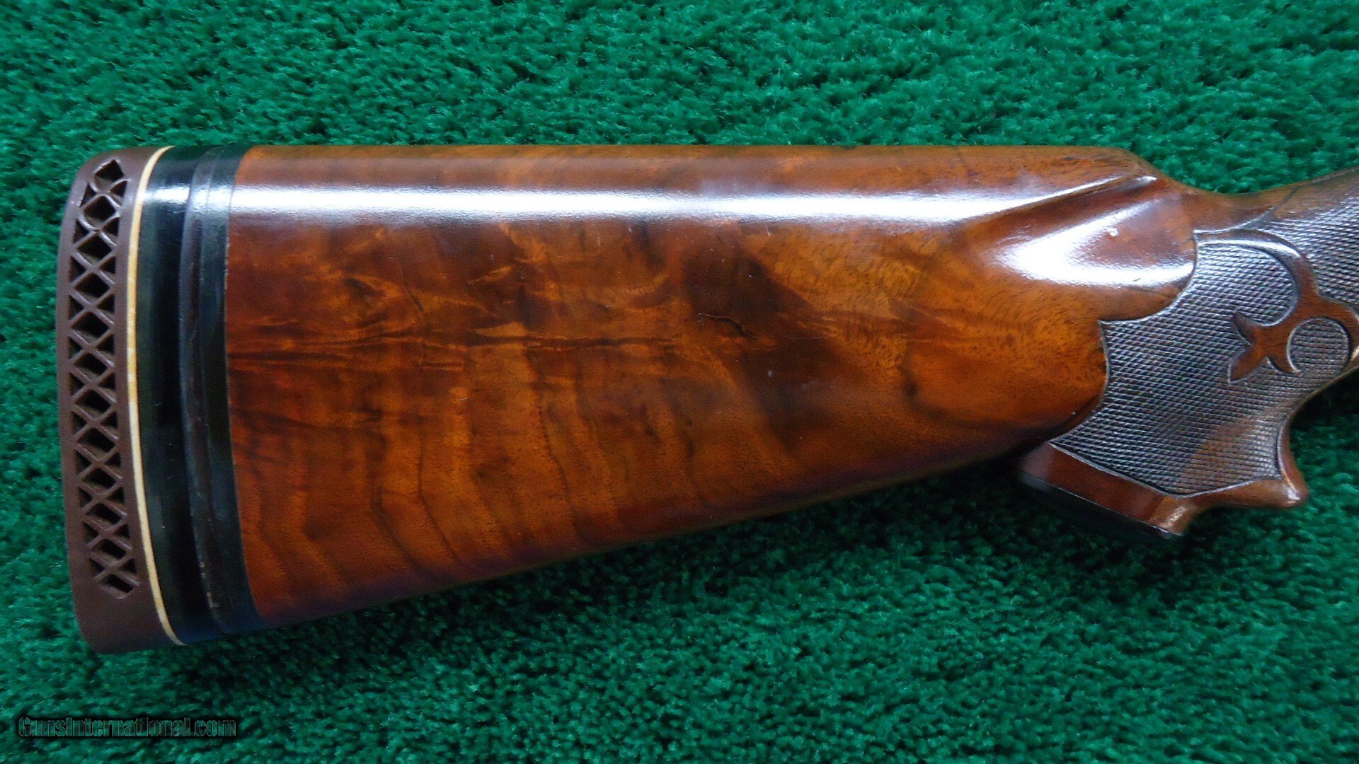 Description: This is a custom shotgun in the "Knick" series. Lightly customized grade 4E. 12 gauge equipped with a 32 inch barrel. It has 4 recoil slots in the barrel about 6 inches from the muzzle. Blue has been taken off when the porting was done to the barrel. Otherwise, barrel blue is quite good. Equipped with both center and front beads. As with most of these, the bore is VG. Lock up is solid and tight. Receiver has most case colors remaining although they have dimmed somewhat. Nice scenes. This one has an Indian on the right side and the trap shooter on the left side. Some custom work has been done to the stock where a knob was put on the pistol grip. Also there were spacers added and a Young and Co. recoil pad. LOP is 14-1/8". Semi-dlx wood with nice checkering on both buttstock and forearm. Normal handling marks but good overall condition. Equipped with a working ejector. This would make a very fine trap gun still today. Leroy Merz Antique Firearms specializes in antique and vintage Winchesters and other fine American firearms. Since 1965 Mr. Merz has taken part in the world of firearms and has been a contributor to many well known reference books. We have hundreds of additional guns in every price range at our home online. Search for Merz Antiques in google. Curio/Relic: Yes Shotgun Gauge: 12 Gauge Price: $2,100.00 Contact Seller |