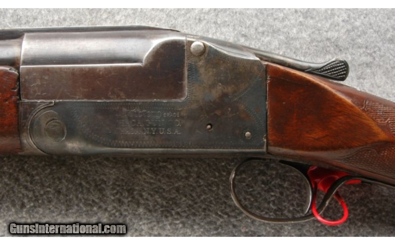 Description: This is a hard to find Ithace Victory Grade SBT 12 gauge. The shotgun shows use and the stock has had a pad added. The lever is not yet to center and there is a lot of life left in the gun. SOLD Manufacturer: 1921 Caliber Info: 12 Gauge. Chambers: Single shot with an extractor. Metal Condition: Good with patina and blue mix on the barrel and case color on the receiver. Wood Condition: Good with dings and dents along with some fill behind the upper tang. Bore Condition: Good with some old light pitting. Barrels: 34 inch blue with a vent rib. Triggers: Single. Stock: Very nice checkered American walnut with a straight grip. Stock Dimensions: 13 1/8 inch LOP. Fore End: Matching checkered walnut in the beavertail style. Butt Pad: Brown vernt rubber butt pad. Weight: 7 Lbs 10 Oz. Sights: Red front and a small mid brass bead on the vent rib. Chokes: Fixed FULL. Item Location: Post Falls, ID |