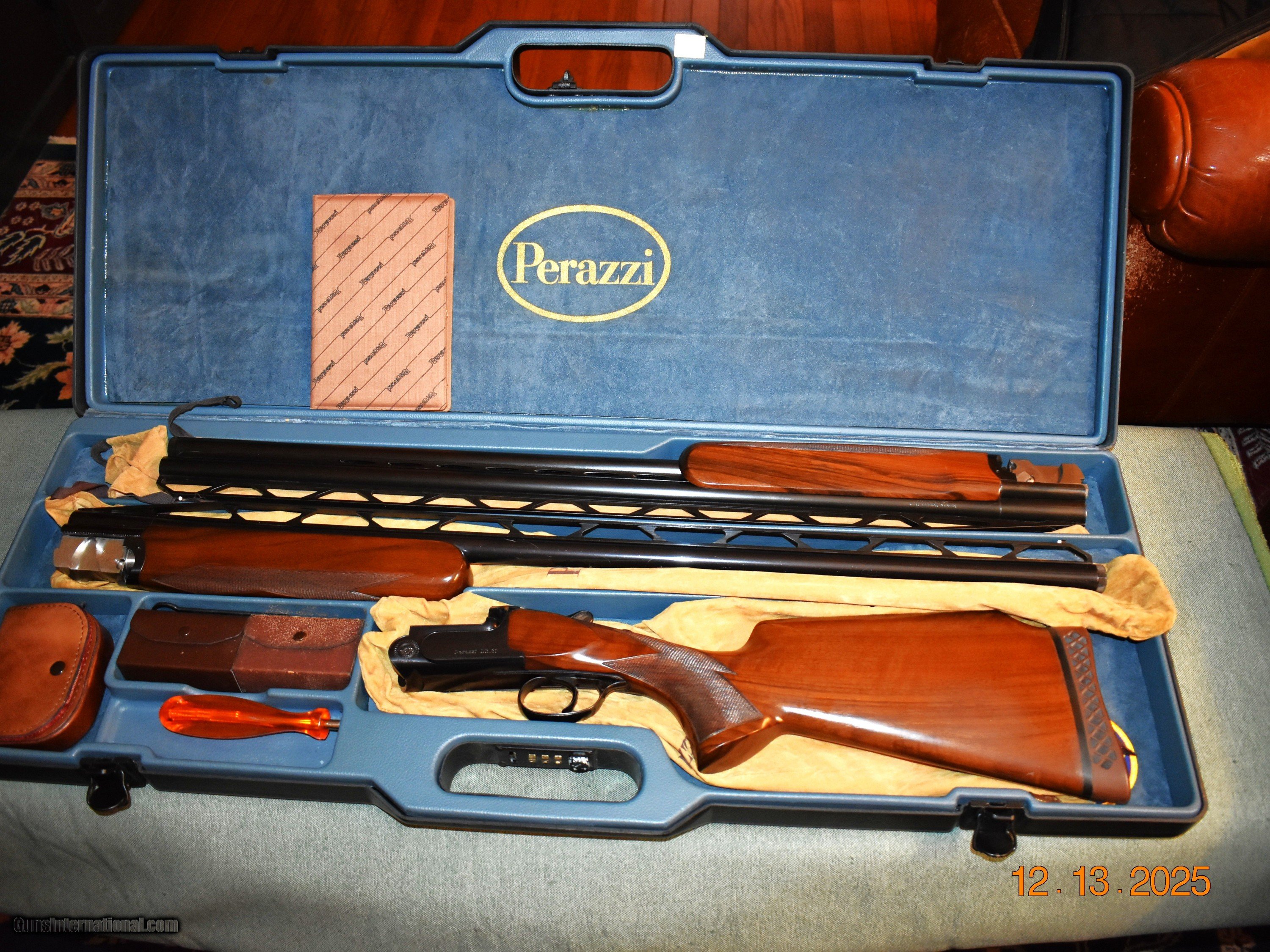 Description: Perazzi DB-81 12 gauge trap combo in as new condition. It has a 30" high ribbed over under barrel set with Perazzi chokes in the bottom barrel and fixed full in the top. The single barrel is a 32" over single with the high rib and Perazzi chokes. The gun is in as new condition retaining 100% of the blue and wood finishes. It comes in a factory case with a 2nd trigger group, 6 chokes, and manual. Price includes shipping to your FFL. Shotgun Gauge: 12 Gauge Manufacturer: Perazzi Model: DB81 Serial Number: 59943 Barrel Length: 30/32 Chambers: 23/4 Ejectors: Yes Condition: mint Metal Condition: mint Wood Condition: mint Bore Condition: mint Triggers: single non select Butt Pad: Factory Recoil Pad Rib: High Trap Extras: 2nd trigger group Case: factory case Price: $9,500.00 Contact Seller |