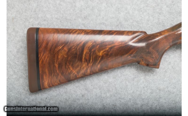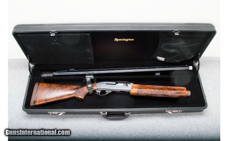 Description: SOLD Caliber Info: 12 gauge Chambers: 2 3/4 inches Metal Condition: Excellent Wood Condition: Excellent Bore Condition: Clean and bright Barrels: 30 inches - Ported Triggers: Smooth; blued steel Stock: Checkered walnut with pistol grip Stock Dimensions: LOP - 14 Fore End: Checkered walnut Butt Pad: Brown rubber pad Weight: 9 lbs. 2 oz. Sights: White Bradley front; silver mid bead Chokes: Choke tubes Extras: Remington hard case; (2) chokes and accessories. Item Location: Sun Prairie, WI |