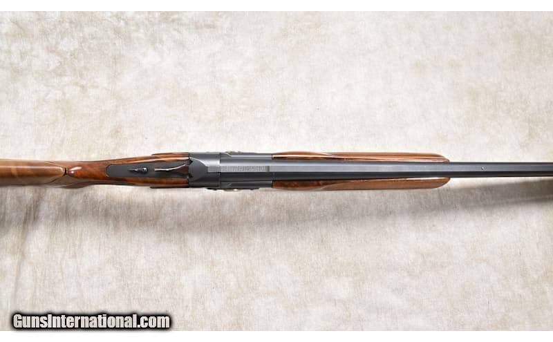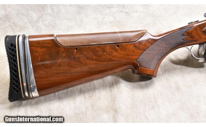 Description: This Trap gun is in good condition, with enough rounds fired to be easy on the hinge, but the top lever is centered, and the action locks up tight to the face. It has adjustable recoil pad, and adjustable leather-covered comb. 12 Gauge Chambers: "2 rounds, 12 gauge, 2-3/4 inch Metal Condition: Very good. There area few stains on the metal at the bottom. Wood Condition: Very good. There are a few minor handling marks. Bore Condition: Shiny and bright. Barrels: 29-3/4 inch Triggers: Factory single selective trigger. Stock Dimensions: LOP: 14-3/4 inches. Fore End: Well-matched walnut beavertail. Butt Pad: Adjustable rubber pad. Weight: 9 lb - 7 oz Sights: Ventilated rib with white beads. Chokes: "Fixed Imp. Mod., and Full Item Location: Rogers Price: $1,699.99 Contact Seller |