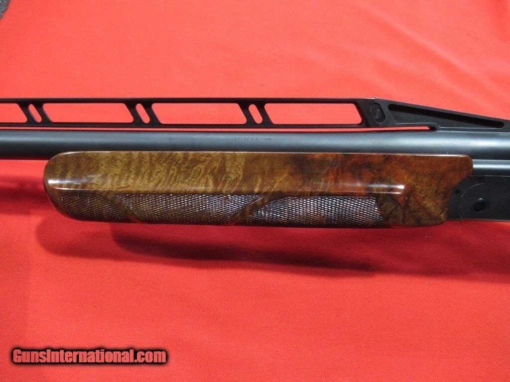 Description: Remington 90-T High Post Adjustable Rib: This gun is outfitted with a phenomenally figured adjustable comb stock by the late Dennis Devault. The bore measures .732" with .031" of choke. The stock is 1 1/2" x 3" x 14 1/4" with 13 3/4" of wood. Weighs in at 10 pounds 4 ounces. Price: $4,375.00 Contact Seller |