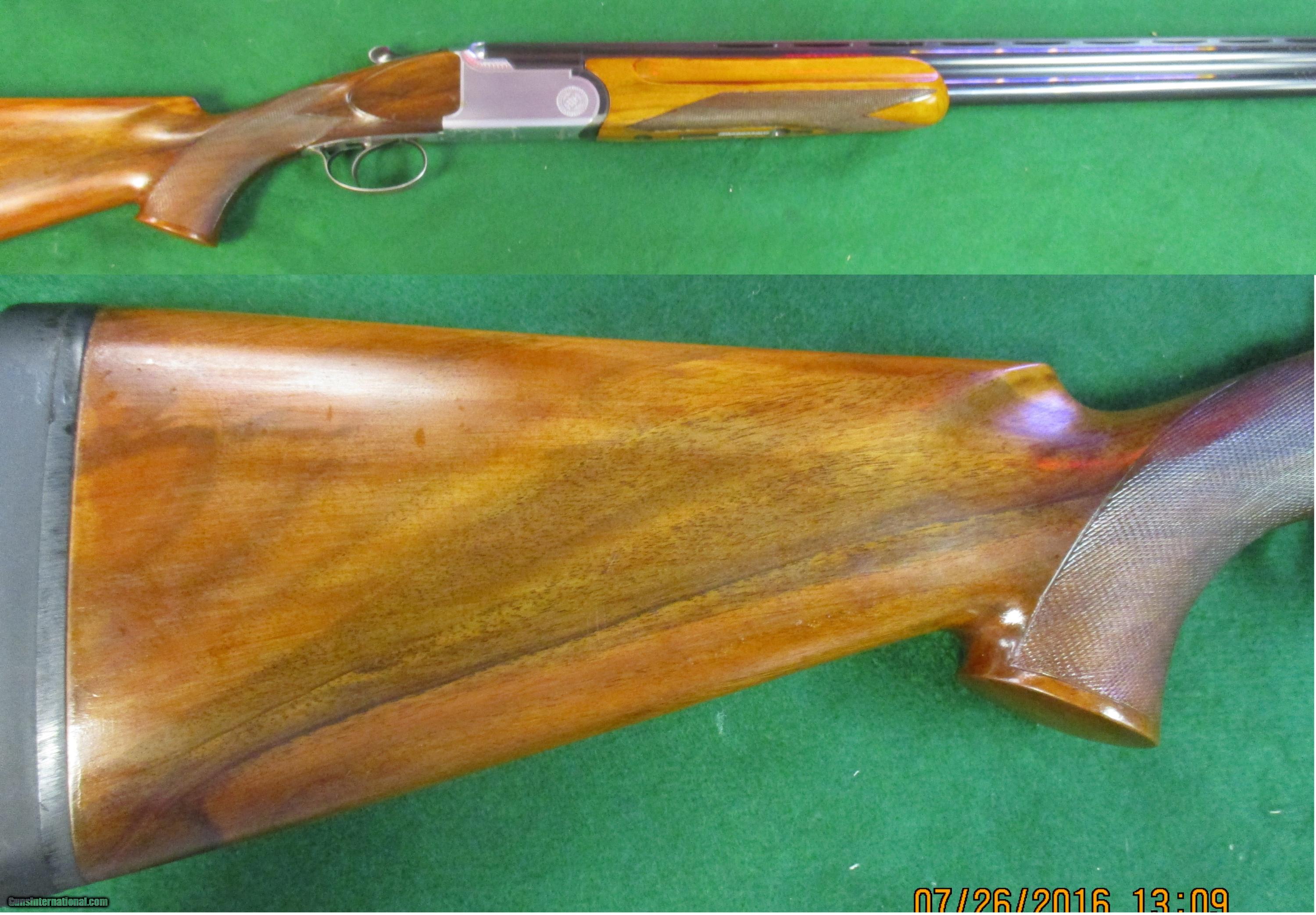 Description: MAJOR PRICE REDUCTION - This is an amazing setup … it includes a Rottweil 30” Trap Gun and an extra set of 26 ¾” 12 gauge Skeet barrels and a full set of Briley skeet tubes in 20 gauge, 28 gauge, and 410. The LOP is 14 ½ inches. They stopped importing them in 1987, and this one is the preferred later one since the serial is over 73,000 ... it is 76567. The Trap Barrels have screw in chokes, the Skeet barrels have screw in chokes, and the Briley skeet tubes have screw in chokes. Rottweil shotguns are very well made high quality shotguns and have drop triggers like the other big names. The whole rig comes in a very high quality fitted Americase. The metal is in very good condition with some blue loss on the top of the rib and other light handling marks on the rib, and the bottom of the trigger guard is dull and should be polished. The wood has had a light coat of finish reapplied with some reddish tint in it. The butt stock used to have a cheek piece that was removed and polished … it was a very good job. On the fore-end, the reddish finish has worn off and is only on the high points. If you want pure beauty, you would probably want to have the wood redone. However, this rig is ready for the very serious shooter. This gun must ship directly to a type 01 FFL dealer/license holder. Packaging, shipping and insurance for this purchase will cost $55 in the east, and $65 in the west. Total payment for the firearm plus the amount for packaging, shipping and insurance must be paid in full, using a United States Postal Services, USPS, money order or a Cashier’s check. The money order can be obtained at your local Post Office. Email confirmation regarding the above is expected from the buyer within 72 hours of the close of the . Payment is expected within 5 business days of purchase. The item will be shipped to you within 1 business day following receipt of the USPS money order or within 3 days of receipt of a Cashier’s check. If you send a different pay instrument ... it will have to clear and shipping will be delayed accordingly. SOLD |