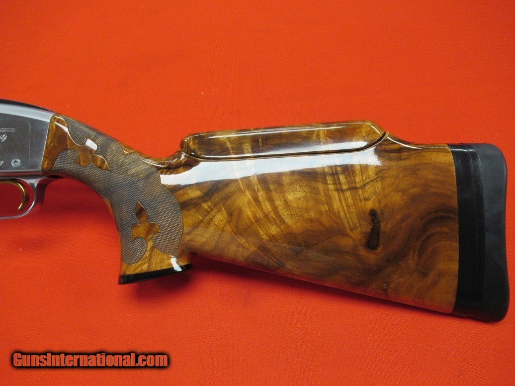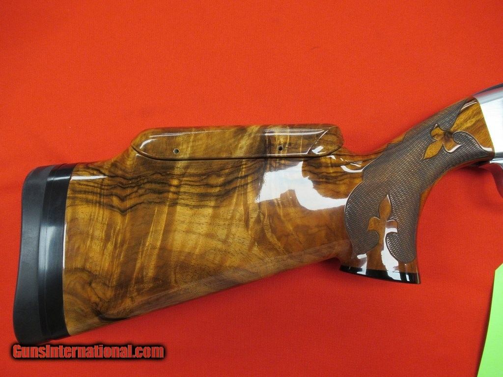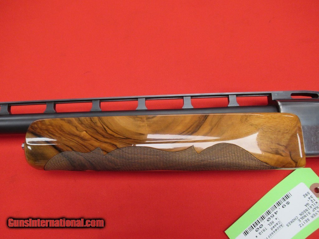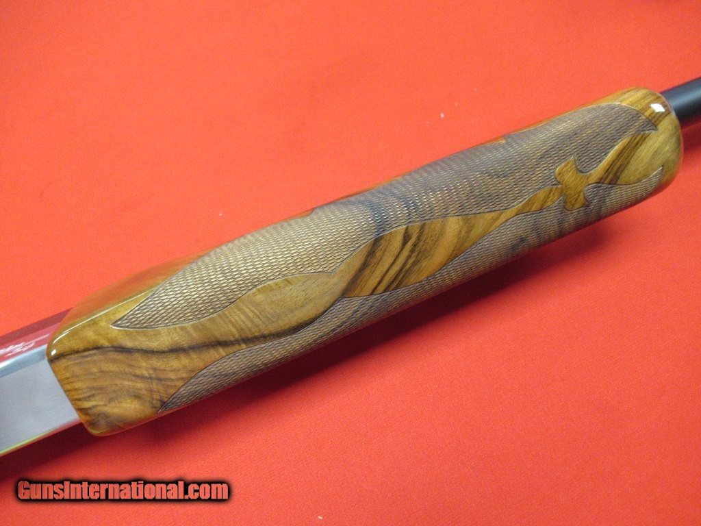 Description: Excellent condition overall having been well cared for by the previous owner: polished stainless frame, RELEASE TRIGGER, nicely figured adjustable comb walnut stock and forend,. Measures 1 1/2" x 2 1/4" x 14 5/8". The barrel has a .740" bore with four Wilkinson chokes (.015", .023", .028", and .034"). Comes with an Americase. SOLD |