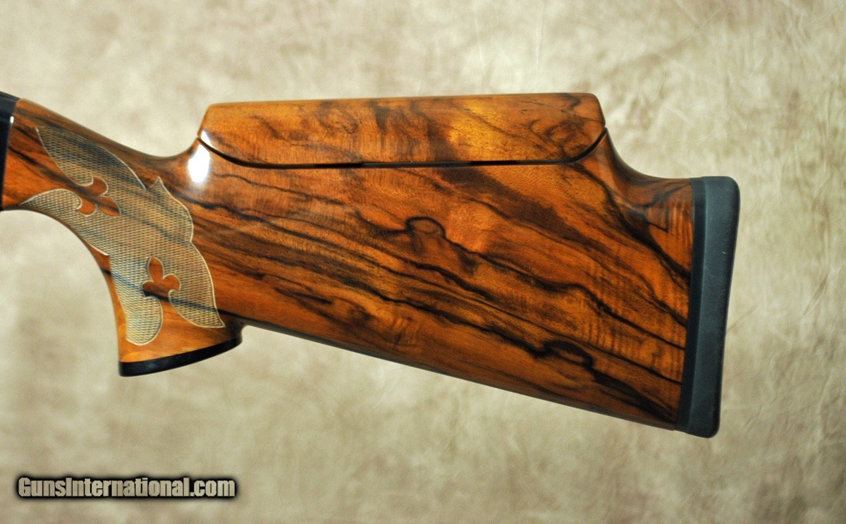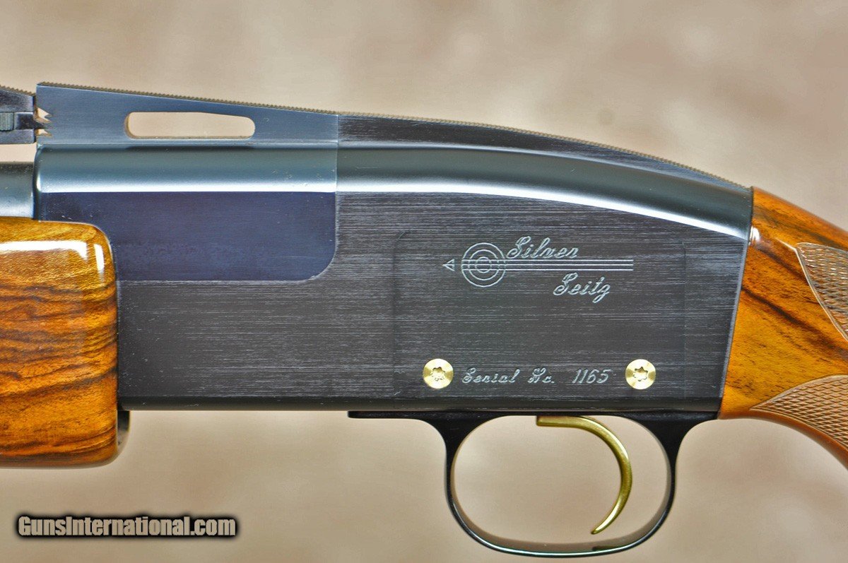 Description: Pre-Owned, in excellent condition, Silver Seitz Black Trap 12ga. Features fixed choke (.033) barrel with the #2 adjustable rib. Black steel receiver with gold trigger. Highly figured upgraded European Walnut stock and beavertail forend. Comes in factory case. SOLD Shotgun Gauge: 12 Gauge |
