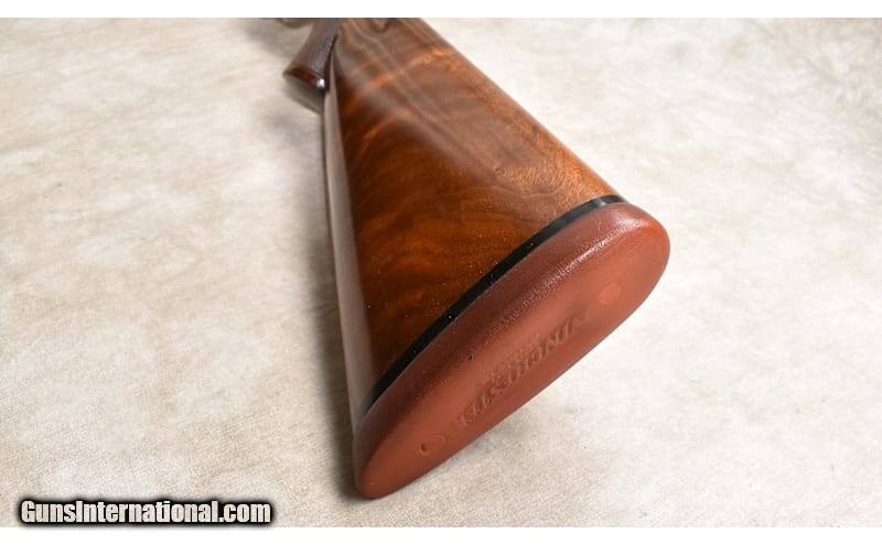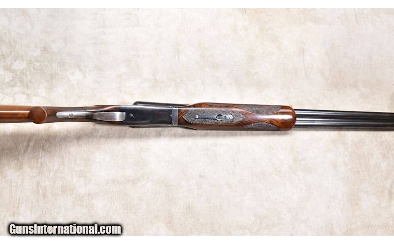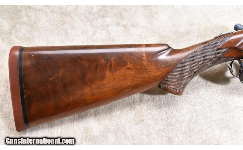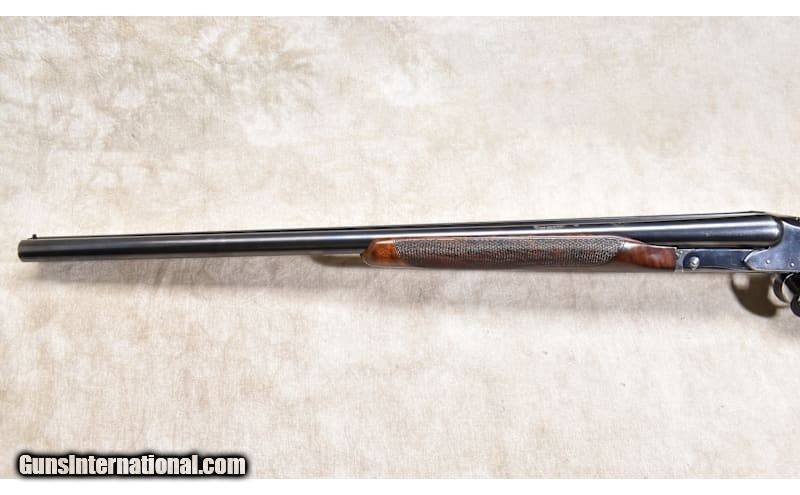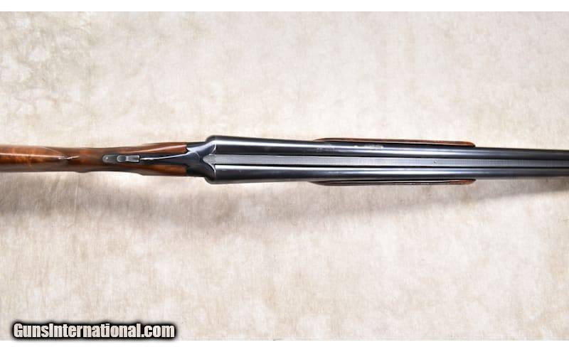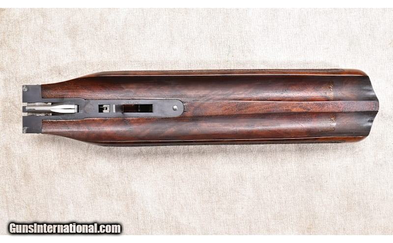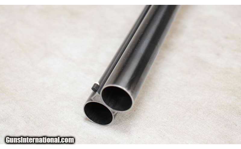 Description: Interesting piece. One would expect 28-inch barrels on a Trap gun at a minimum, and tight chokes as well. This one has 26-inch barrels and Skeet chokes that measure .006 and .005 restrictions, left and right respectively. The bore measures about .740 diameter. It is not apparent that the shotgun has been reworked so if it has been re-done or modified, it was a true craftsman who did the work. It dates to 1930. 12 Gauge Chambers: "2 rounds, 12 gauge, 2-3/4 inch Metal Condition: Good. There is a blemished portion on the left barrel. It appears like a rust patch but isn't rough like a rust patch. If not for that the gun appears Very Good. Wood Condition: "Very good. There are some handling marks, but the wood stands proud of the metal. Bore Condition: Shiny and bright Barrels: 26 inches Triggers: Single selective trigger. Stock Dimensions: LOP: 14 inches DAC: 1-1/2" DAH: 2-1/2 Fore End: Matching dark walnut beavertail. Butt Pad: Soft rubber Winchester pad. Weight: 7 lb - 8 oz Sights: Solid rib with White fore bead and silver mid-bead. Chokes: Fixed Skeet/Skeet Item Location: Rogers Price: $6,199.99 Contact Seller |