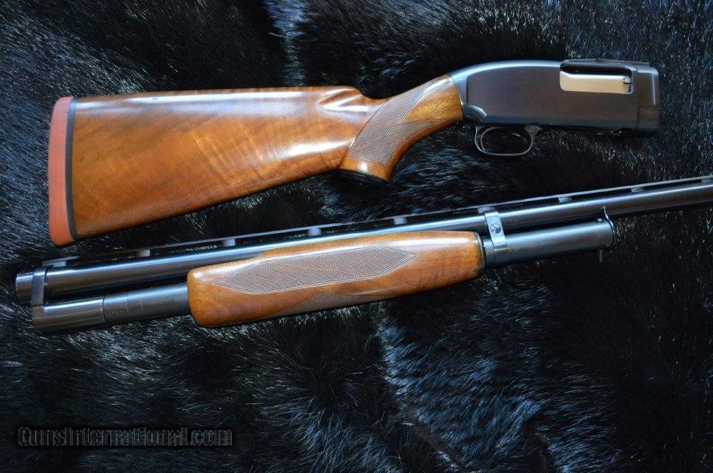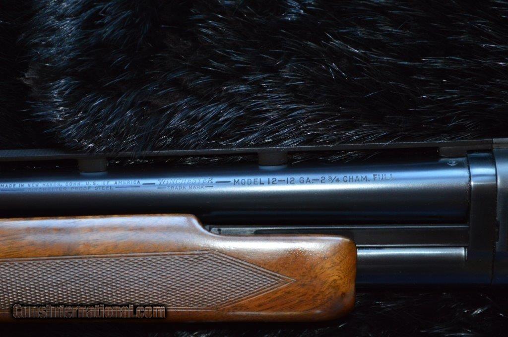 Description: Winchester Model 12 Trap that is marked "Model 12 Trap" on the magazine tube. It was made in 1949 and it has a 30" barrel, a milled vent rib, a Winchester factory recoil pad and a full choke. It is a 2 pin vent rib that is in incredible shape. The gun is in 99% condition with only a few minor marks in the wood. It would be difficult to find a better one. SOLD Curio/Relic: Yes |