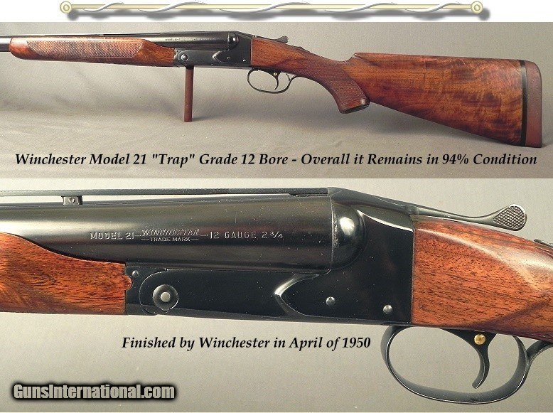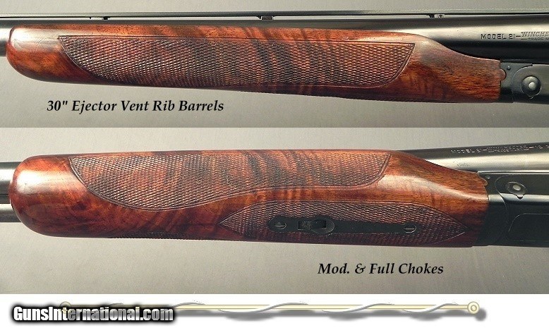 WINCHESTER MODEL 21 TRAP GRADE- 12 BORE- OVERALL 94% COND- 30" VENT RIB Bbls.- NICE WOOD- FINISHED APRIL of 1950- EXC PLUS BORES- MOD. & FULL CHOKES