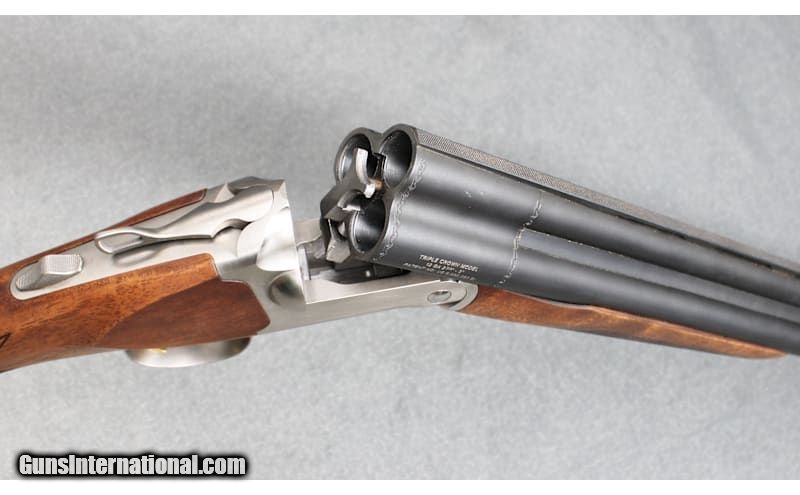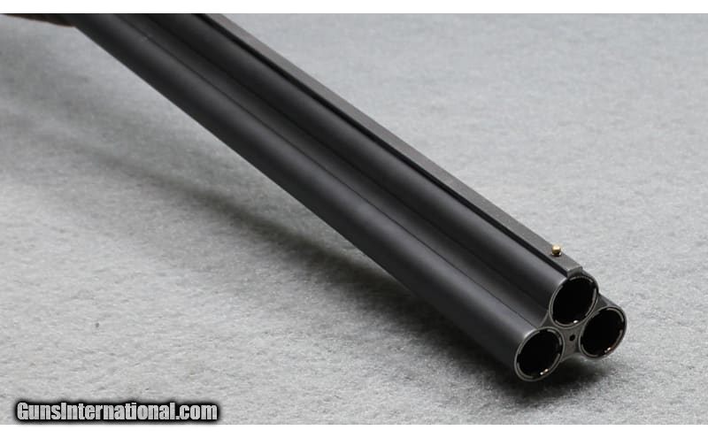 Description: This is a 12-Gauge Akkar Triple Crown three barreled shotgun. Unique triple barrel design is chambered for 2 3/4-3" shells. This firearm features a 14.5" LoP, checkered walnut foregrip, and beaded front sight. Shotgun only; no extras. 12 Gauge SOLD Chambers: 3 Metal Condition: Very good with minor wear and handling marks Wood Condition: Very good with minor wear and handling marks Bore Condition: "Bright and clear, no pitting Barrels: 28 inch Triggers: gold plated Stock Dimensions: 14.5" LoP Fore End: Checkered walnut Butt Pad: rubber Sights: beaded front sight Item Location: Fort Worth, TX |
