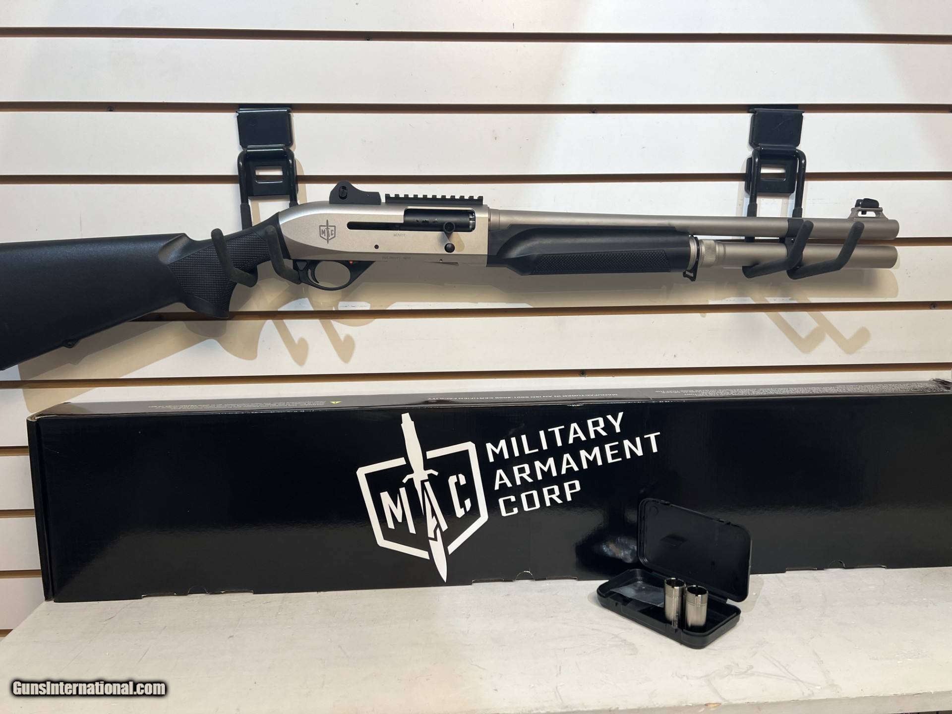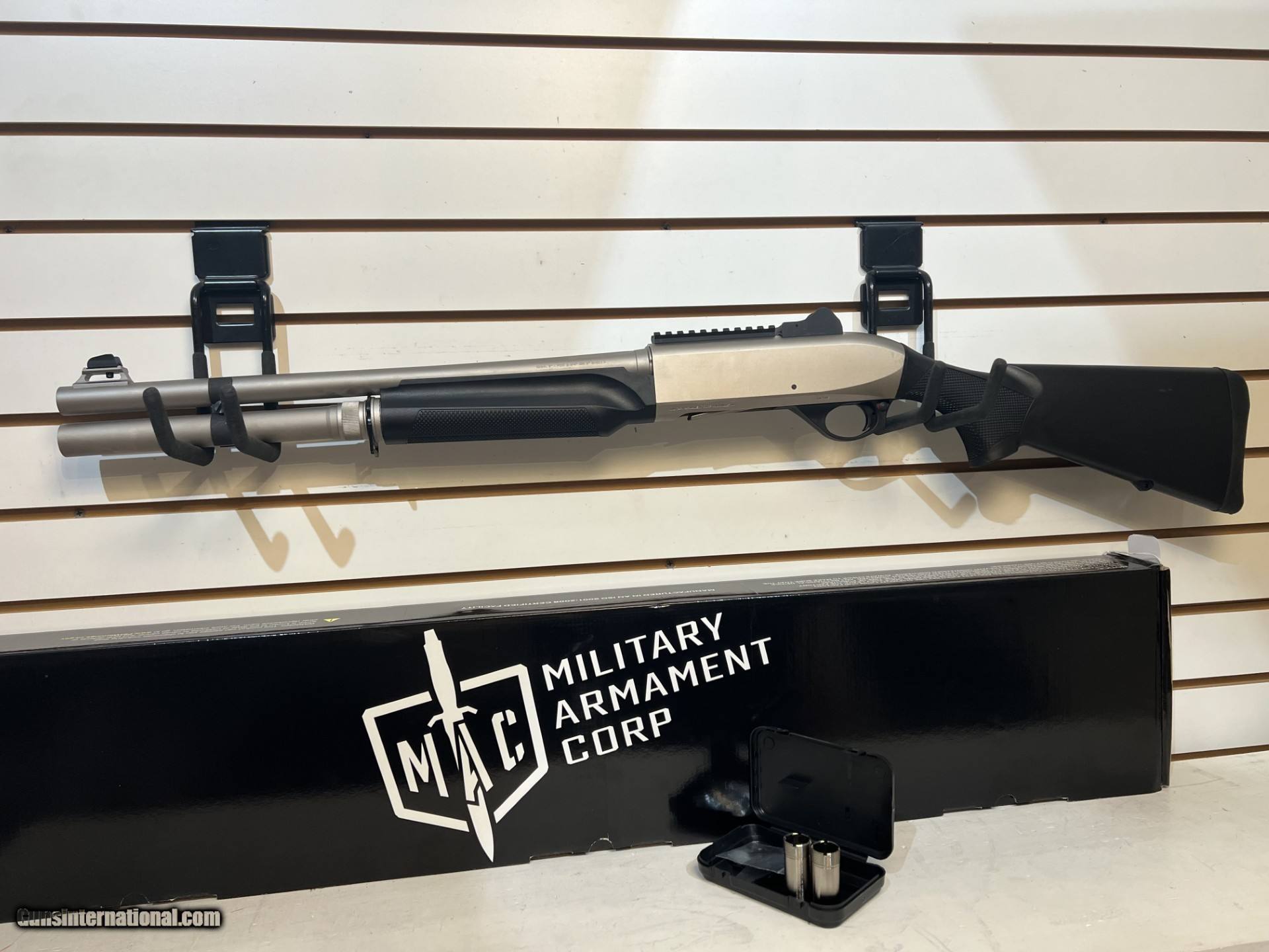 Description: New In Box Marine model is electroless nickel marine finish with a polymer stock and forearm. The MAC 2 Tactical is reliable, easy to operate, and extremely balanced, which is everything a shotgun for home defense or duty should be. Built around the Inertia operating system for unmatched performance, ease of maintenance and ability to cycle variety of loads without changing parts or adjusting the operating system while maintaining a lightweight form factor. Tactical model’s ghost ring rear sight is windage/elevation adjustable and has a bladed protected front post with contrasting white dot that is also adjustable for windage. The receiver is drilled and tapped from the factory and has a picatinny rail preinstalled for mounting optics or other accessories. The 18.5” barrel features the Benelli/Mobil pattern choke tube system for consistent patterns that can be tuned to any shot type load. Models are available with many finishes and furniture configurations to suit any role. MAC 2 series shotguns are designed to be compatible with most aftermarket parts, furniture, and accessories for other Benelli® M2 Shotguns. SOLD Shotgun Gauge: 12 Gauge Manufacturer: Military Armament Model: Mac 2 Serial Number: 751H23YT54617 Condition: NEW |