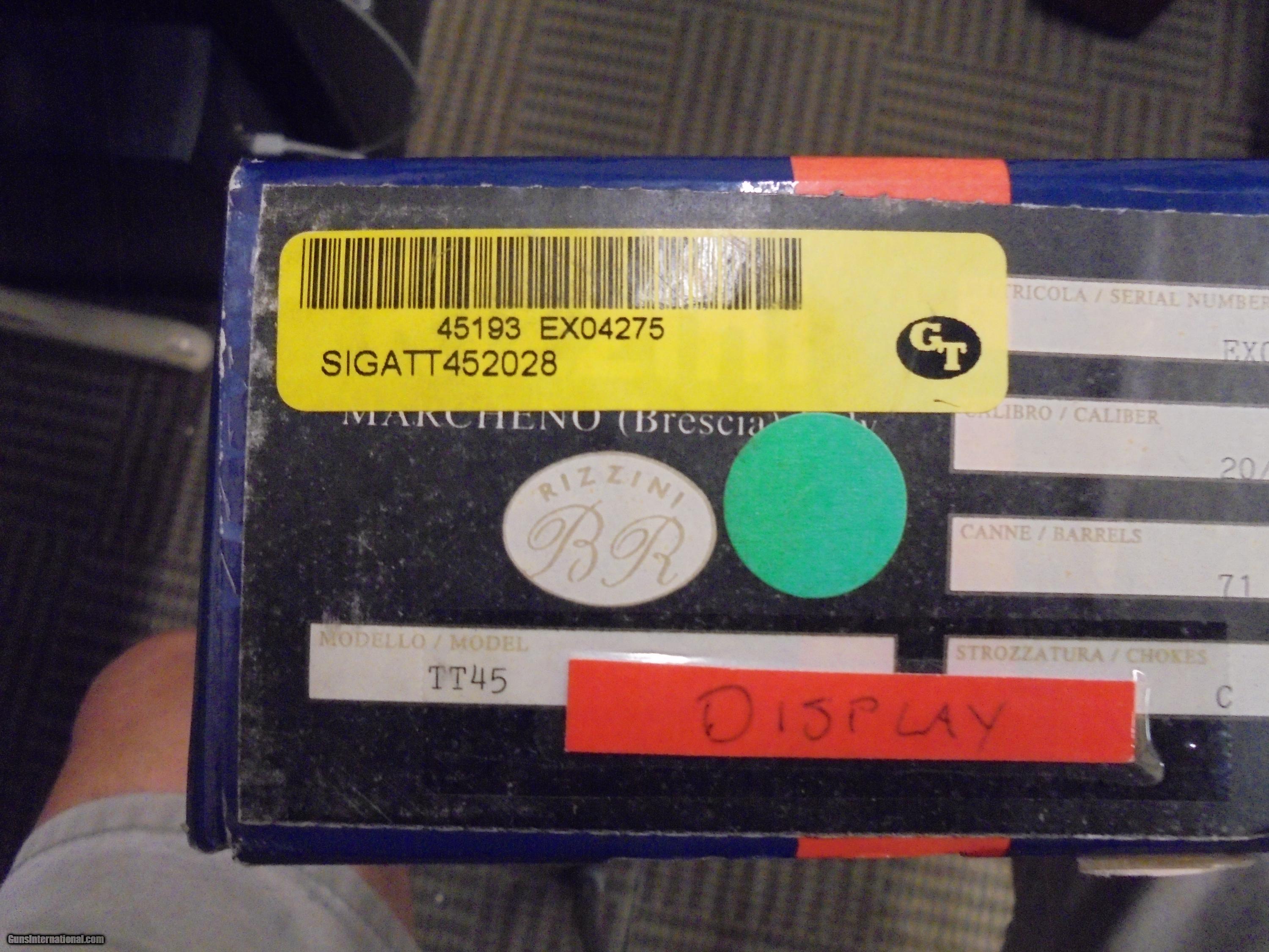 Description: USED VERY GOOD CONDITION (95%) RIZZINI (SIG ARMS) TT45 SPORTING CLAYS 20 GA 28" BARRELS WITH EXTRA 28 GA 26" BARRELS WITH FORENDS ALSO 5 CHOKES FOR EACH SET OF BARRELS ALSO COMES WITH FACTORY BOX FROM WHEN SIG ARMS HAD RIZZINI WE DO NOT SHIP FIREARMS AND/OR FIREARMS’ PARTS OUT OF THE 50 UNITED STATES, SO DON’T ASK PRICE REFLECTS PAYMENT BY MONEY ORDER / CASHIERS CHECK. A 3% PREMIUM IS ADDED FOR CREDIT CARDS. WE DO OFFER A LAYAWAY PLAN. YOU CAN LAYAWAY FOR 30, 60, OR 90 DAYS. THERE IS A $5.00 CHARGE FOR EVERY 30 DAYS ITEM IS ON LAYAWAY. WE ALSO REQUIRE A 20% DOWN PAYMENT ON LAYAWAY ITEM. LAYAWAYS ARE NON REFUNDABLE. DOMINION OUTDOORS 15 ANGELA COURT FISHERSVILLE ,VA 22939 540-337-9218 540-337-2422 fax HERE IS HOW THIS PROCESS WORKS. YOU WOULD CALL US AT 540-337-9218 WITH LISTER # TO PURCHASE THE GUN. THEN ONCE I HAVE RECEIVED PAYMENT AND AN FFL (FEDERAL FIREARMS LICENSE) FROM A LICENSED DEALER IN YOUR AREA OF YOUR CHOICE, I WOULD THEN SHIP THE GUN TO THEM. YOU WOULD THEN PICK UP THE GUN AT YOUR LOCAL DEALER AND DO PAPER WORK THERE. *PLEASE CALL IN THE WITH THE LISTER INVENTORY NUMBER* ***PLANO HARD CASES AVAIABLE FOR PURCHASE $18.99 WITH THE PURCHASE OF A FIREARM.** SOLD |