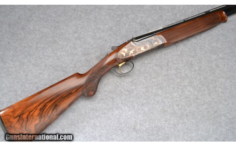 Description: Excellent throughout showing little to no use. Complete with with aluminum hardcase. SOLD Manufacturer: S/N EX01XXX Caliber Info: 28 GA Chambers: 2 3/4 Metal Condition: Significant pitting on rib, small spot of rust on left side of top barrel near breach; excellent otherwise Wood Condition: Excellent Bore Condition: Excellent Barrels: 28" Vent Rib Triggers: Single - Selective Safety Stock: Checkered Walnut Pistol Grip Stock Dimensions: 14 3/4" LOP Fore End: Checkered Walnut Butt Pad: Black Rubber Weight: 6 1/4 LB Sights: Single Brass Bead Chokes: Modified/Full - Fixed Item Location: Hoffman Estates, IL |