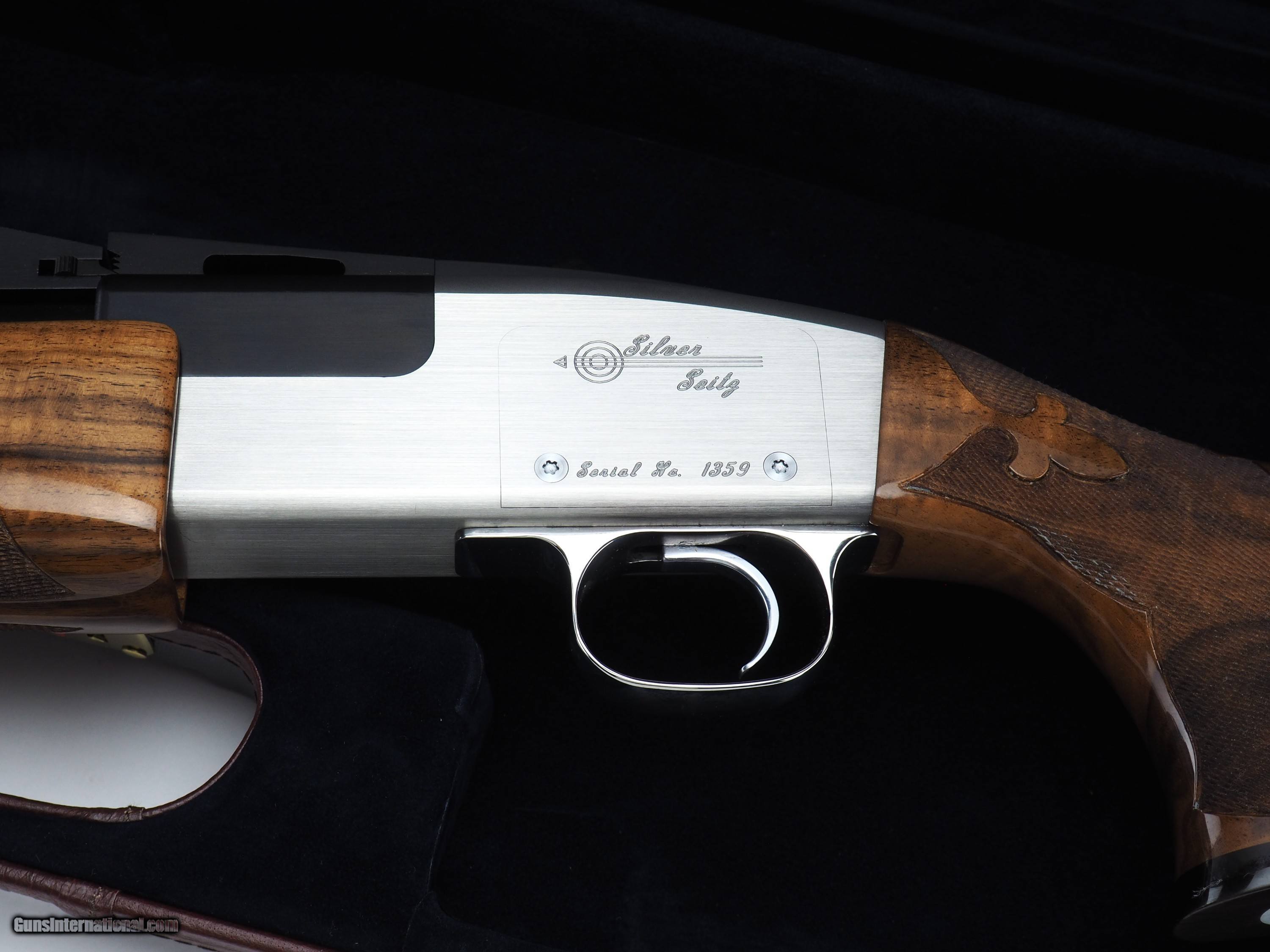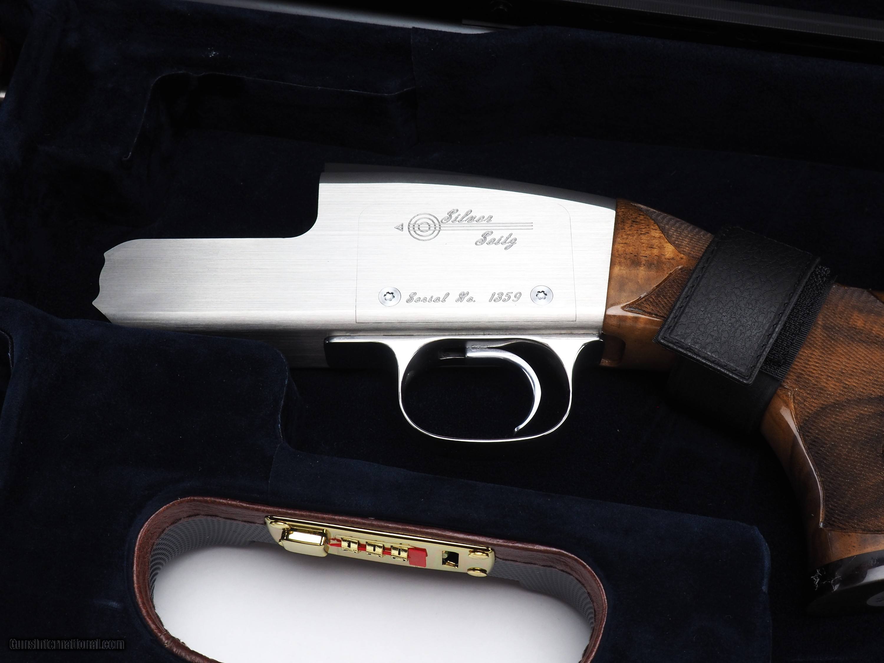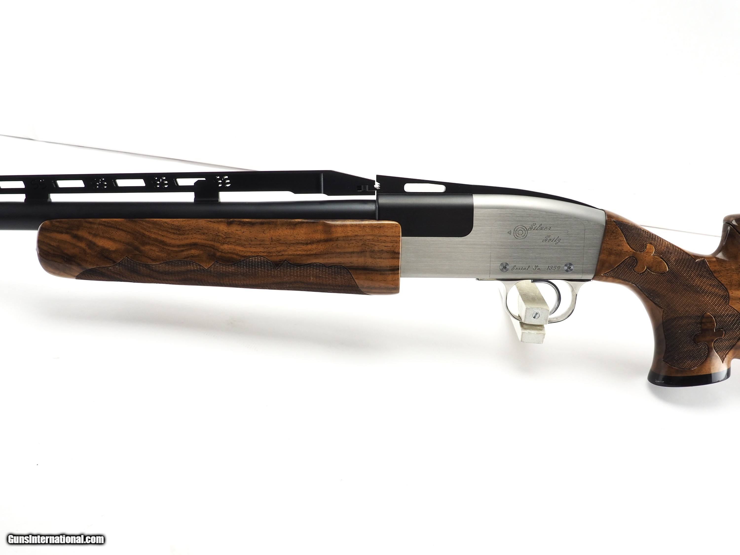 Description: Brand new Silver Seitz trap single with 34” barrel, #2 rib, and upgraded Turkish walnut stock. Comes complete with pull and release trigger components. Silver Seitz guns are 100% American made. Pull or release trigger remain crisp with a very fast lock time over years of shooting. Receivers are made of space age stainless steel, or titanium for weight reduction. With the gun's excellent balance, low recoil, and reliability, the Silver Seitz complements your style, form, and desire to be the best. Combined with the gun's quality craftsmanship, precision components, and custom fitting, the Silver Seitz equips the trap shooter for the challenge of competitive shooting. Make: Silver Seitz Model: Single trap Hand: Right Barrel length: 34” Rib: #2 adjustable Wood upgrade: Turkish $1800.00 Bore: .742” Choke: .033” (fixed Full) LOP: 14.75” DAC: 1.45” (37mm) DAMC: 1.53” (39mm) DAH: 2.71” (69mm) Call for pricing! SOLD |