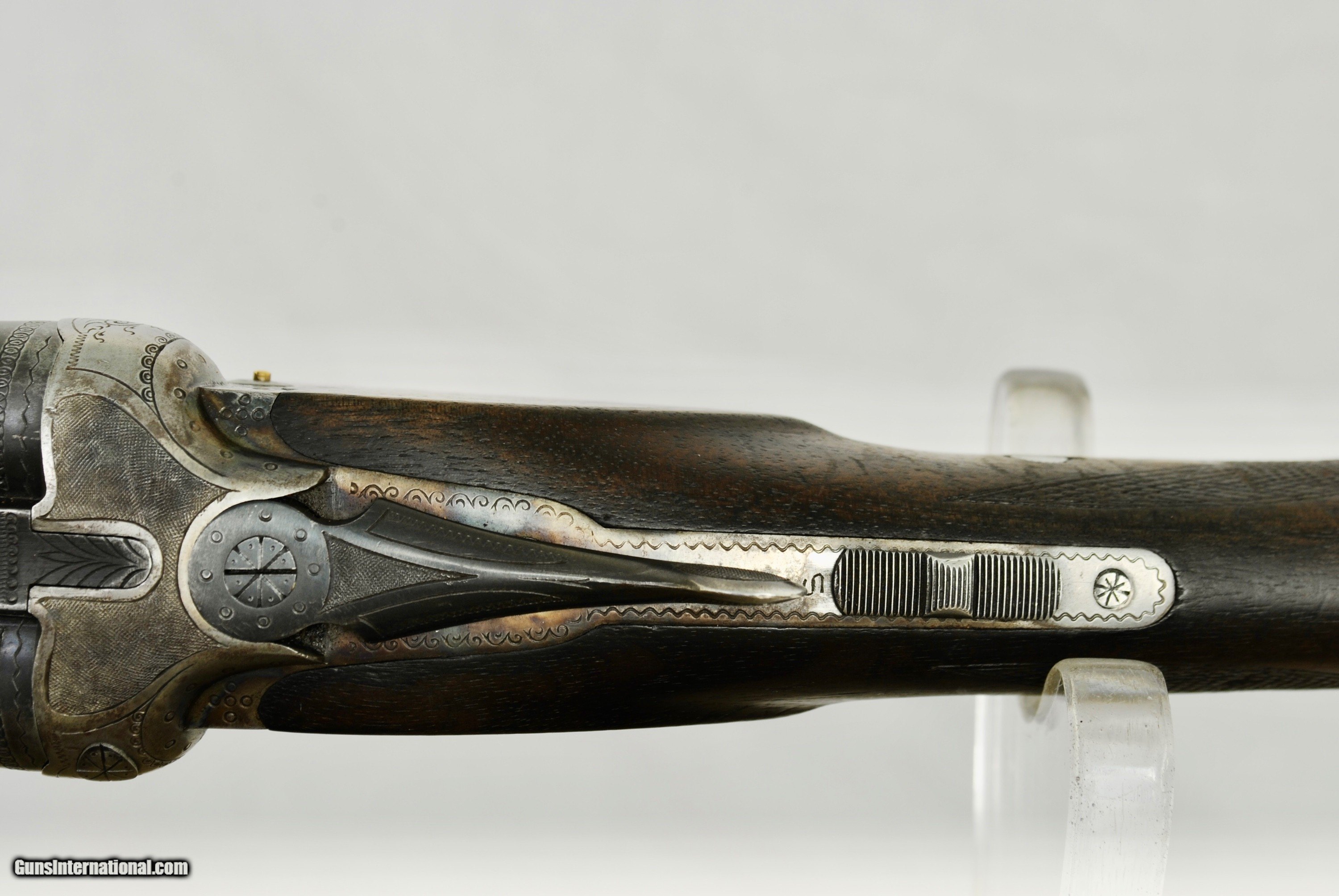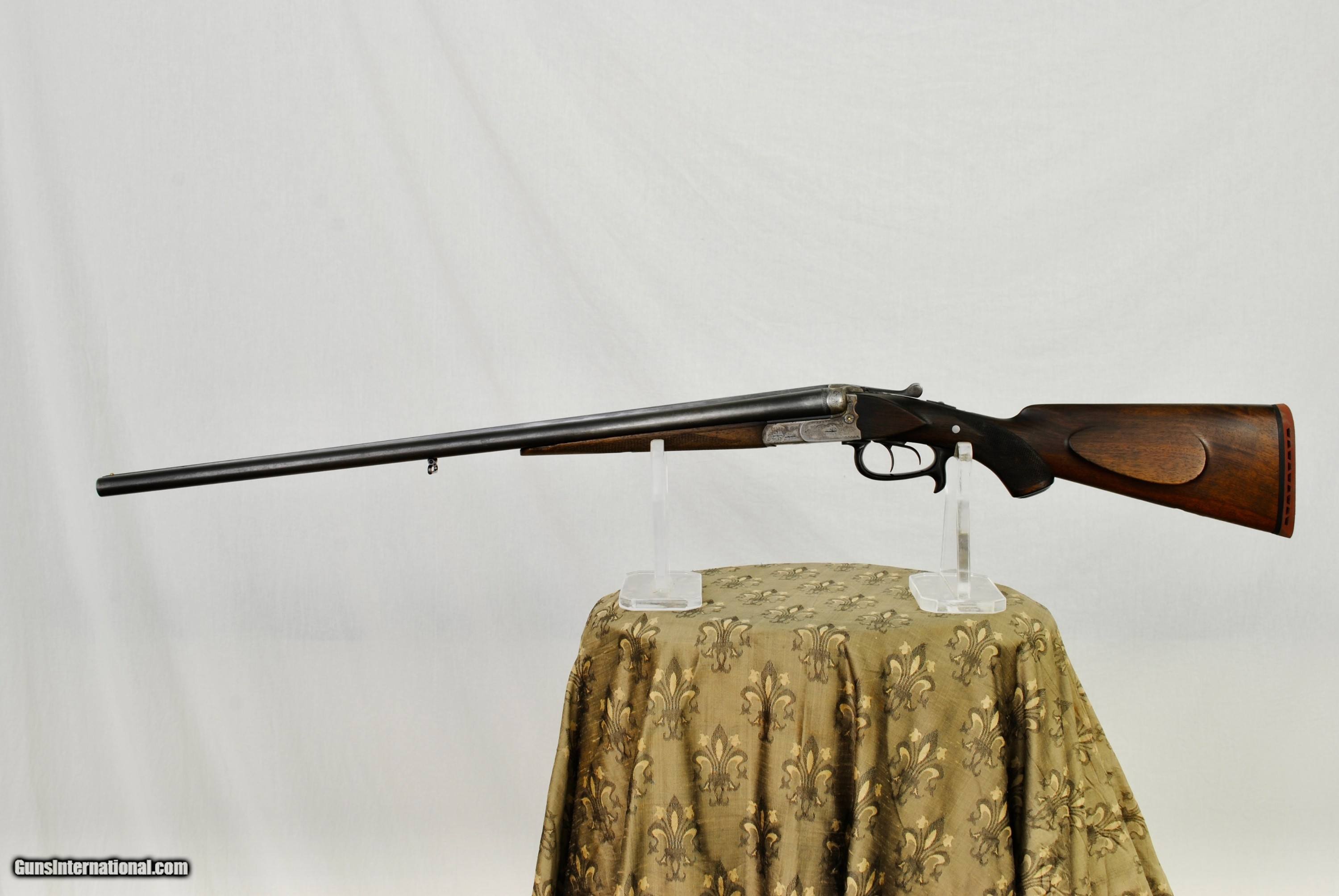 Description: Siimson 16 gauge ejector shotgun with 27 1/2" barrels. Made in 1958. This is an all option gun with ejectors, side clips, third fastener, horn trigger guard and cocking indicators. Gun is tight on face. Ejectors function well. Mirror bores that measure .663 with full and full chokes. Chambers are 2 3/4". Manual safety. Light engraving and case colors in protected areas. Weight of the gun is 6 LBS 10 1/2 OZ. LOP is 14 3/8". Drop at comb - 1 5/8". Drop at heel - 2 5/8". Shipping is $75. C&R accepted. SOLD Curio/Relic: Yes Shotgun Gauge: 16 Gauge |