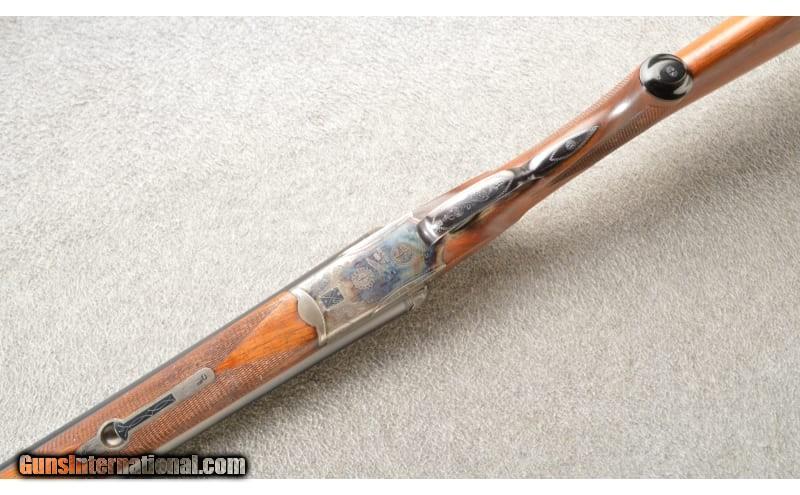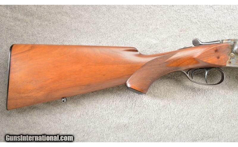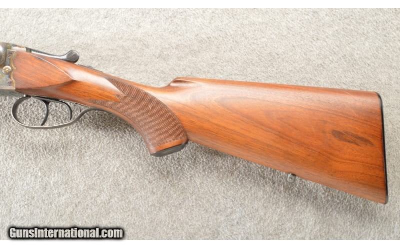 Description: Engraved Simson scalloped boxlock chambered in 12 Gauge. Manufactured 4/55. This Simson has 27.5" matted rib barrels with a front bead sight and chambered for 2 3/4" shells, Full and Full chokes. The frame is Casehardened with scroll engraving and a Greener style crossbolt, side mount cocking indicators, double triggers, side clips. The stock is checkered walnut with a capped pistol grip and a splinter forearm, 14.5 inch LOP with original plastic buttplate. This Simson may have some minor surface marks, but It's still in great condition for its age. 12 Gauge Curio/Relic: Yes Chambers: 2 3/4" chambers. Metal Condition: 80%. Wood Condition: Minor handling marks with dented checkering on the right side forend. Bore Condition: Both have smooth bright bores. Barrels: 27.5" barrels. Triggers: Two. Stock Dimensions: "LOP 14,5"". Fore End: Splinter. Butt Pad: Hard rubber. Weight: 7 lbs Sights: Bead. Chokes: Fixed. Item Location: Hazelwood, MO Price: Was $1,499.99 Now $1,249.77 Contact Seller |