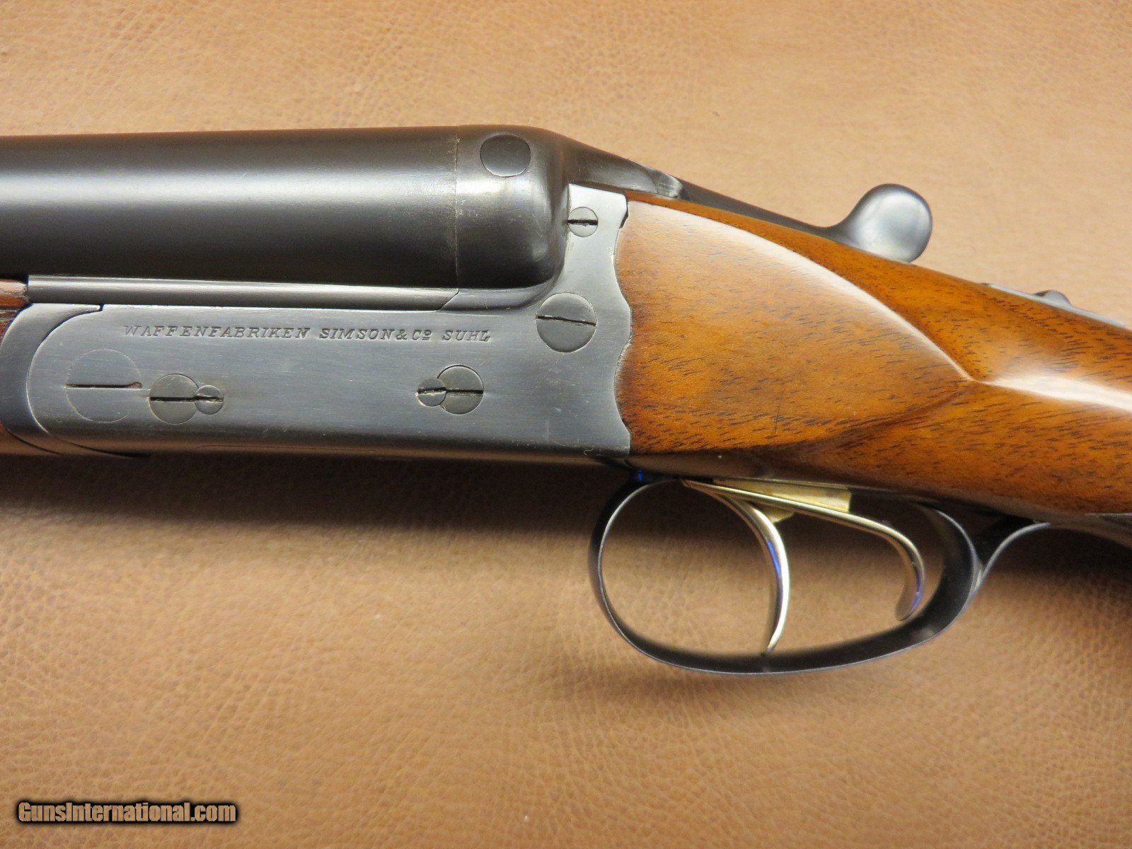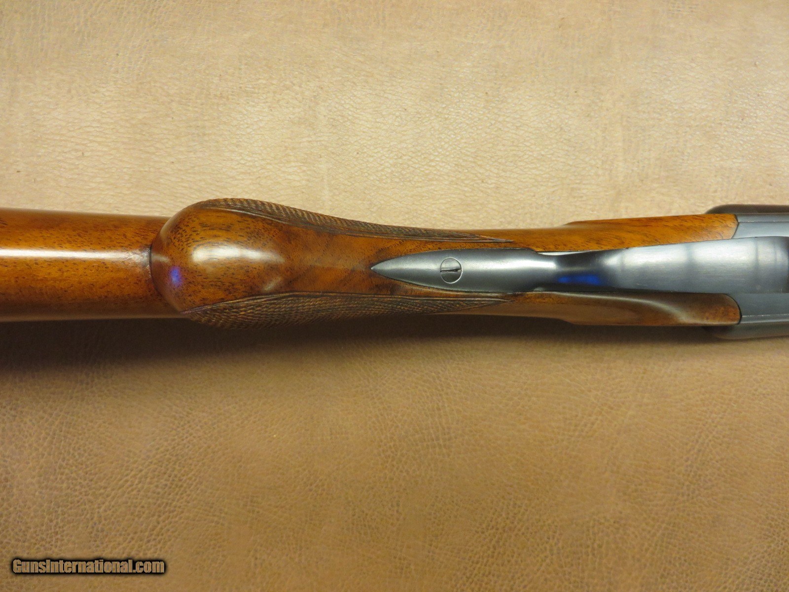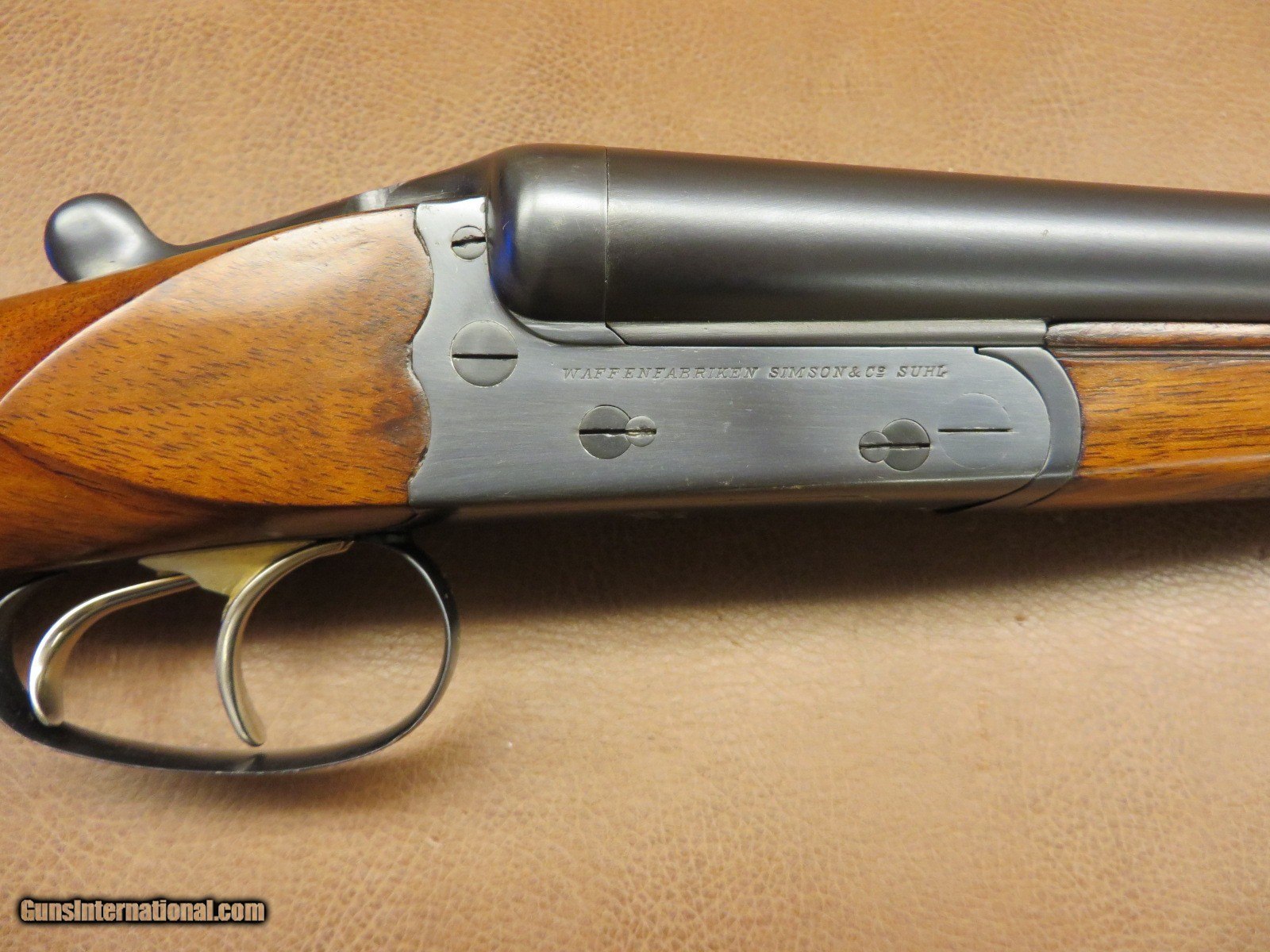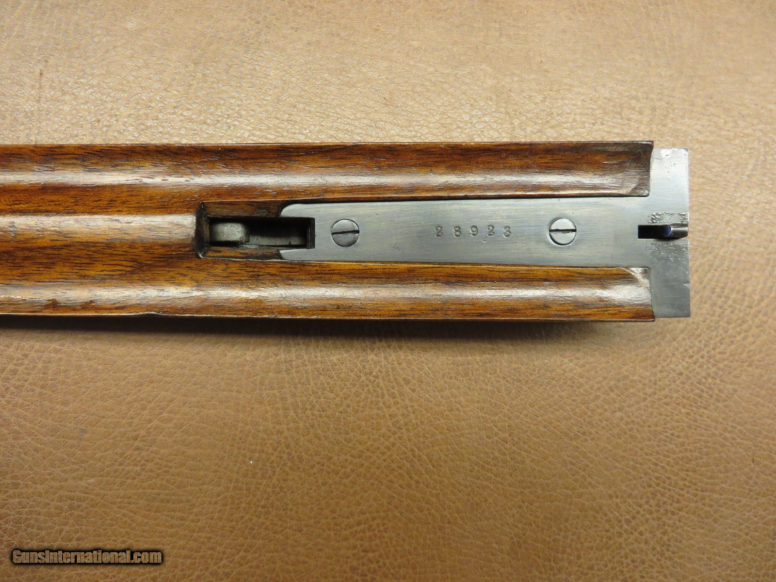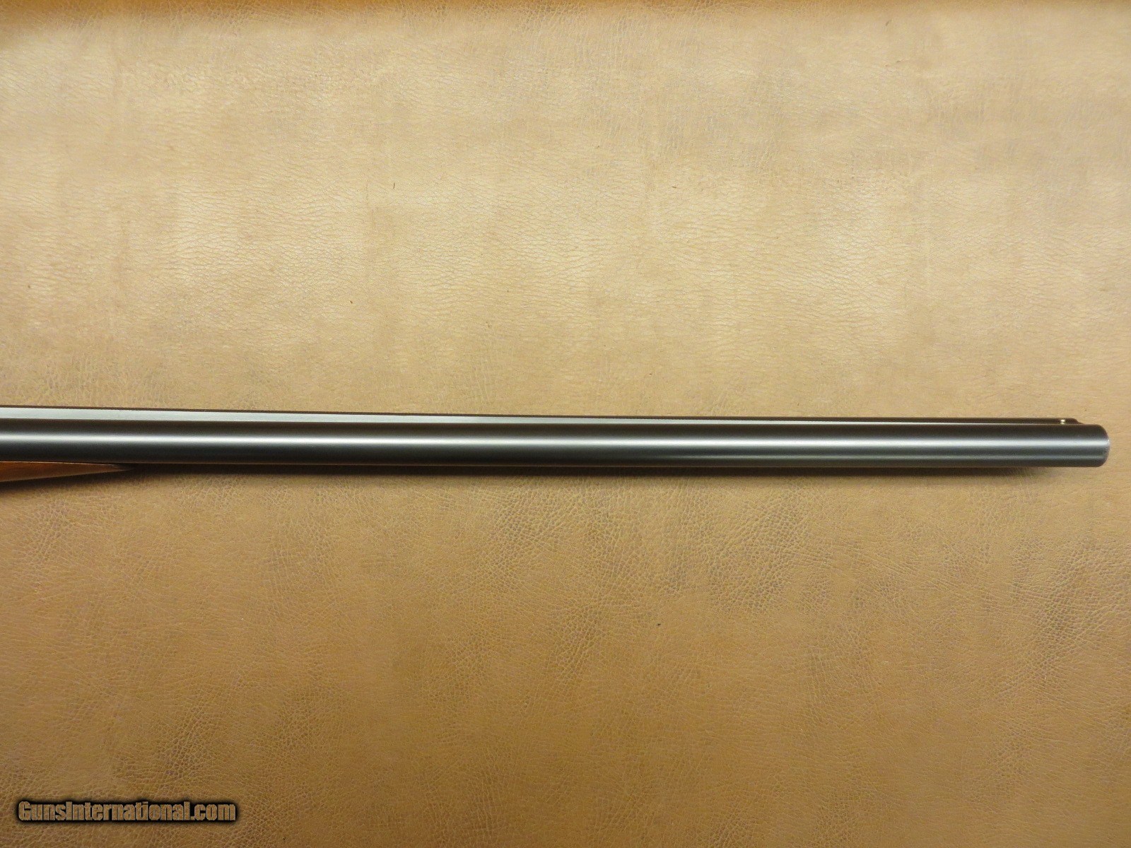 Description: 16 ga. side by side 2 9/16 inch chambers in 28 1/4 inch Krupp Steel barrels choked full and modified. Extractor and double triggers. Checkered walnut splinter forend and round knob stock with butt plate. 14 inch length of pull to front trigger. Sling swivels removed and holes filled. Complete professional refinish. SOLD Shotgun Gauge: 16 Gauge |