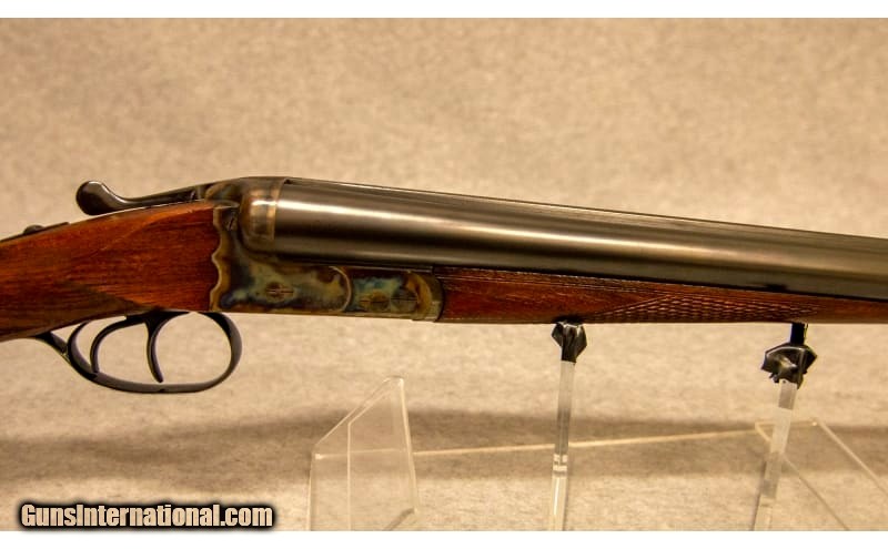Description: Simson & Co. SXS, chambered in 12 ga. Features include: 28 inch blued barrels, boxlock action, color case-hardened receiver, wood stock with checkered forearm and pistol grip, black pistol grip cap, double triggers, tang safety, single brass bead front sight. Bore is shiny and clean. Top of barrel says 'Simson & Co. SUHL/Germany' along with 'Spezial-Gewehrlaufstahl.' 12 Gauge SOLD Chambers: 12 Ga. Metal Condition: Excellent Wood Condition: Excellent Bore Condition: Excellent Barrels: 28' Stock Dimensions: 14' Butt Pad: Hard Plastic Sights: Single Brass Bead Front Chokes: "Left Full, Right Improved Modified Item Location: Fort Mill, SC |