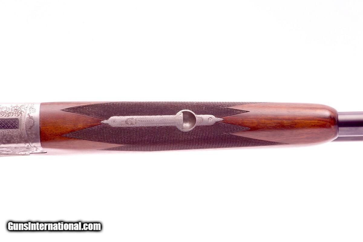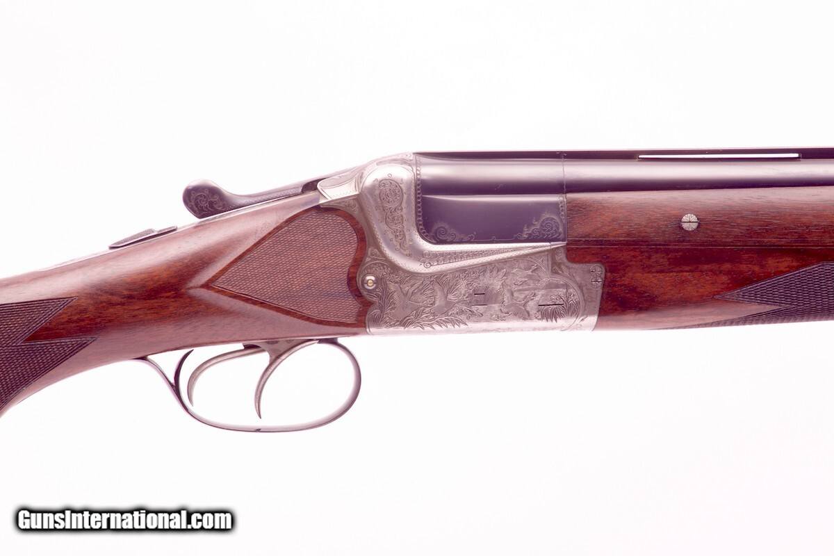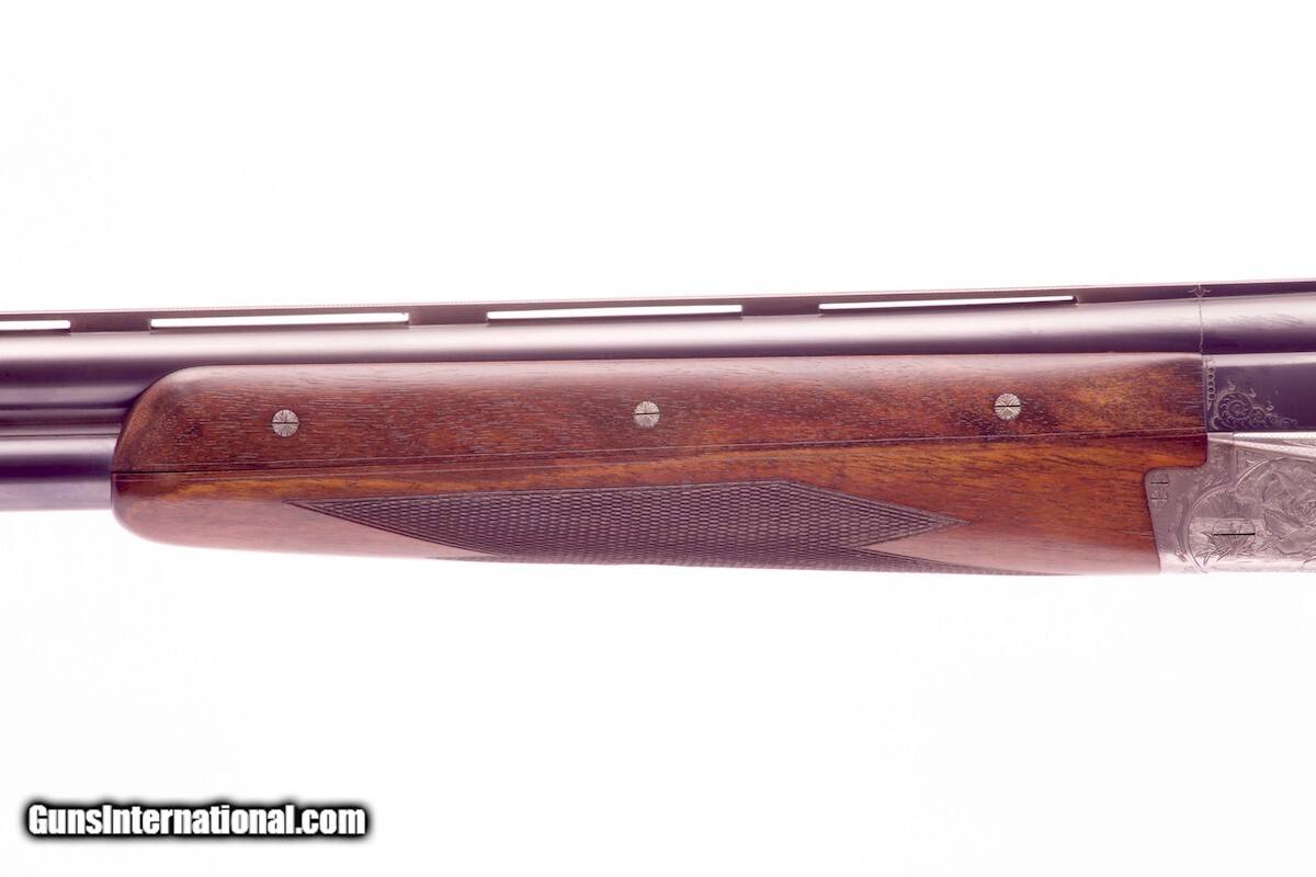 Description: Offered here is a superb example of East German gunmaking excellence: a Simson over/under shotgun in 12 gauge, manufactured in Suhl and equivalent to the highly regarded Merkel Model 201. This shotgun represents the continuation of Suhl's centuries-old tradition of fine gunmaking under the Simson name during the post-war period. Condition: 98% This shotgun is in outstanding condition, showing minimal handling and careful storage throughout its life. Both metal and wood finishes retain virtually all of their original surface, with only the lightest evidence of use. The action is tight and functions exactly as it should. Ejectors fire crisply on both barrels. The mirror bores indicate this gun has seen very light use and has been meticulously maintained. No pitting, frosting, or wear visible in the barrels. Features & Specifications • Gauge: 12 gauge 2 3/4" • Action: Over/Under boxlock • Barrels: 28” • Choke: O=IM, U=Full • OAL: 44.5” • LOP: 14.25 • Drop at Comb: 1.5” • Drop at Heel: 2.5” • Weight: 7 lbs • Bores: Mirror-bright and pristine - ready for the field • Safety: Non-automatic (manual reset) • Cocking Indicators: Gold-plated for easy visual confirmation • Ejectors: Automatic ejectors for quick reloading • Finish: Original blue retains deep luster; wood shows excellent original finish with minimal handling marks Technical Details The gold cocking indicators provide instant visual confirmation of gun status. The non-automatic safety is a desirable feature for many upland hunters who prefer full manual control. Provenance & Background Simson shotguns were produced in Suhl, the historic center of German gunmaking, and are mechanically equivalent to Merkel guns of the same era. These guns were built to the same exacting standards that made Suhl famous worldwide, and this example demonstrates why that reputation was well-earned. Perfect for the upland hunter seeking a lightweight, fast-handling 12 gauge, or the collector of fine European sporting arms. A gun of this quality in 12 gauge is increasingly difficult to find. Shipping price includes insurance. More photos on request. Shotgun Gauge: 12 Gauge Manufacturer: Simson Model: 201 Serial Number: 79566 Barrel Length: 28 Condition: Excellent Barrel Type: O/U Action: Boxlock Triggers: Double Stock: Pistol Grip Price: $2,695.00 Shipping: $95.00 Contact Seller |
